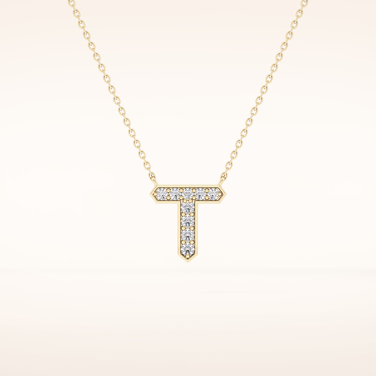 0.17 TCW Round Lab Grown Diamond T Initial Pendant Necklace
