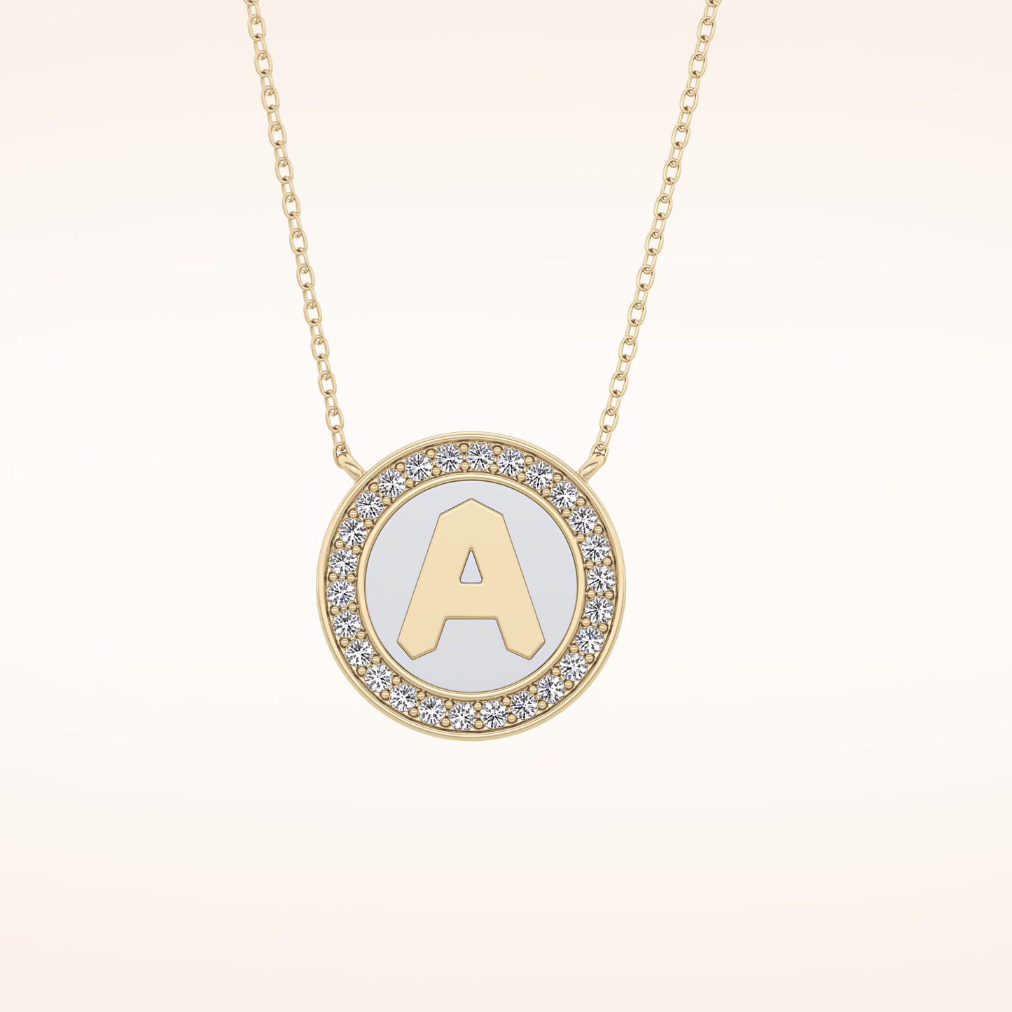 0.17 TCW Round Lab Grown Diamond A Initial Printed Halo Necklace