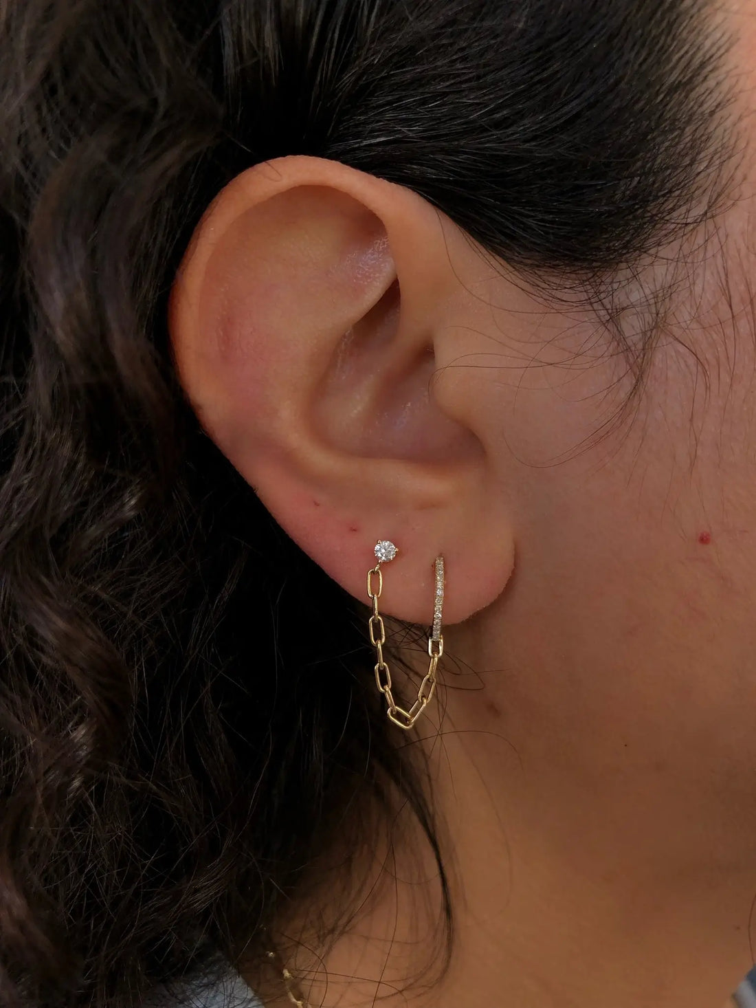 0.30 TCW Round Cut Moissanite Chained Earrings in Gold