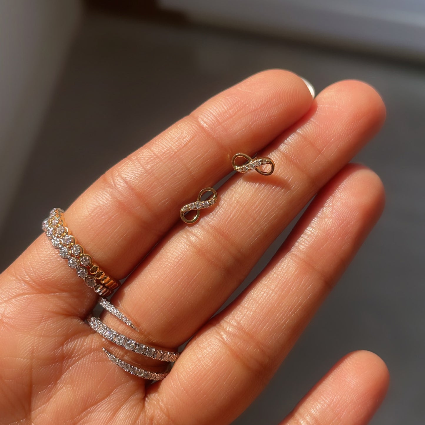 0.30 TCW Round Cut Moissanite Infinity Stud Earrings in Gold