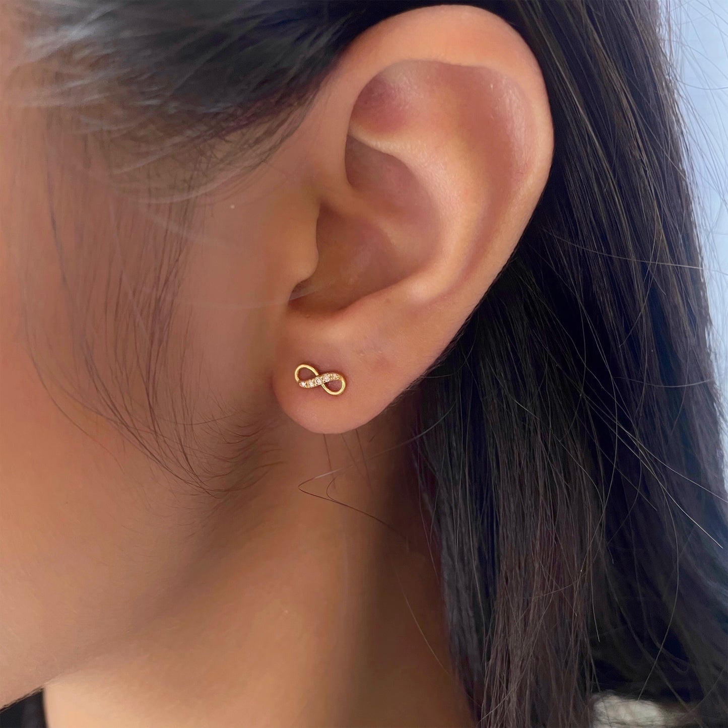 0.30 TCW Round Cut Moissanite Infinity Stud Earrings in Gold 3