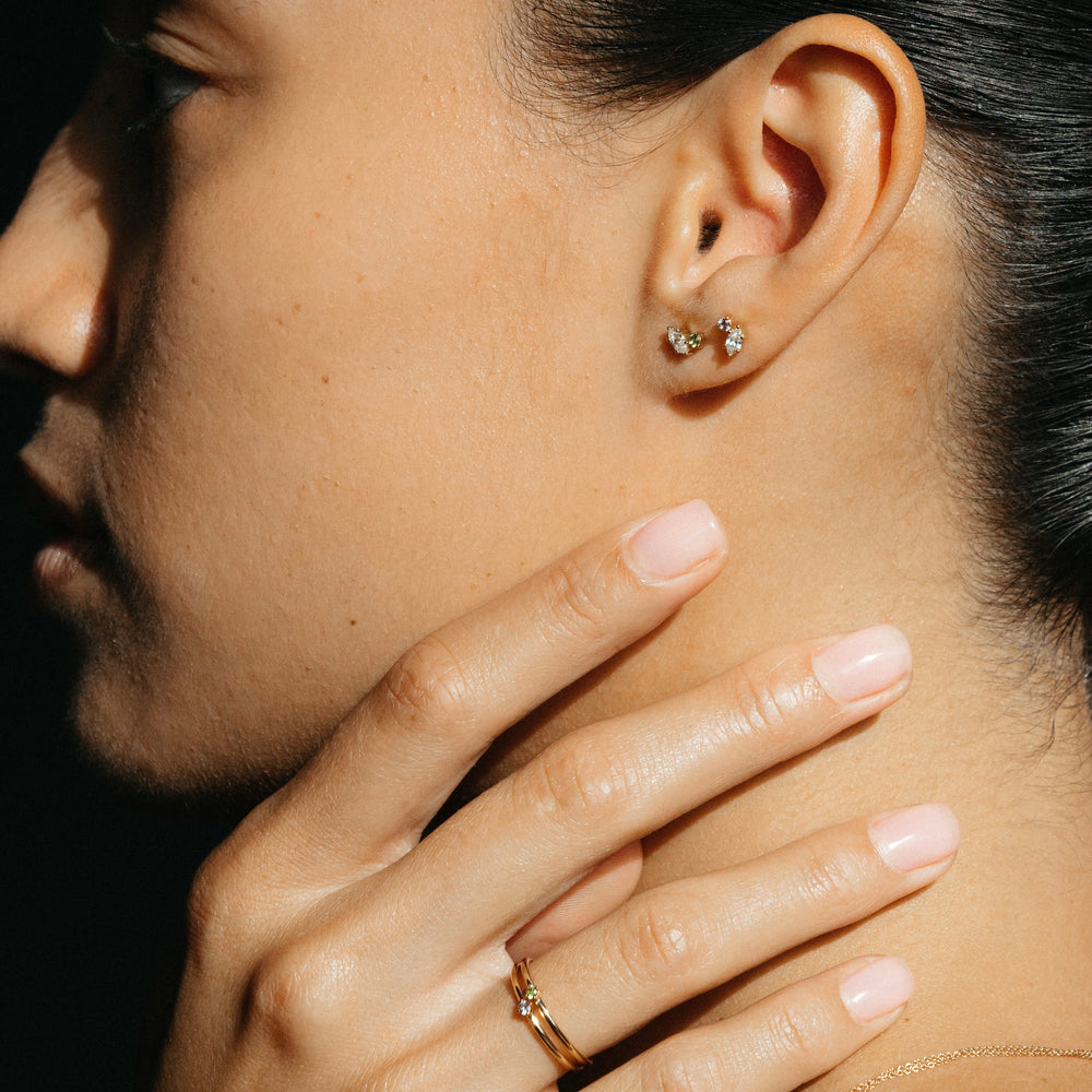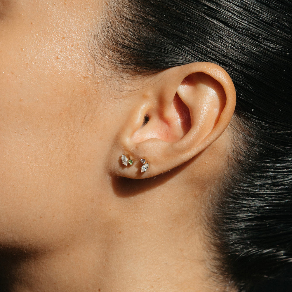 0.40 TCW Round & Marquise Cut Moissanite Two Stone Stud Earrings in Gold 6