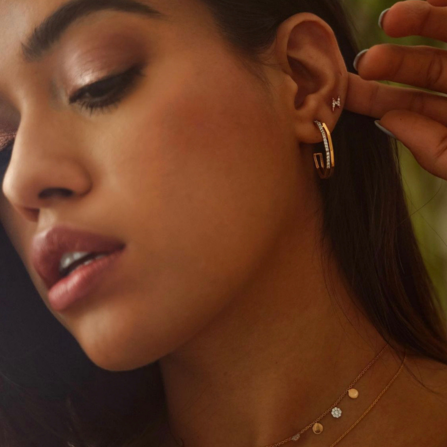 0.80 TCW Round Cut Moissanite double Hoops Earrings in Gold