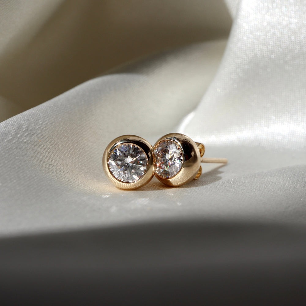 1.0 TCW Round Cut Moissanite Bezel Stud Earrings in Gold