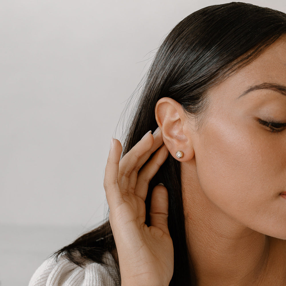 1.0 TCW Round Cut Moissanite Bezel Stud Earrings in Gold 8