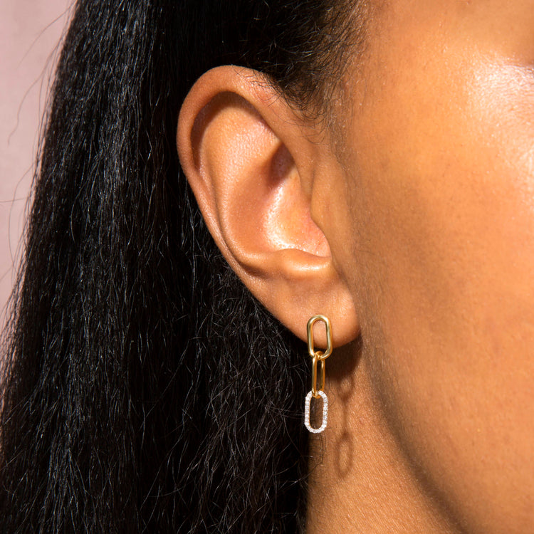1.0 TCW Round Cut Moissanite Linked Up Earrings in Gold