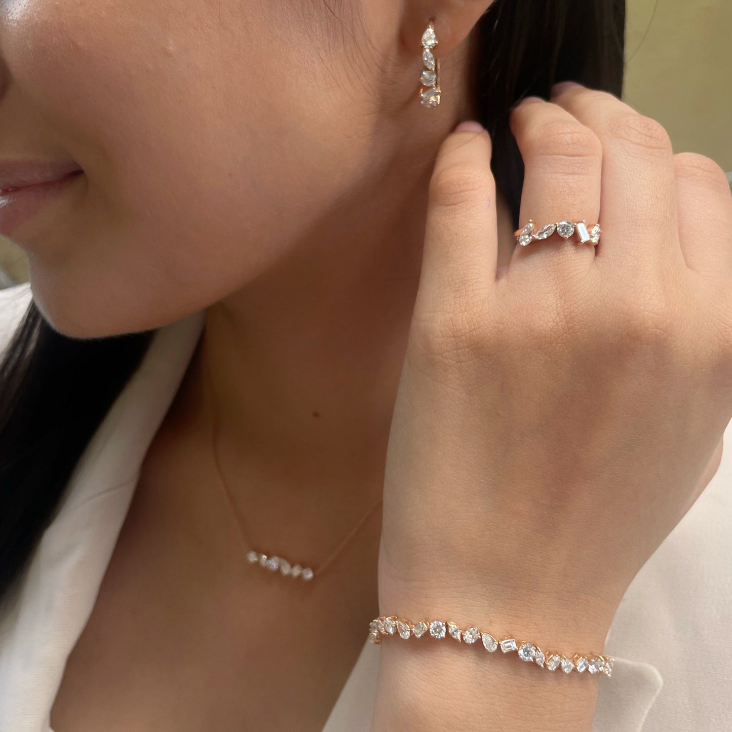 1.50 TCW Round, Marquise, Pear & Baguette Cut Moissanite Hoops Earrings in Gold 3