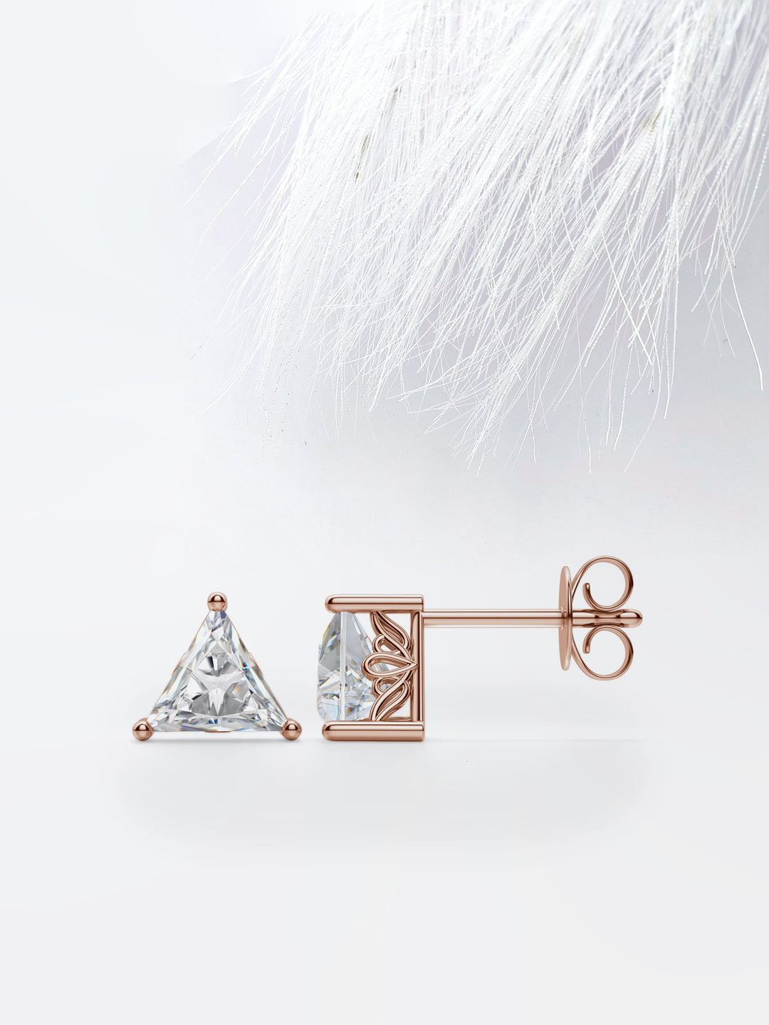 Brilliant triangle-cut diamond studs, meticulously crafted in solid gold, radiating timeless elegance with every sparkle.