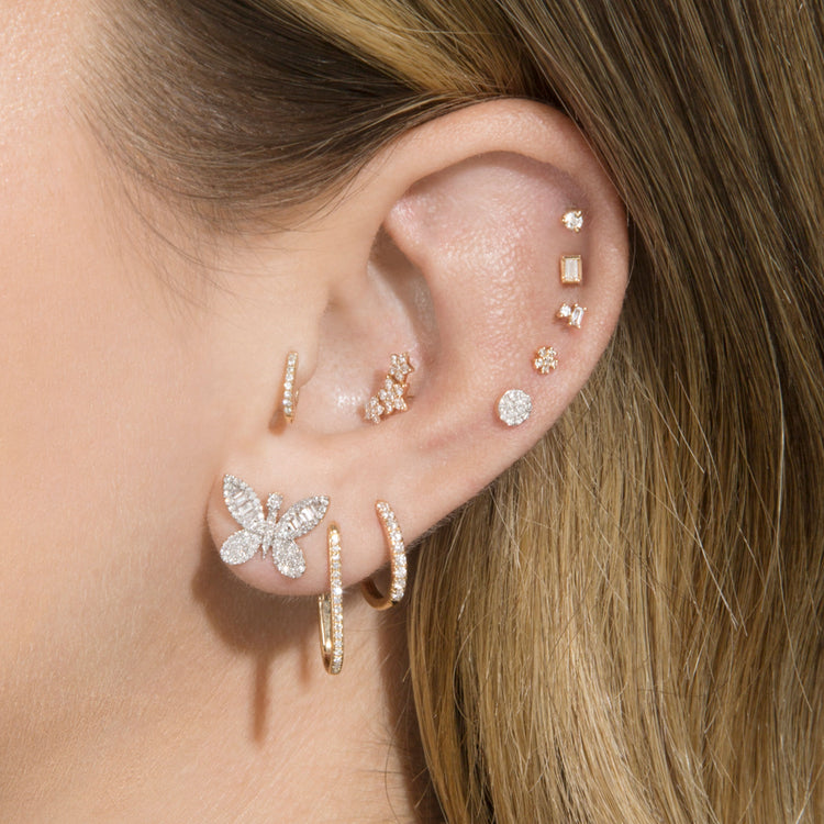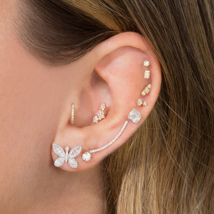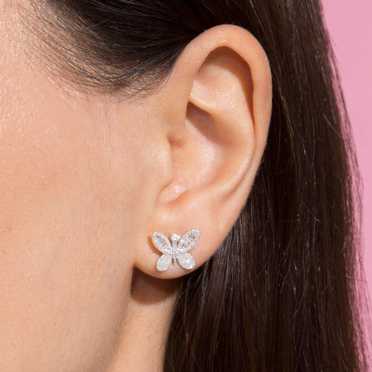 2.0 TCW Round & Baguette Cut Moissanite Butterfly Stud Earrings in Gold 10