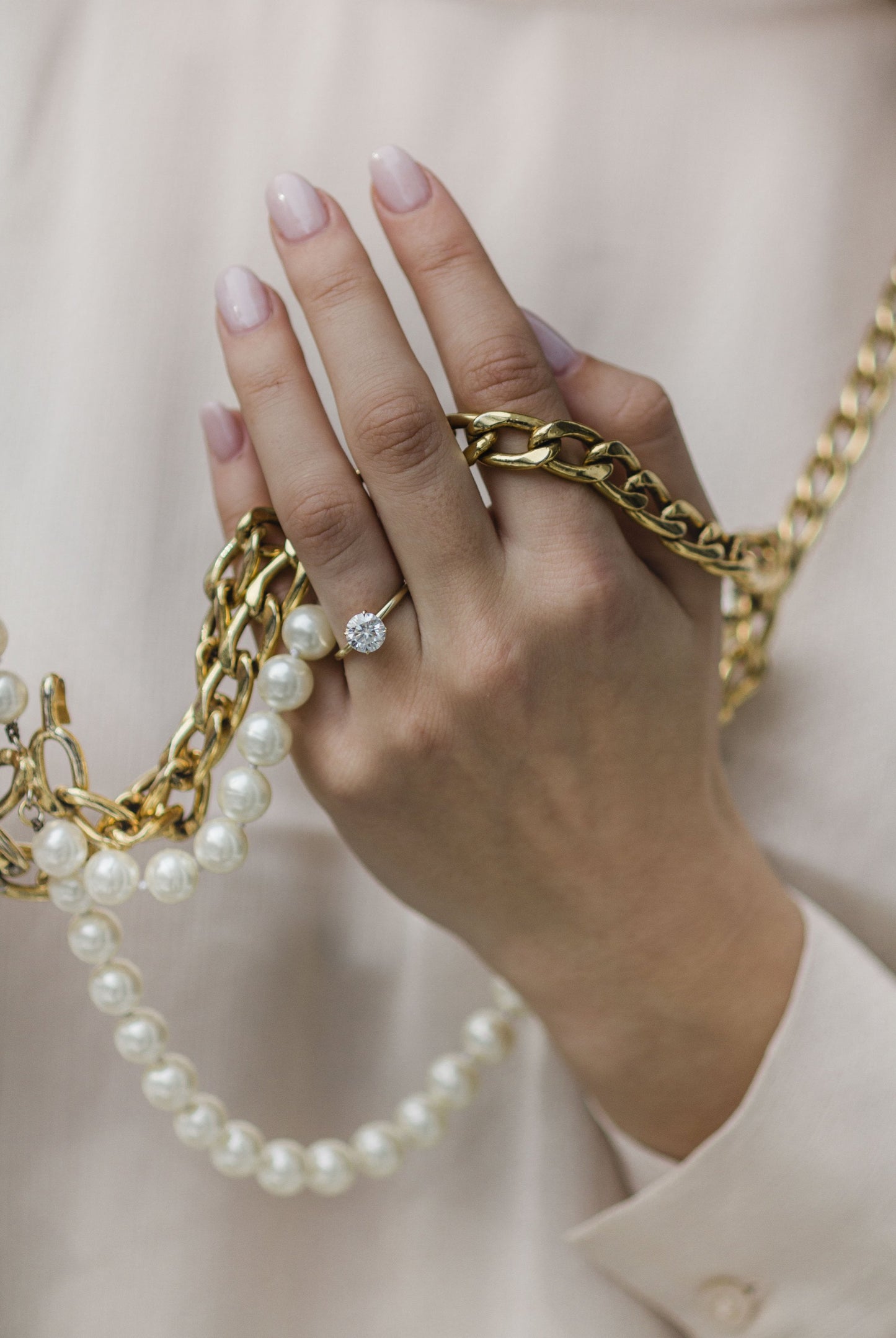 Solid gold is durable but can scratch over time. Keep it away from chemicals, lotions, cleaning products, and chlorine, which can cause oxidation and brittleness. Always remove jewellery before swimming, exercising, or manual tasks, including household chores. Store pieces in a soft-lined box, separated from other jewellery, especially diamonds. The rhodium plating on white gold wears away over time; minimise polishing to slow this process. Check regularly for damage and service annually, including rhodium plating when the warmer metal begins to show.