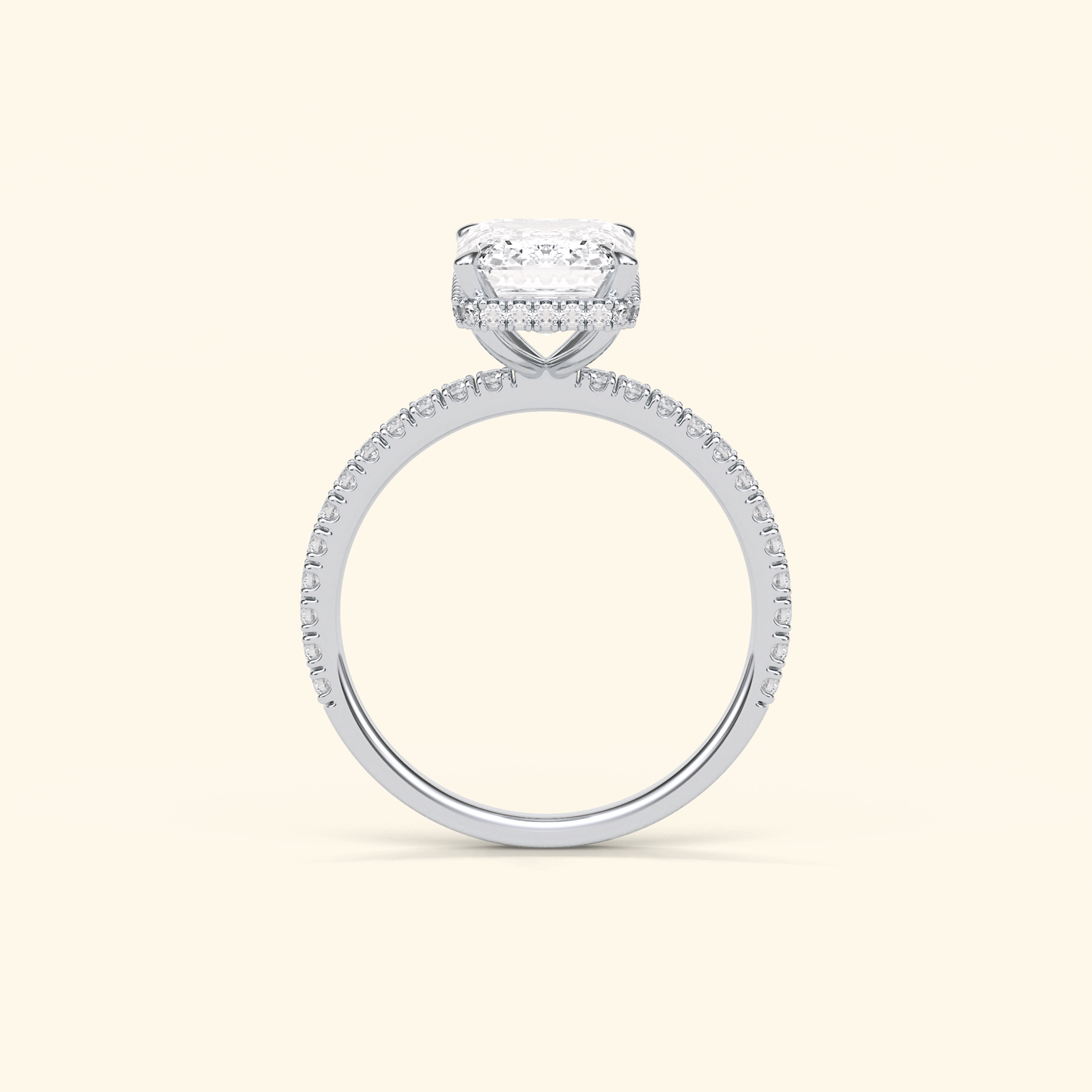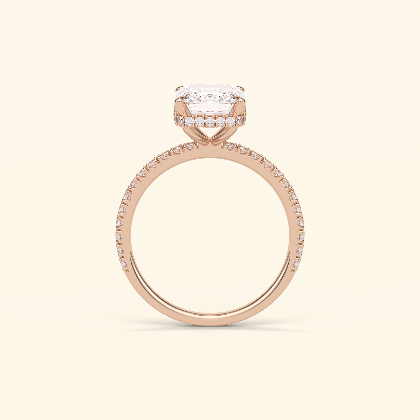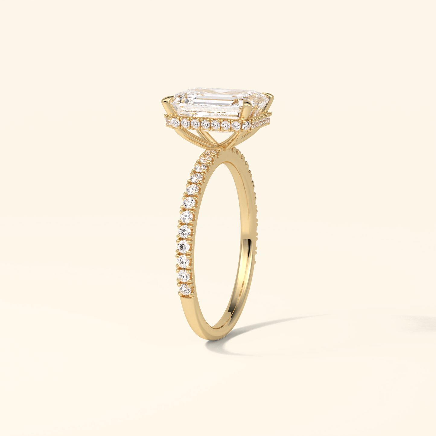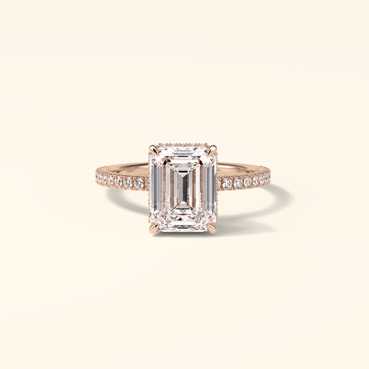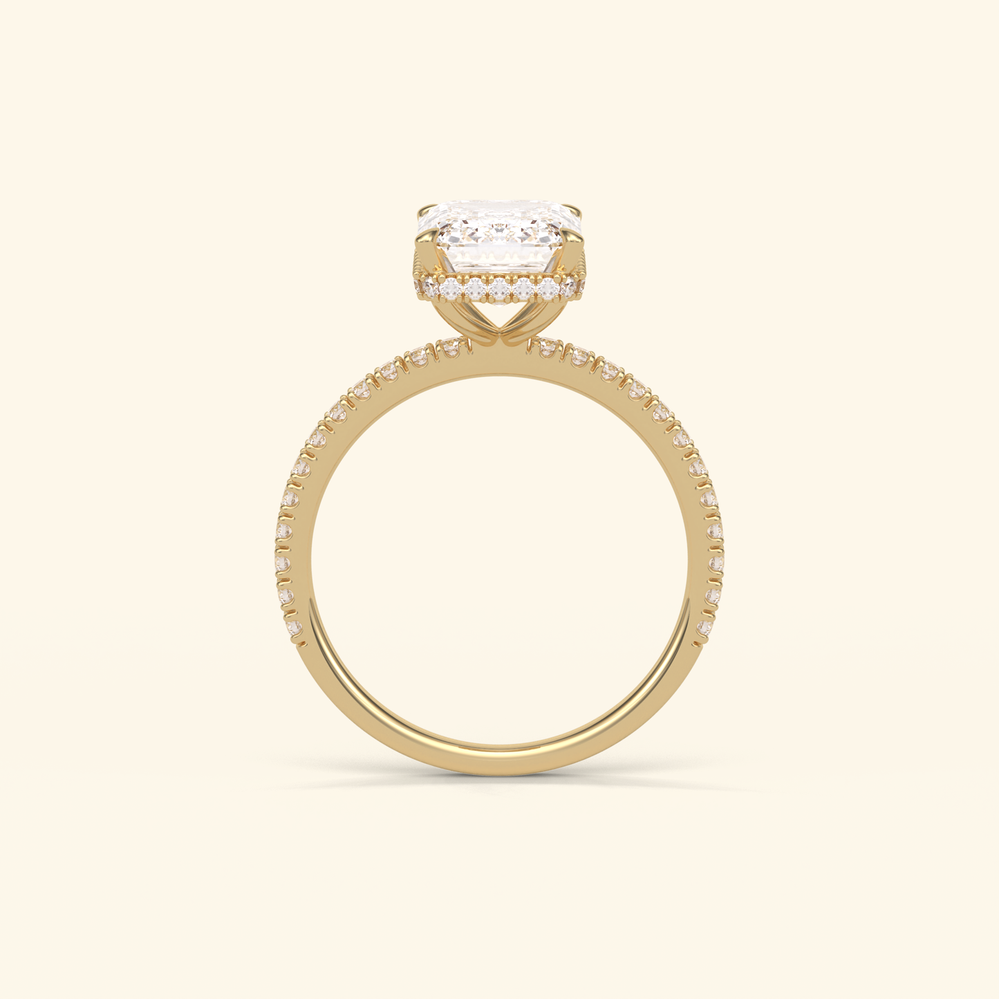 Emerald Moissanite Hidden Halo Engagement Ring – 2.30 CT Center Stone with Pave Band in Solid Gold