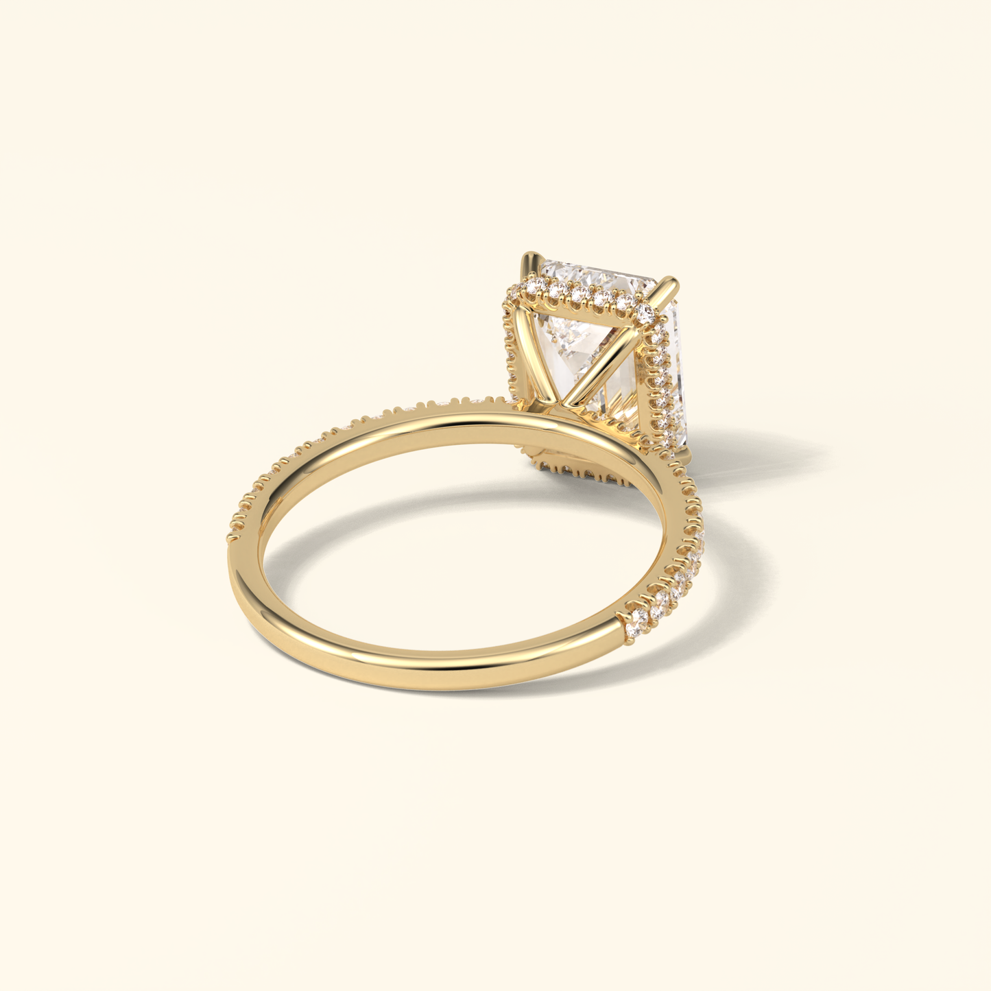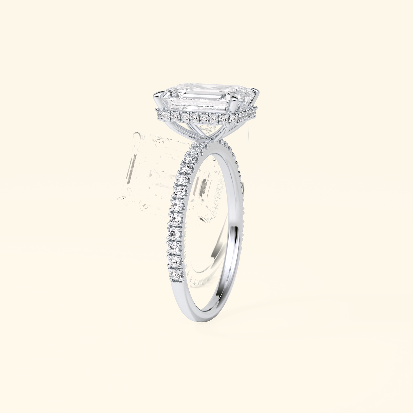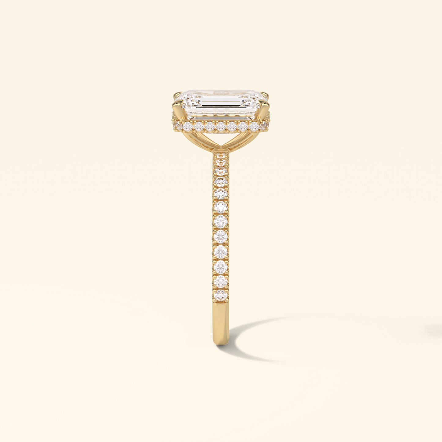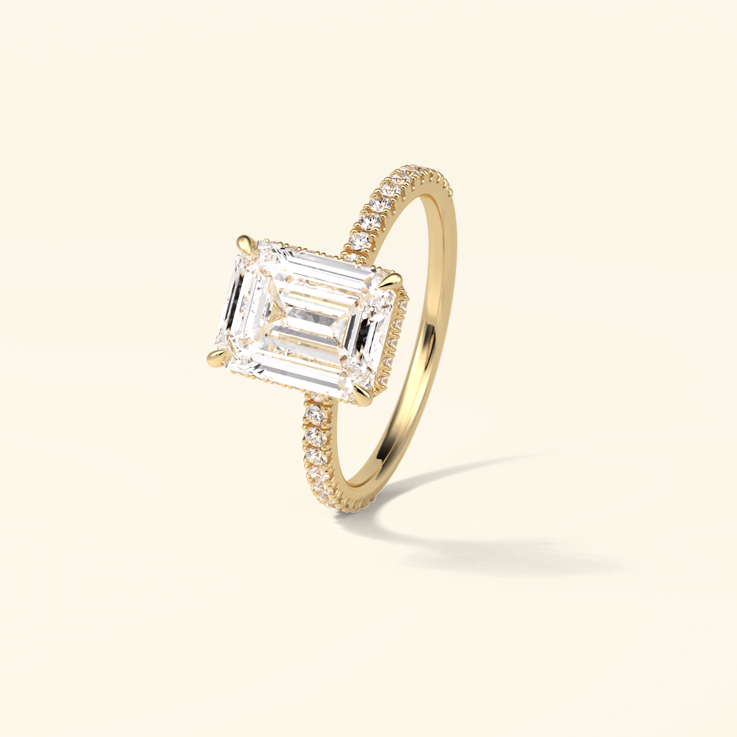 Emerald Moissanite Hidden Halo Engagement Ring – 2.30 CT Center Stone with Pave Band in Solid Gold