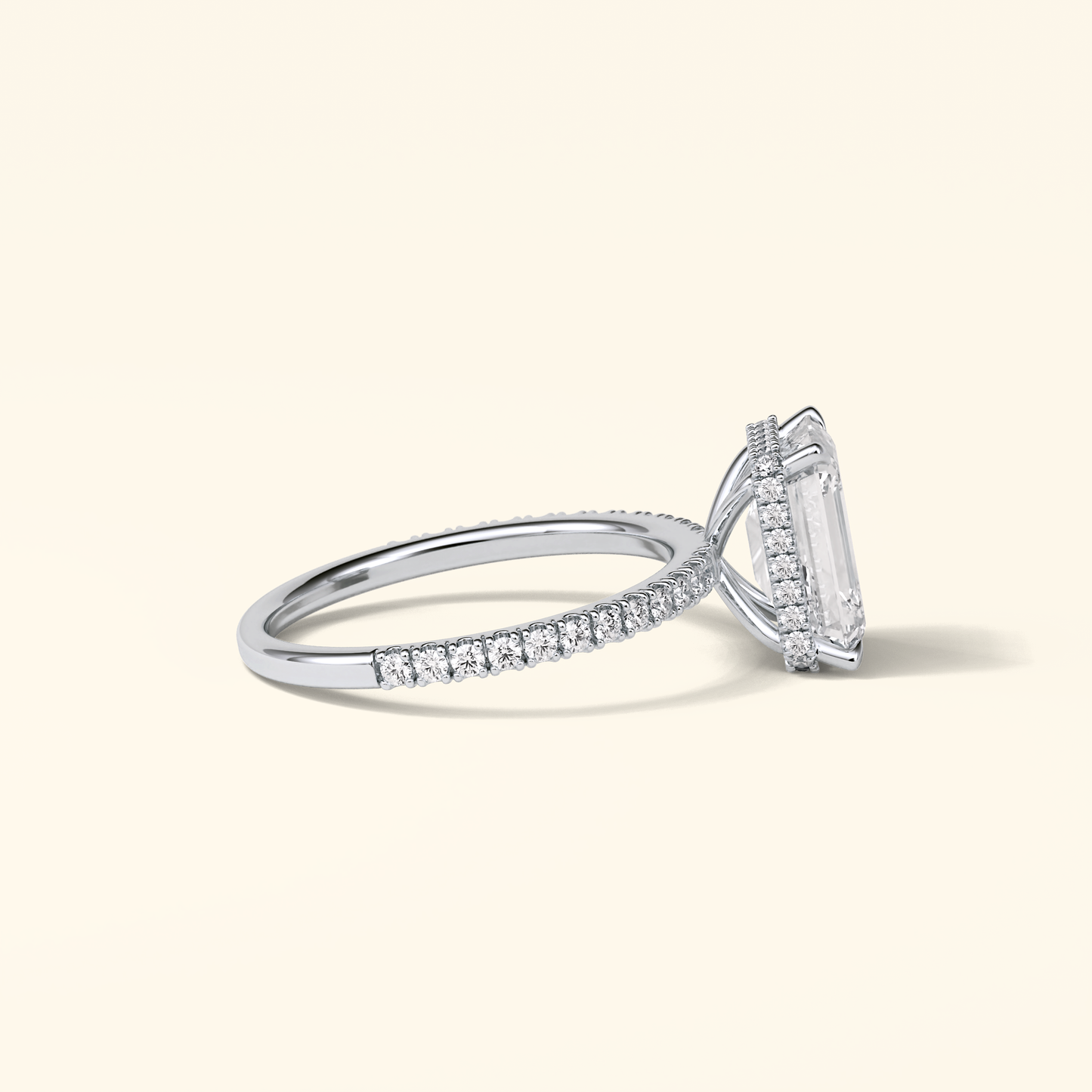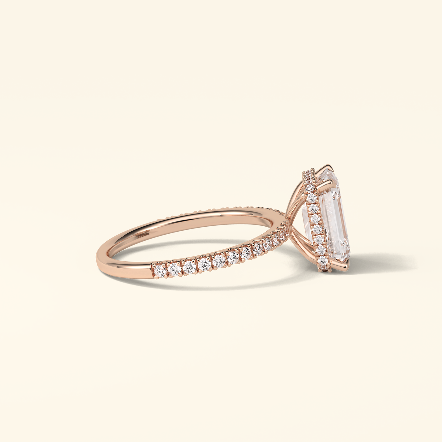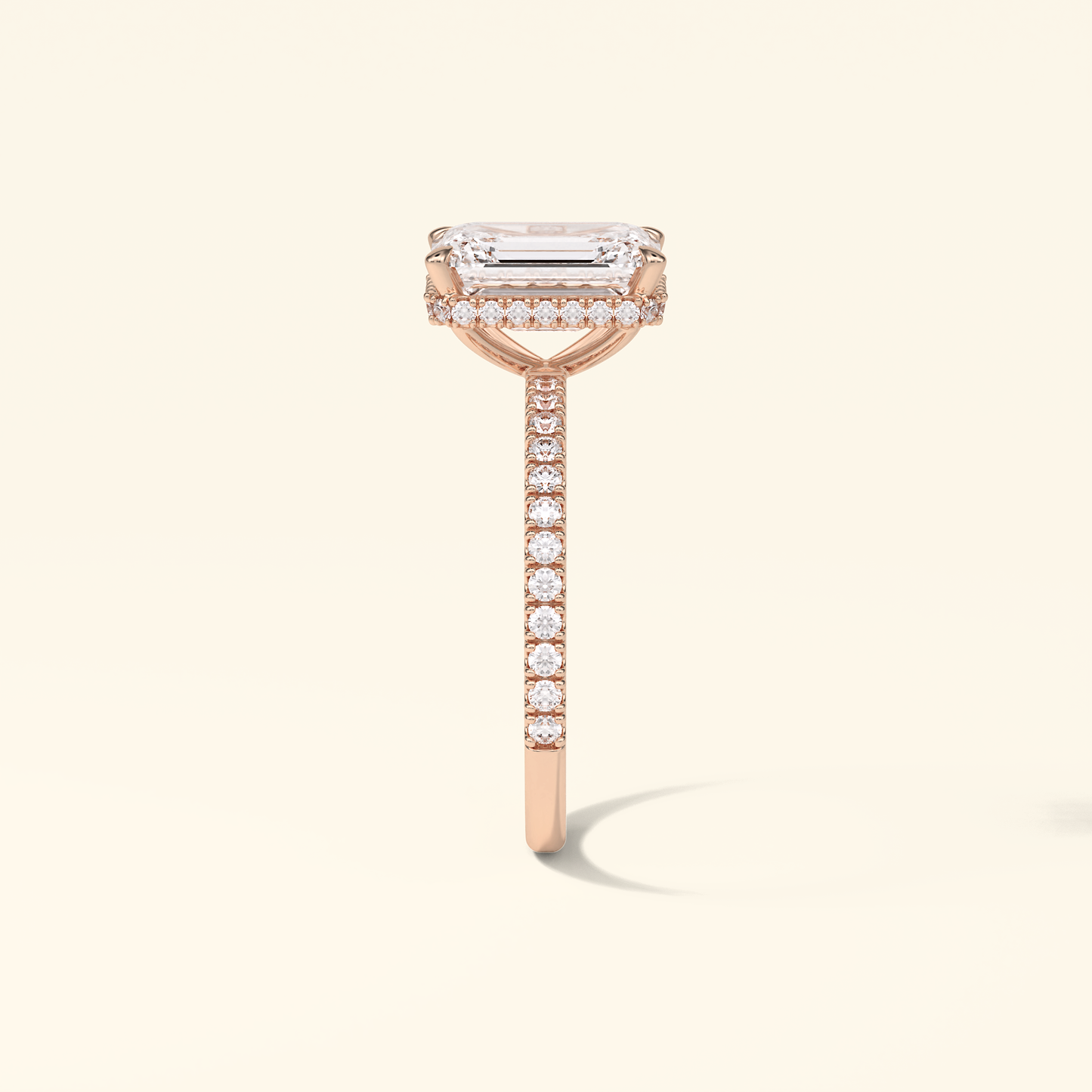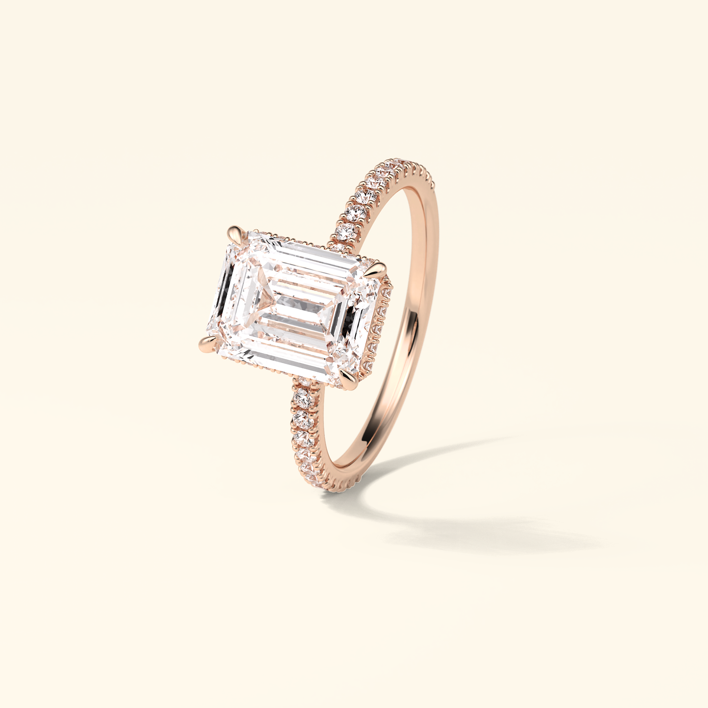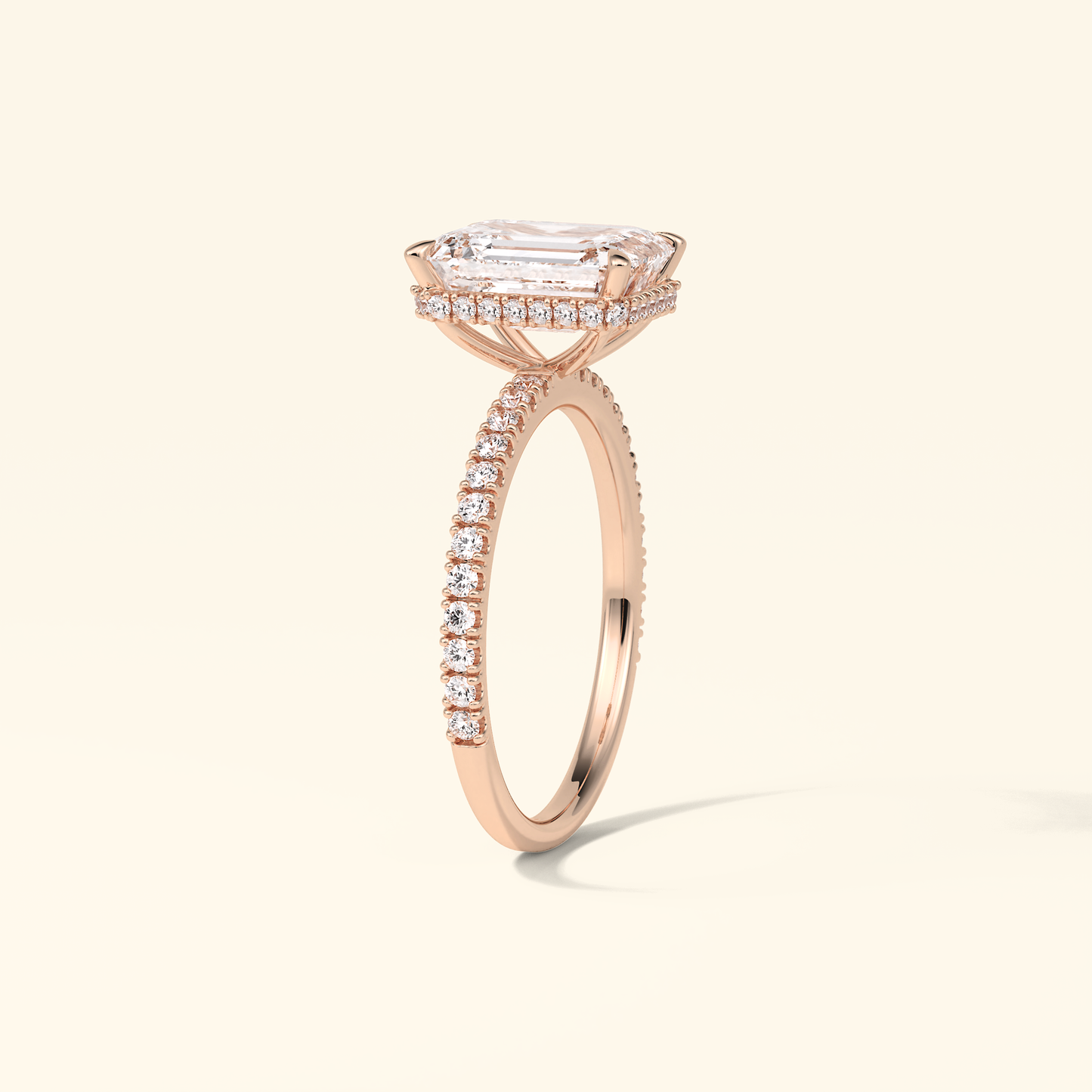 Emerald Moissanite Hidden Halo Engagement Ring – 2.30 CT Center Stone with Pave Band in Solid Gold