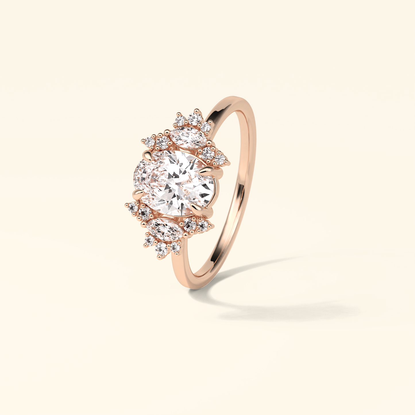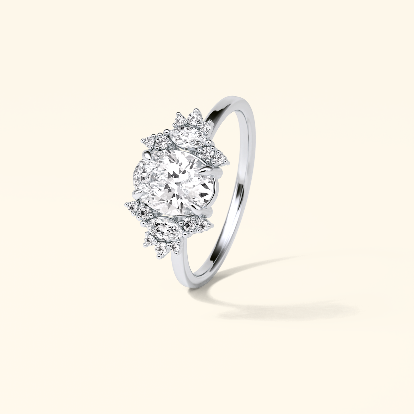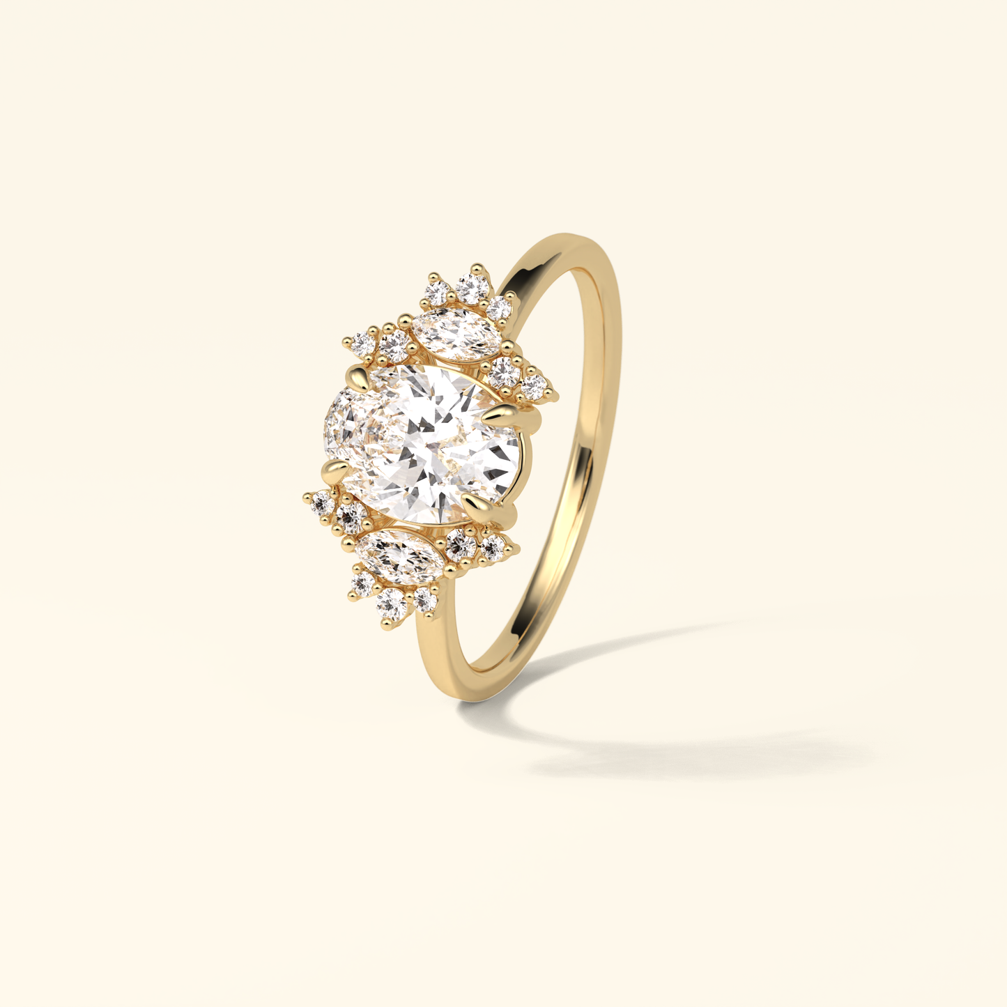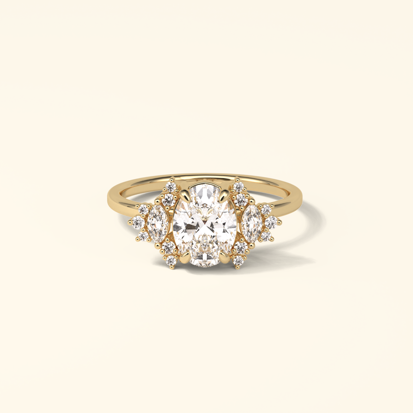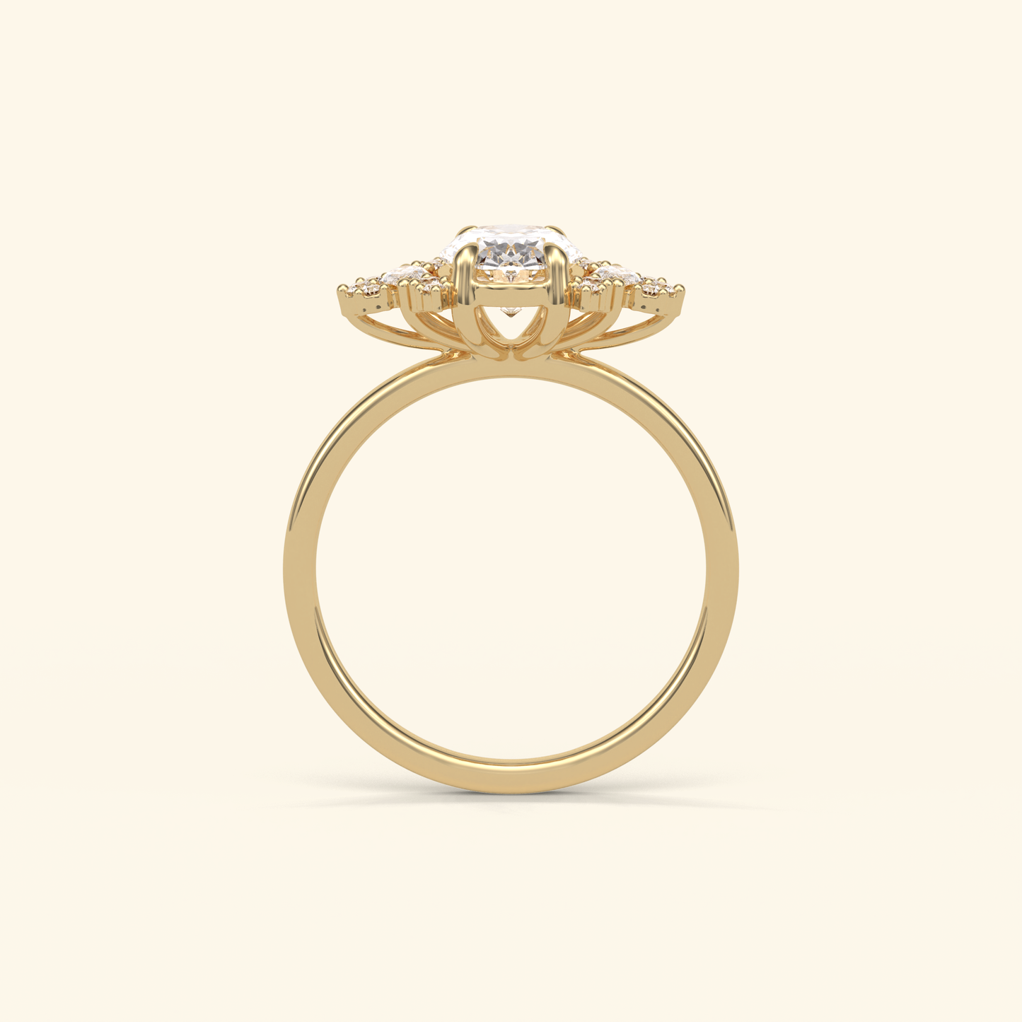 Oval Moissanite Cluster Engagement Ring – 1.33 CT Center Stone in Solid Gold