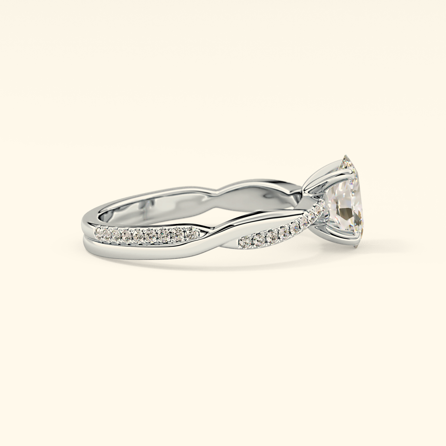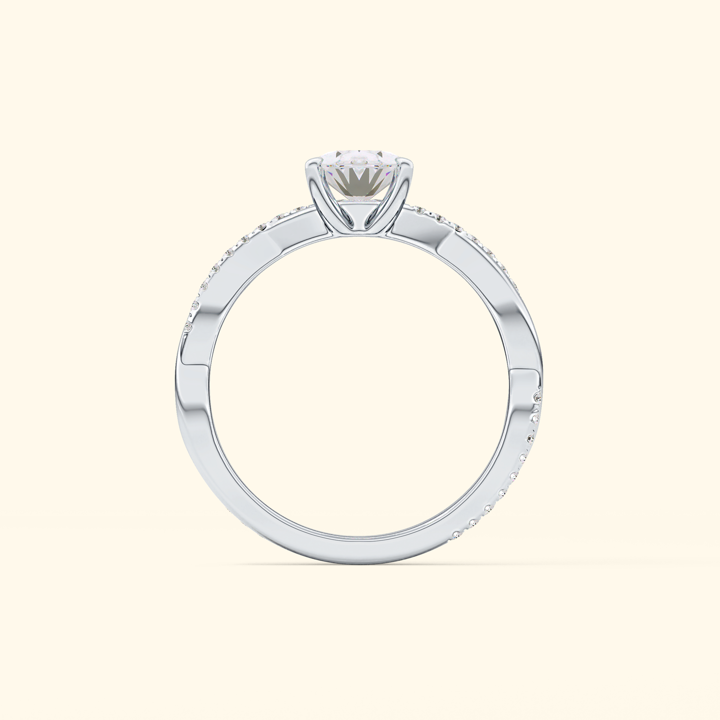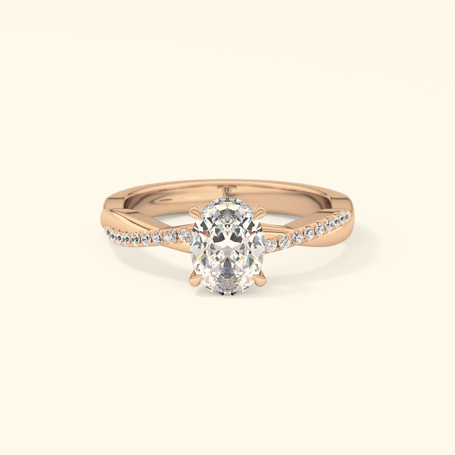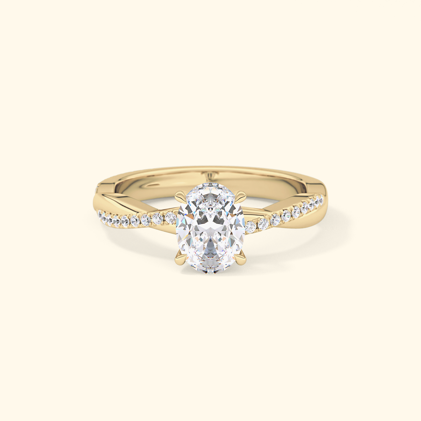 Oval Moissanite Engagement Ring – 0.83 CT Center Stone with Criss Cross Pave Band in Solid Gold