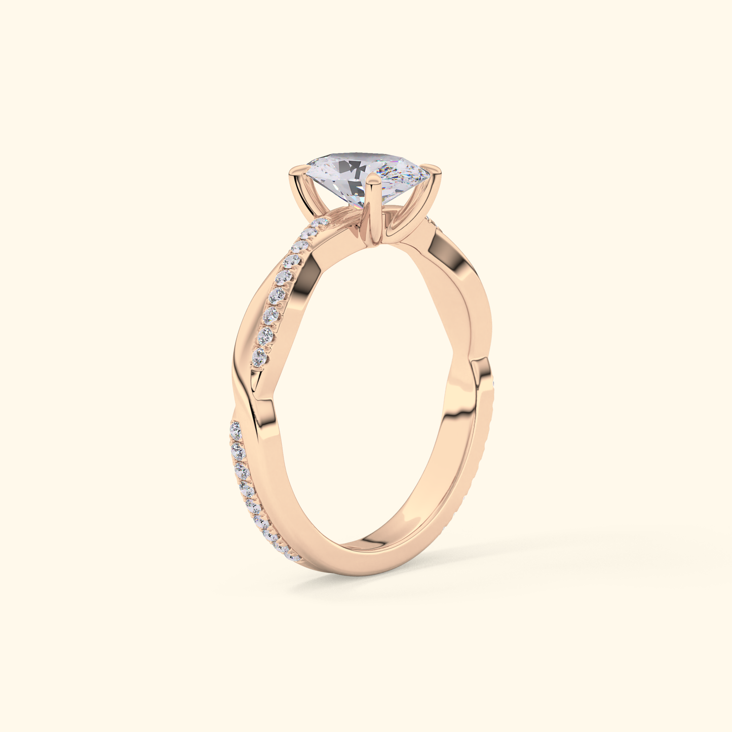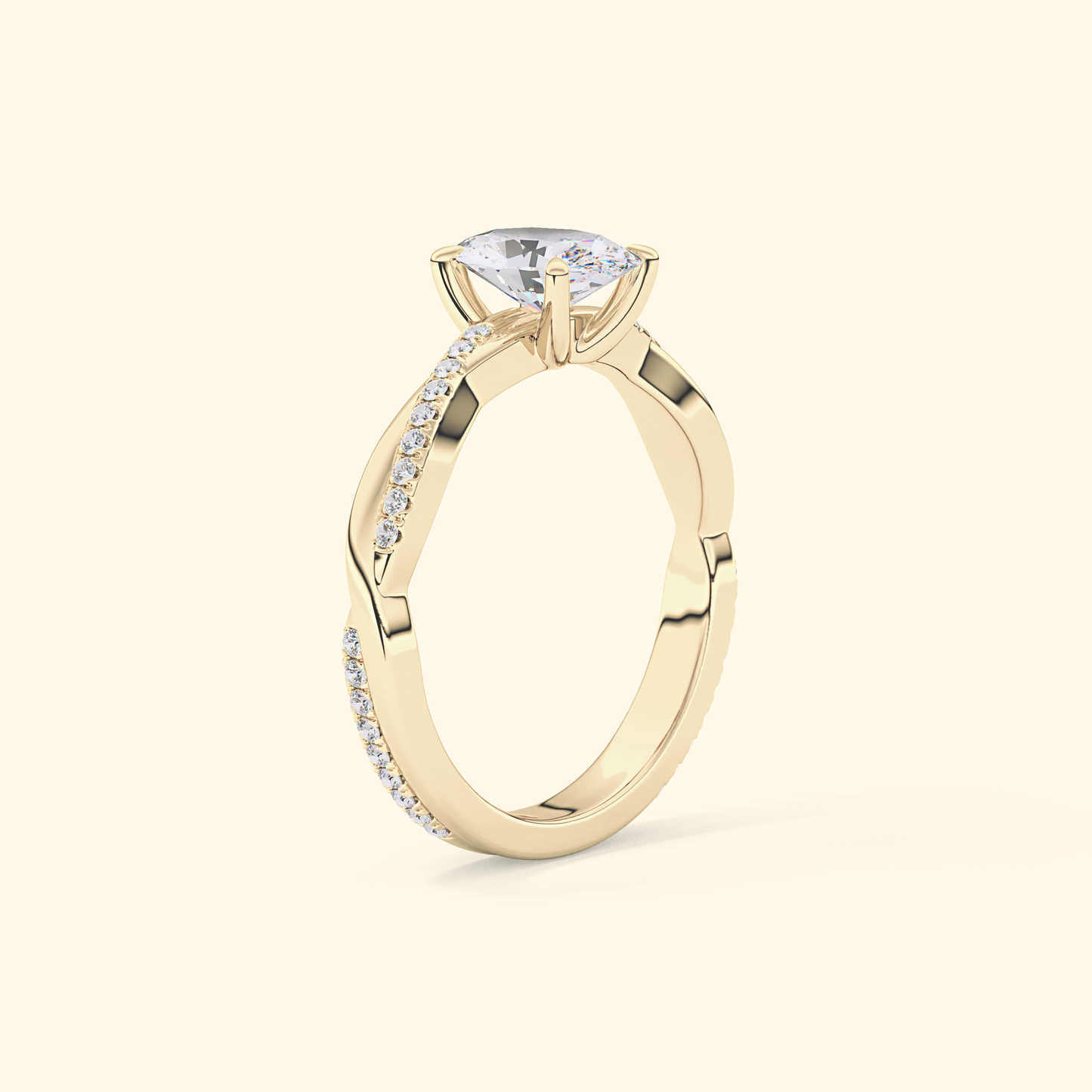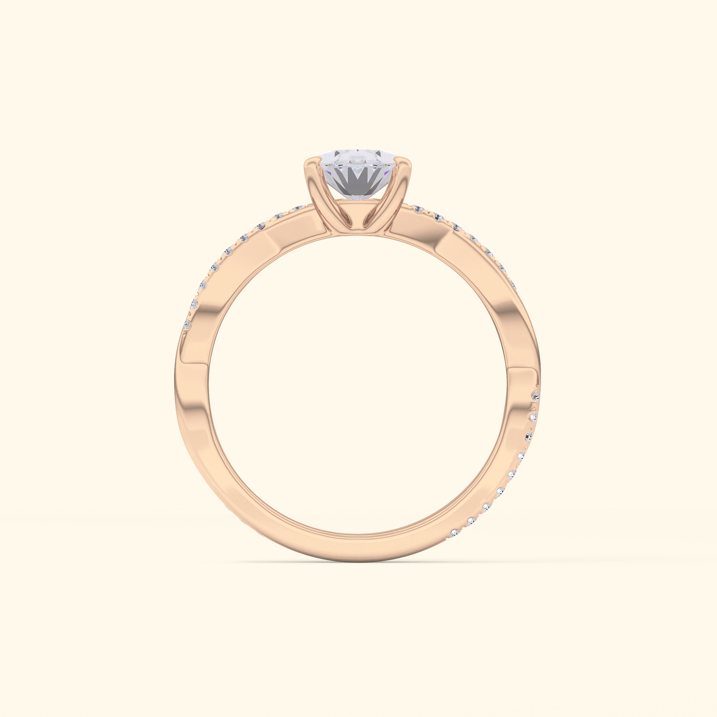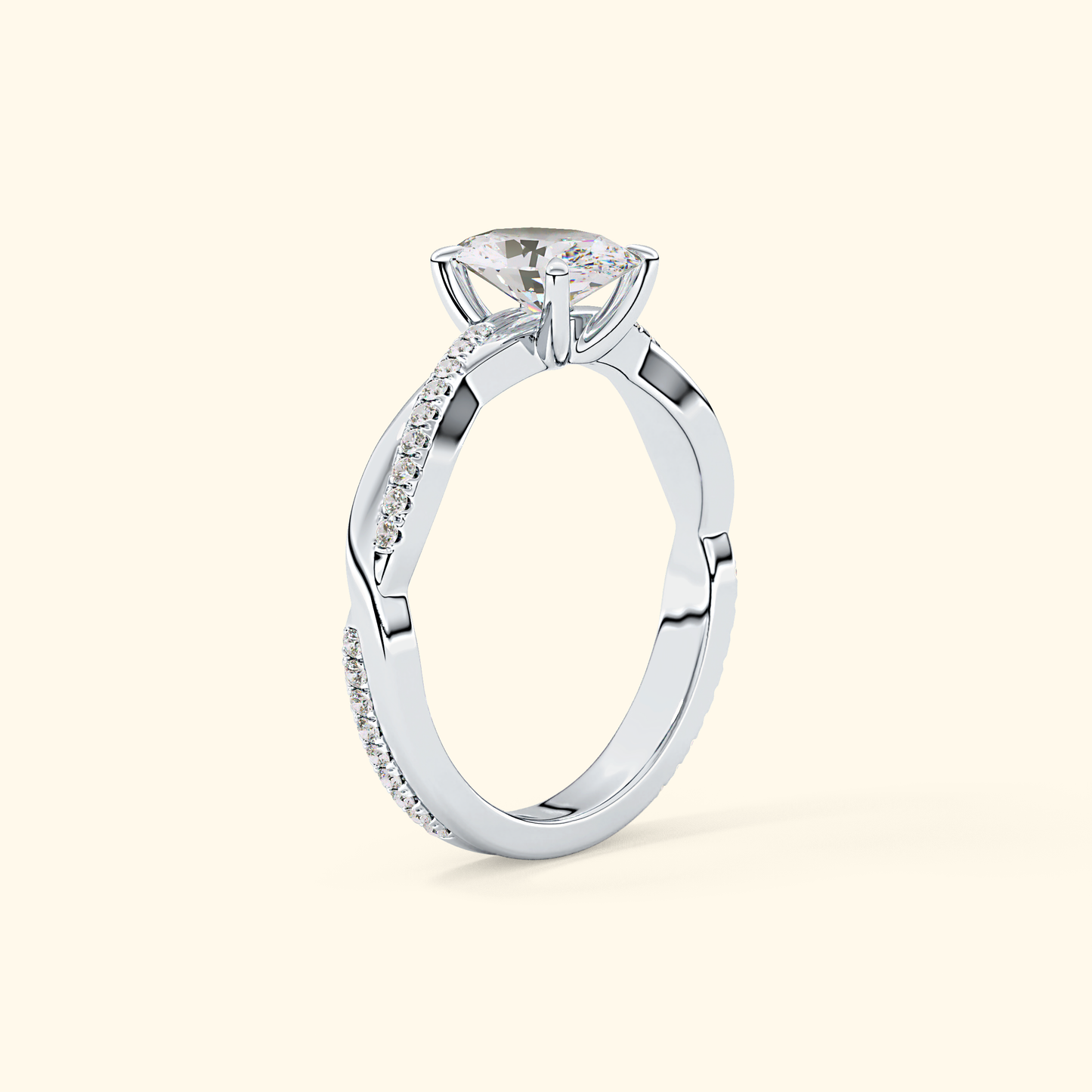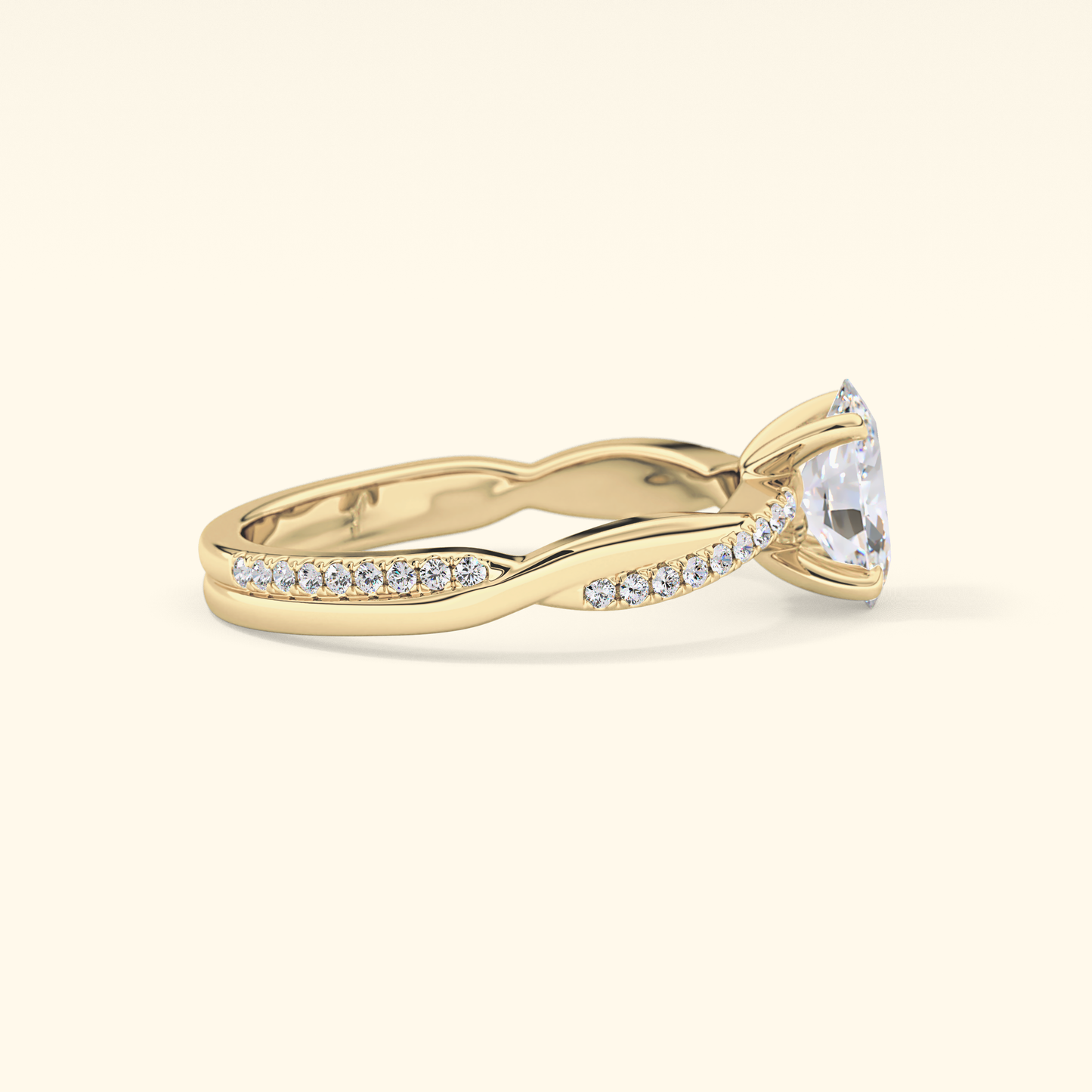 Oval Moissanite Engagement Ring – 0.83 CT Center Stone with Criss Cross Pave Band in Solid Gold