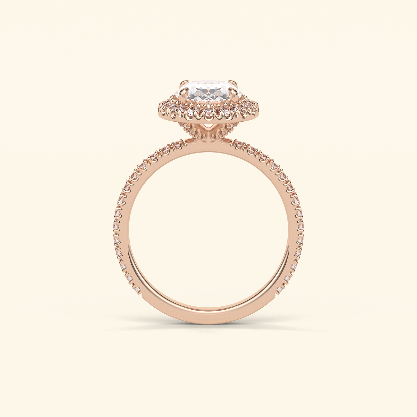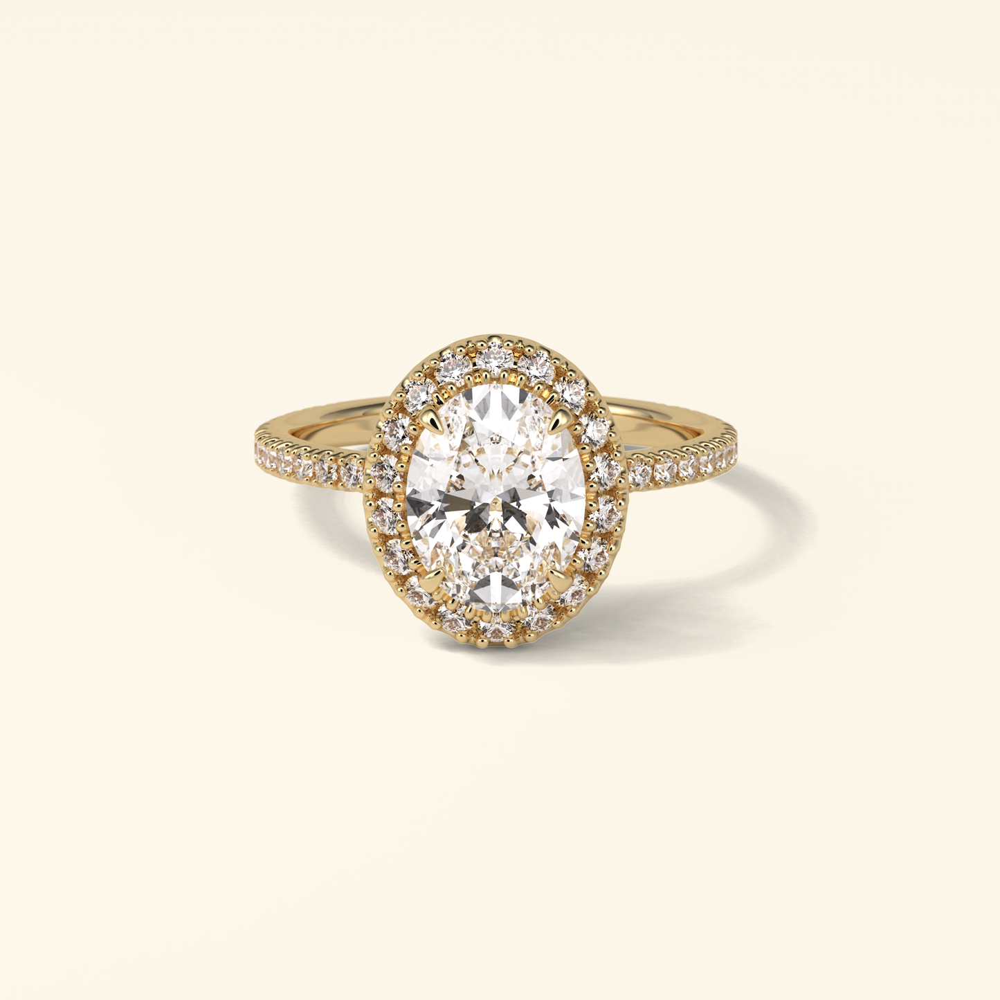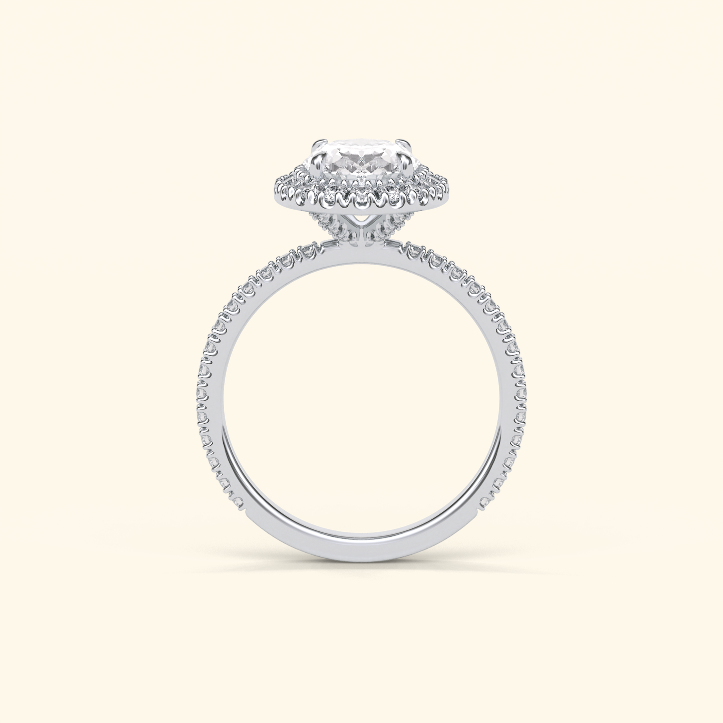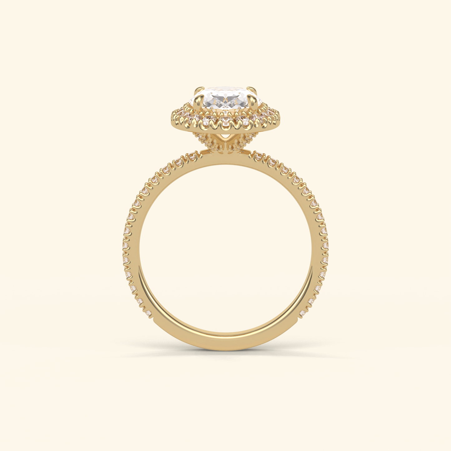 Oval Moissanite Hidden Halo Engagement Ring – 1.91 CT Center Stone with Pave Band in Solid Gold