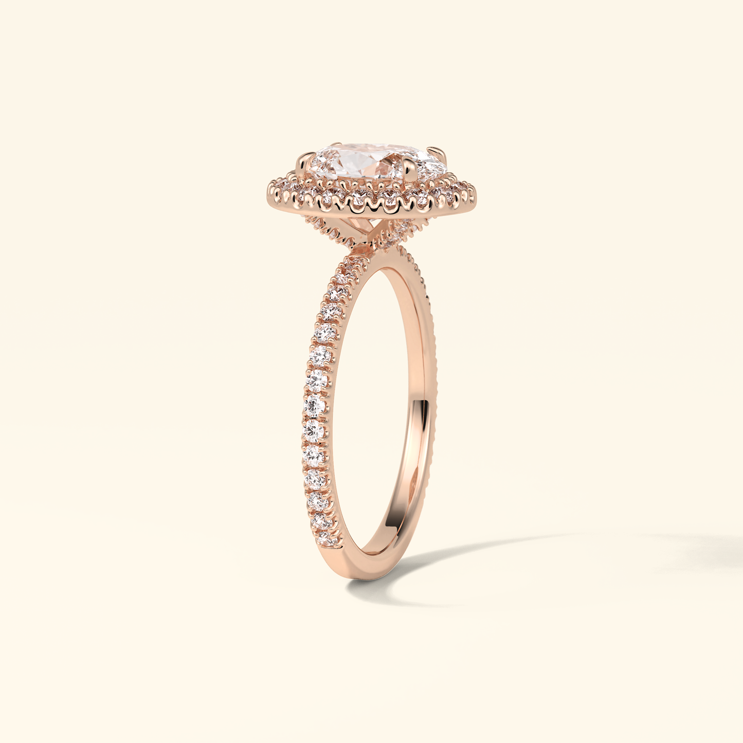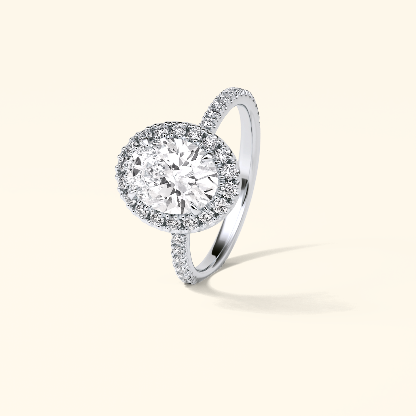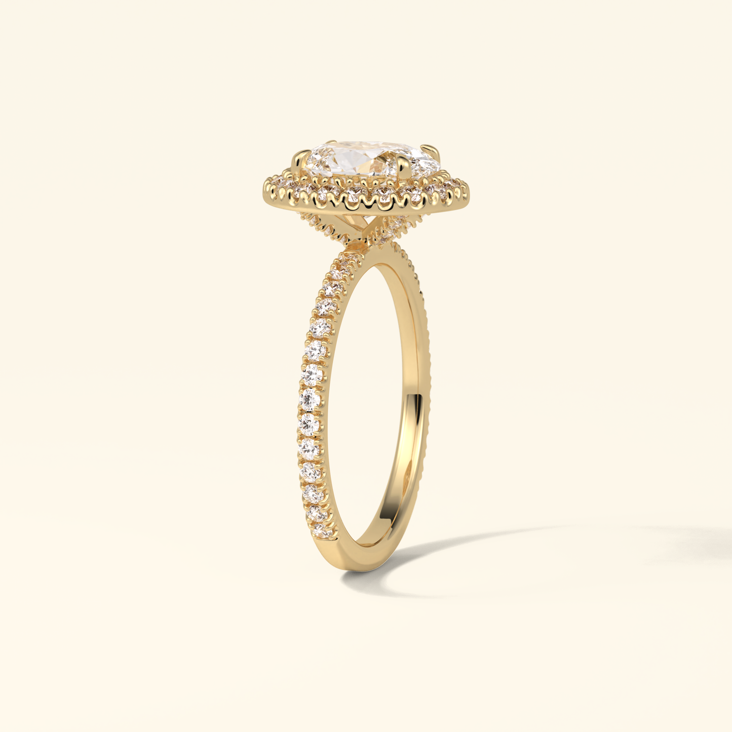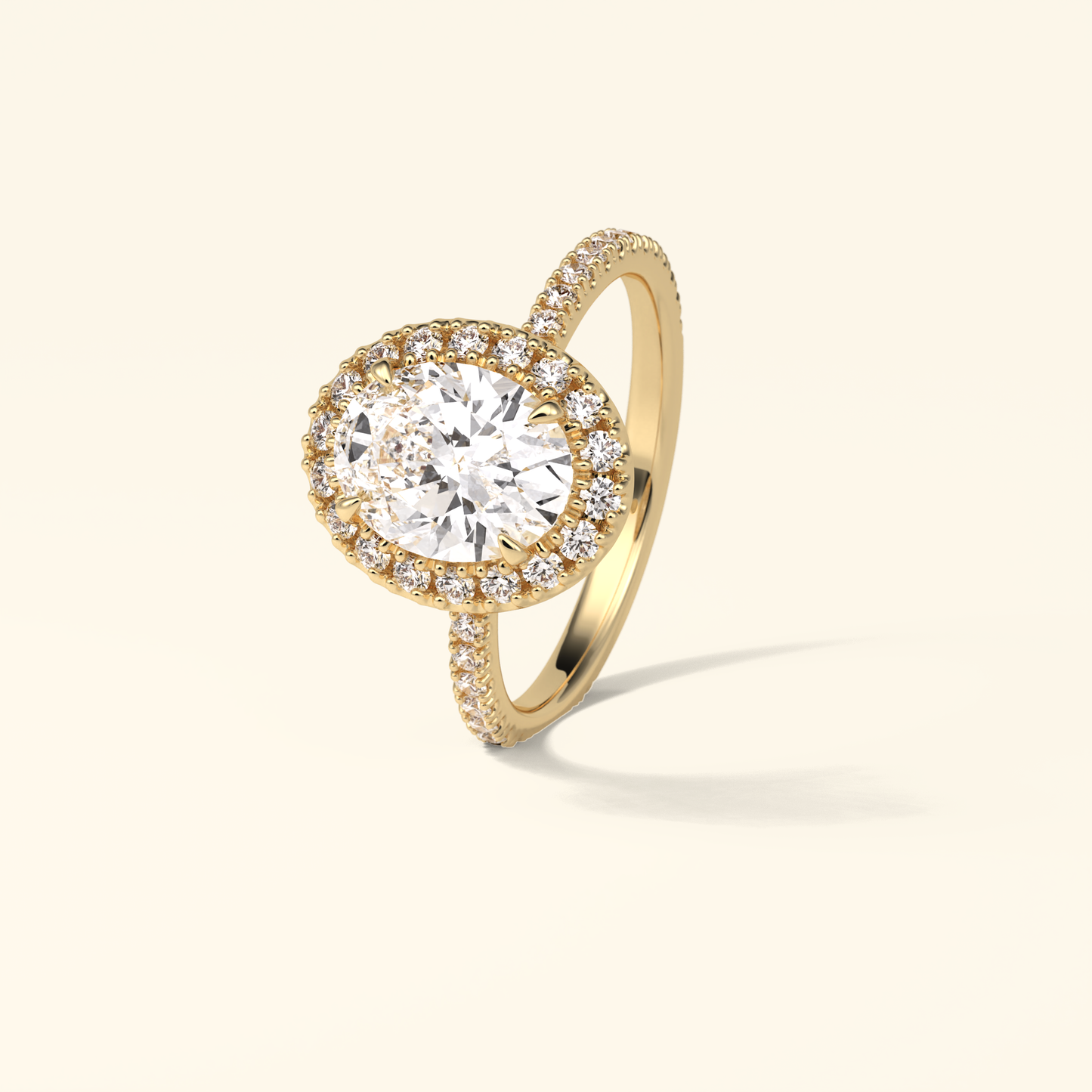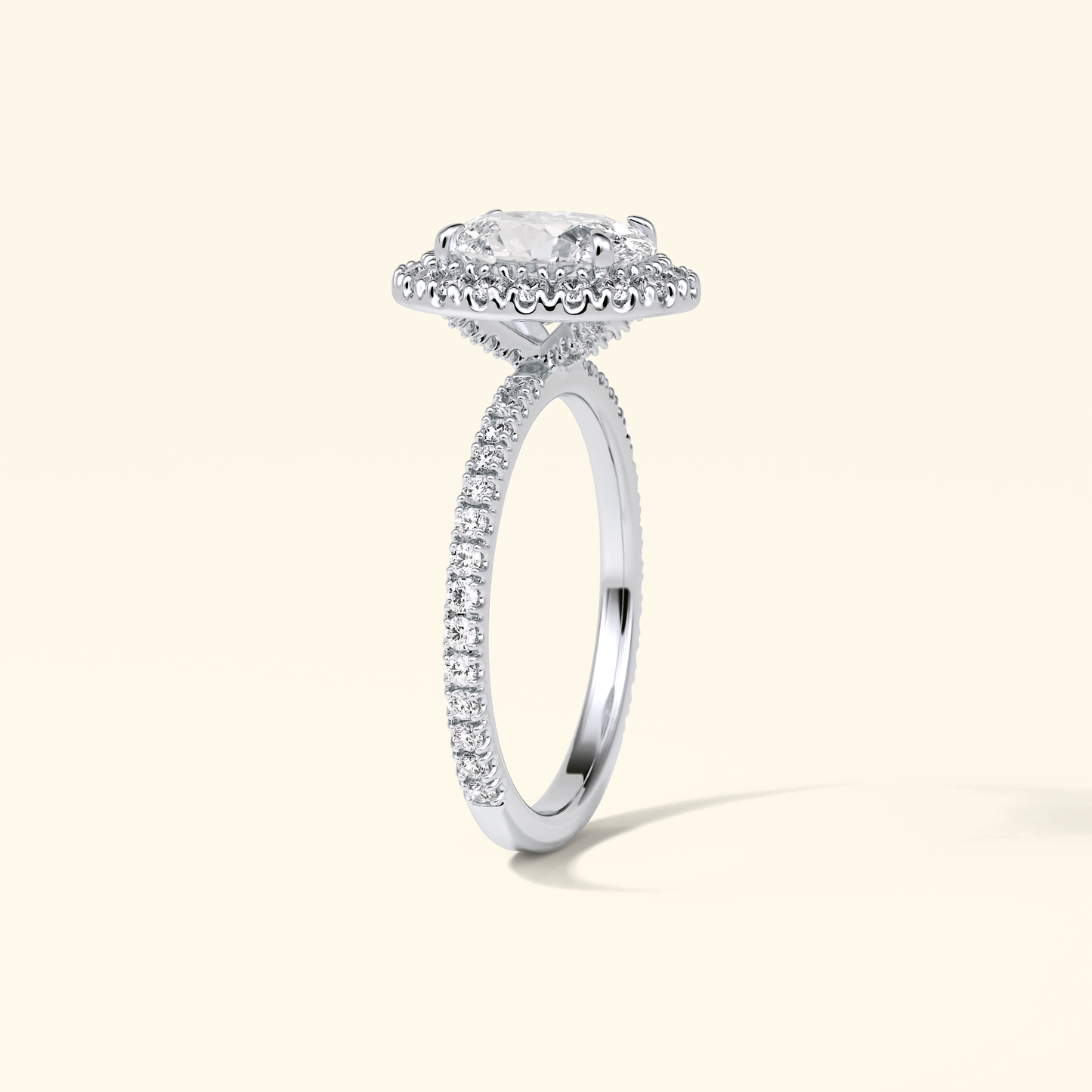 Oval Moissanite Hidden Halo Engagement Ring – 1.91 CT Center Stone with Pave Band in Solid Gold