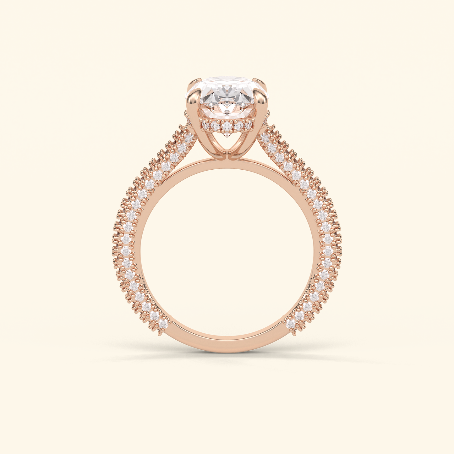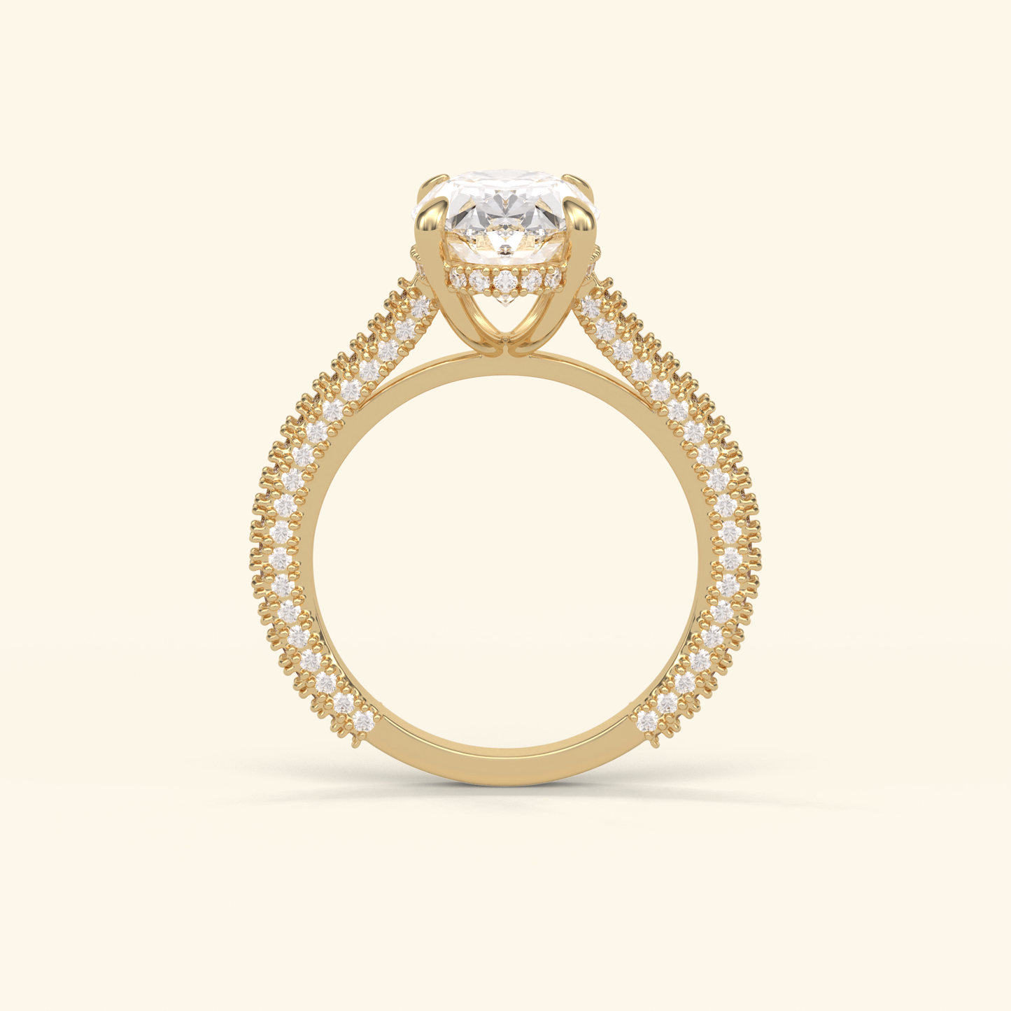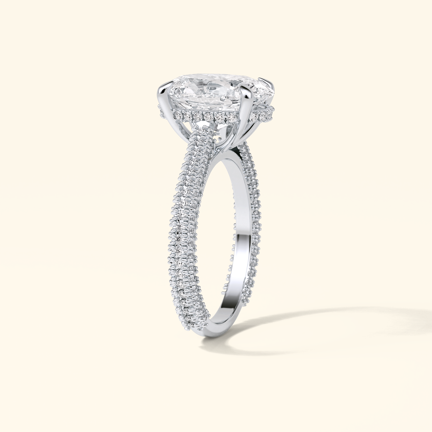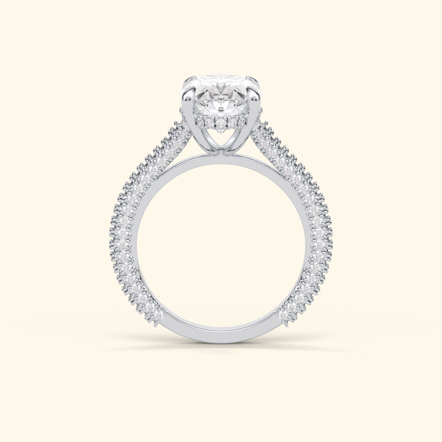 Oval Moissanite Hidden Halo Engagement Ring – 4 CT Center Stone with Pave Band in Solid Gold