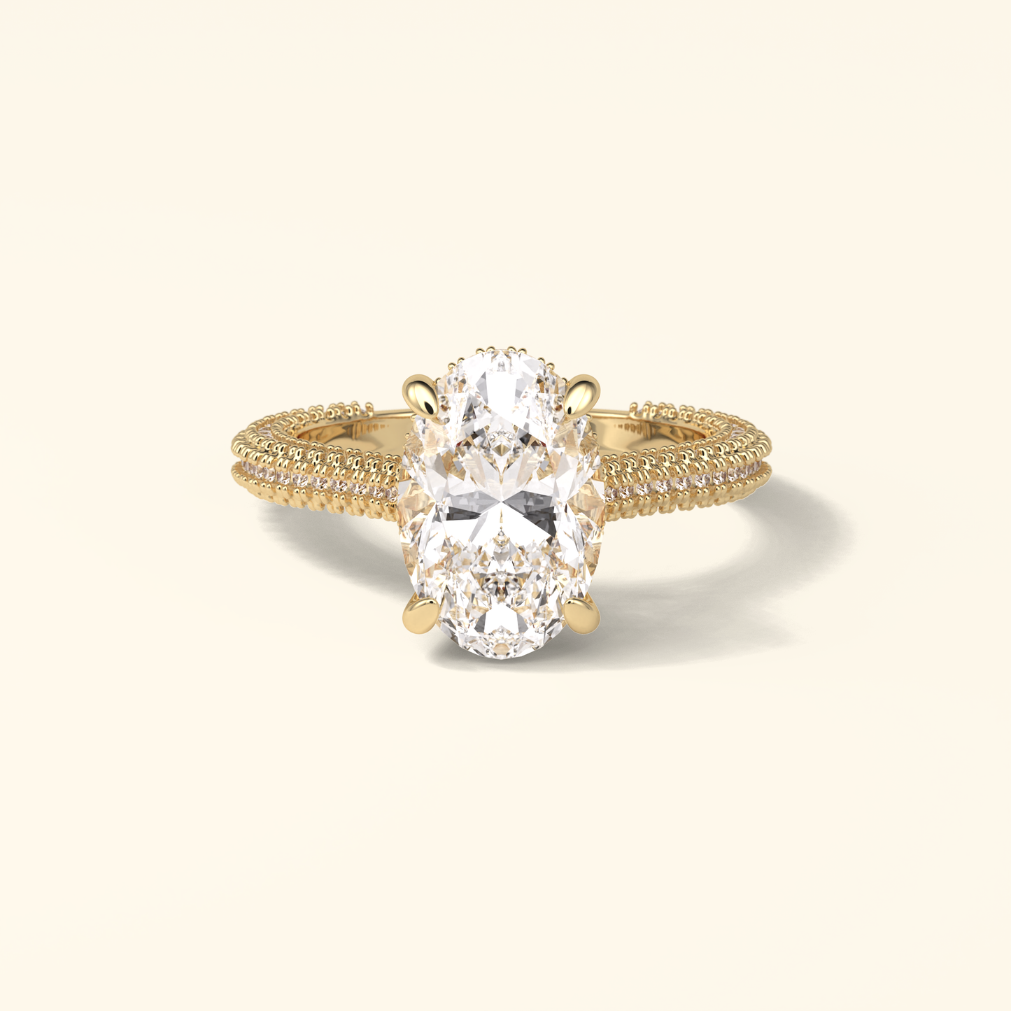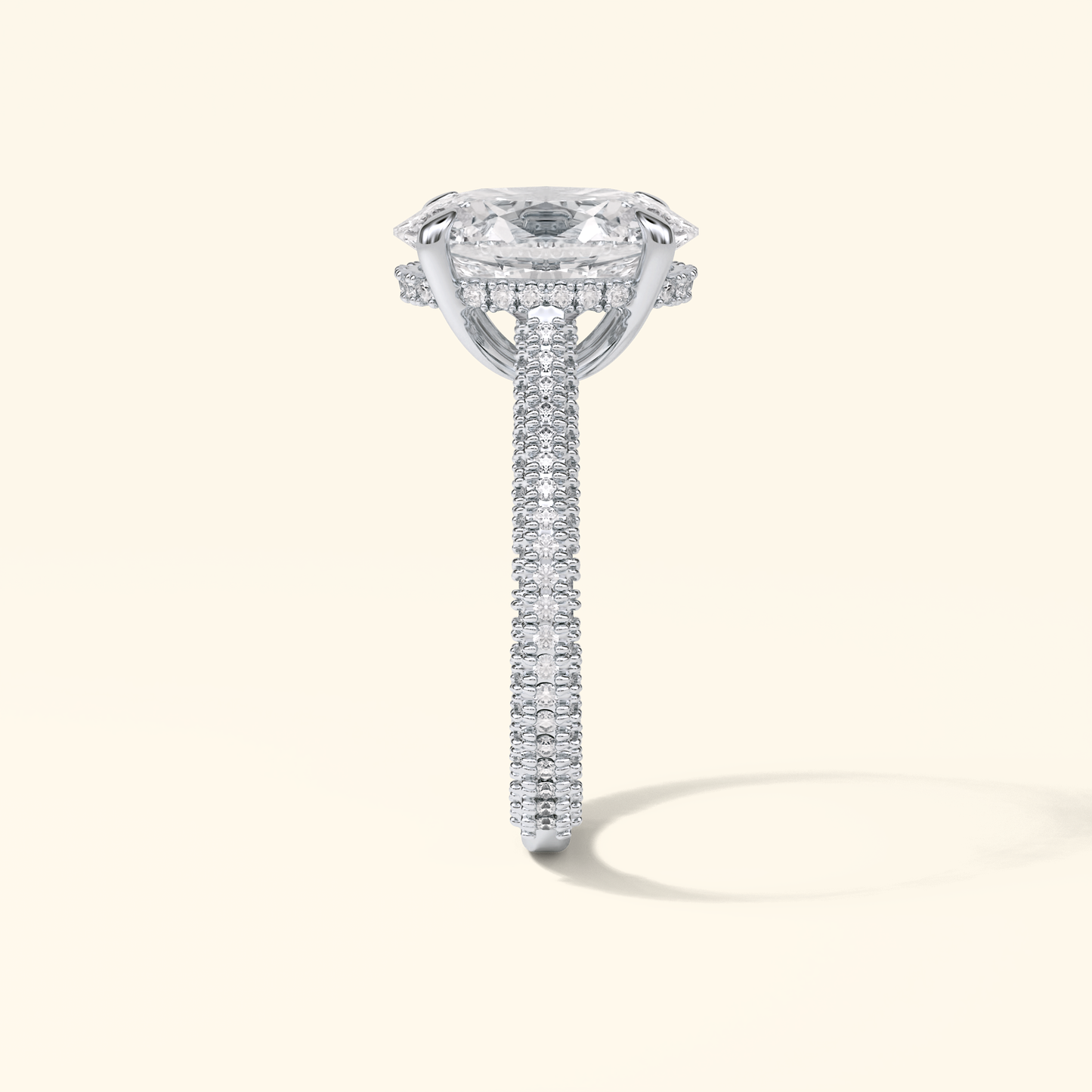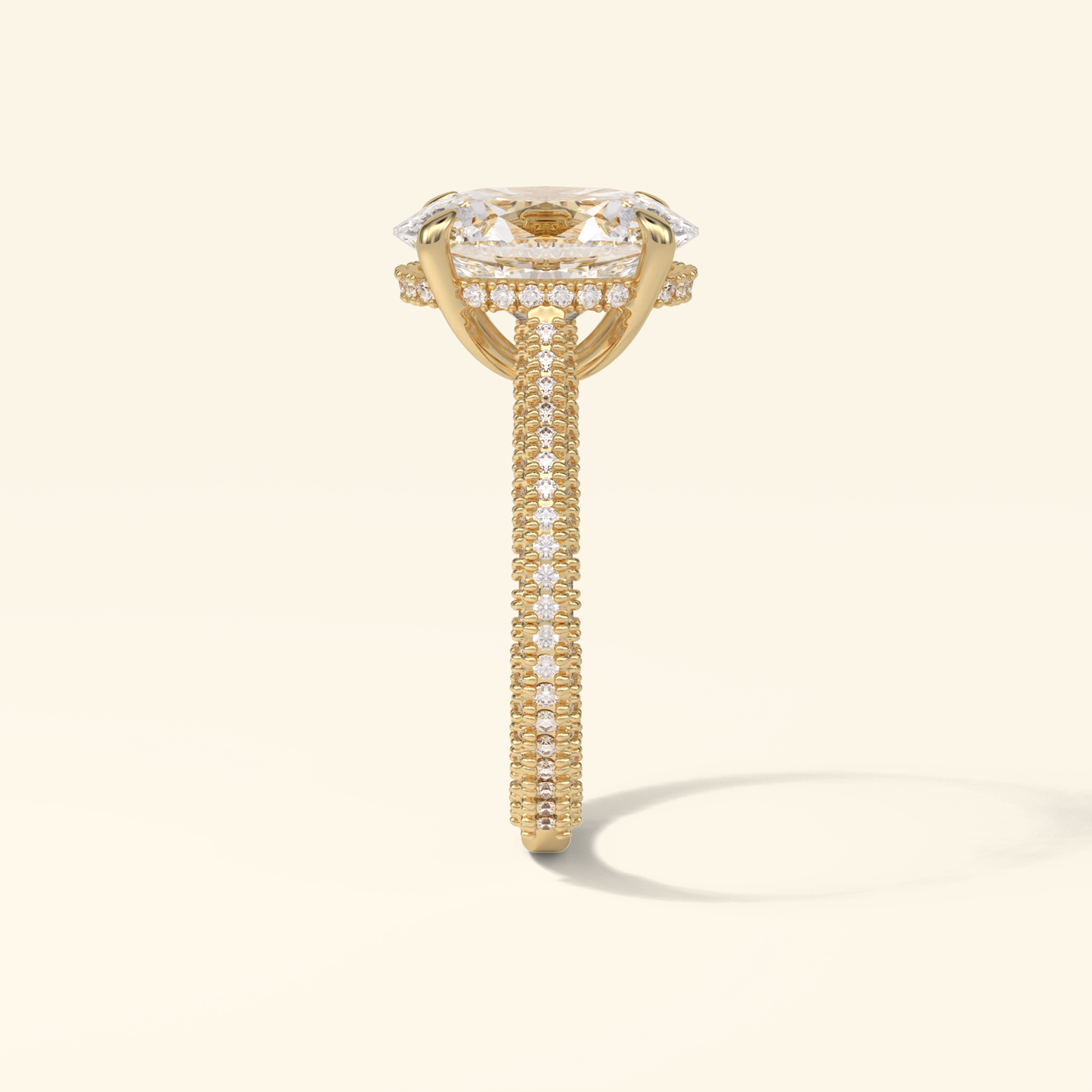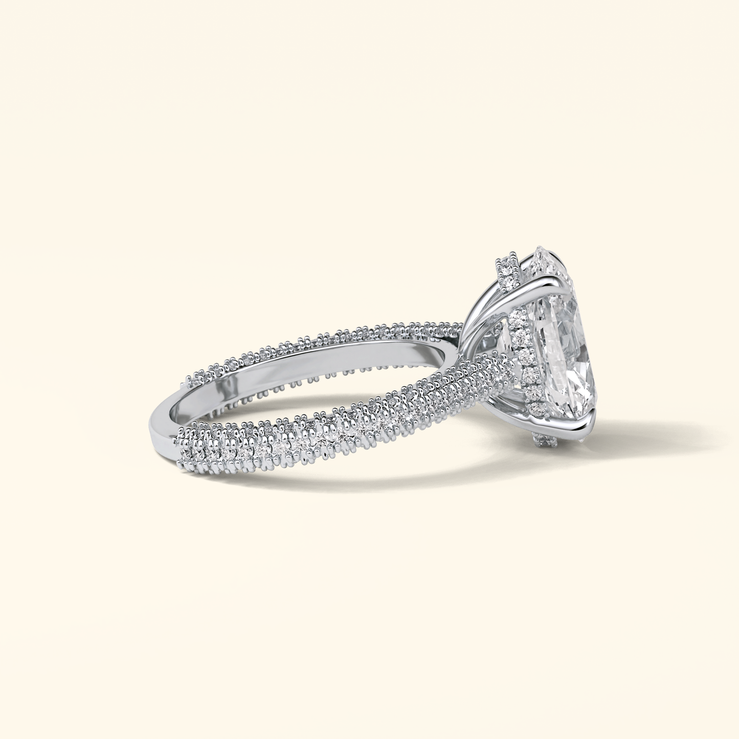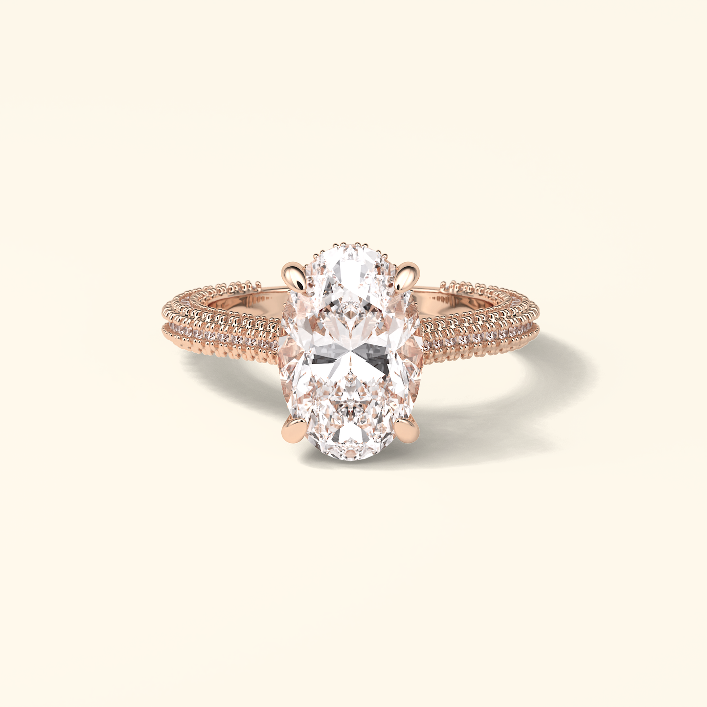 Oval Moissanite Hidden Halo Engagement Ring – 4 CT Center Stone with Pave Band in Solid Gold