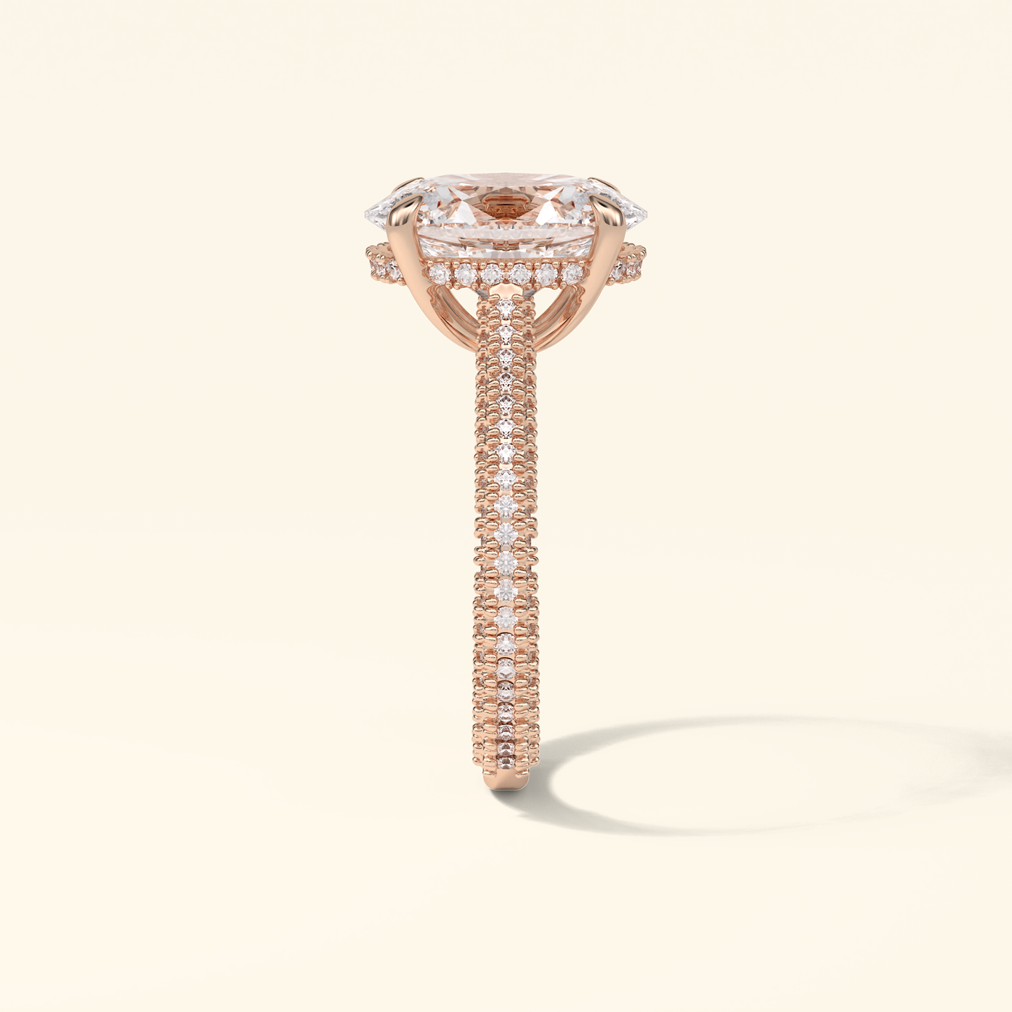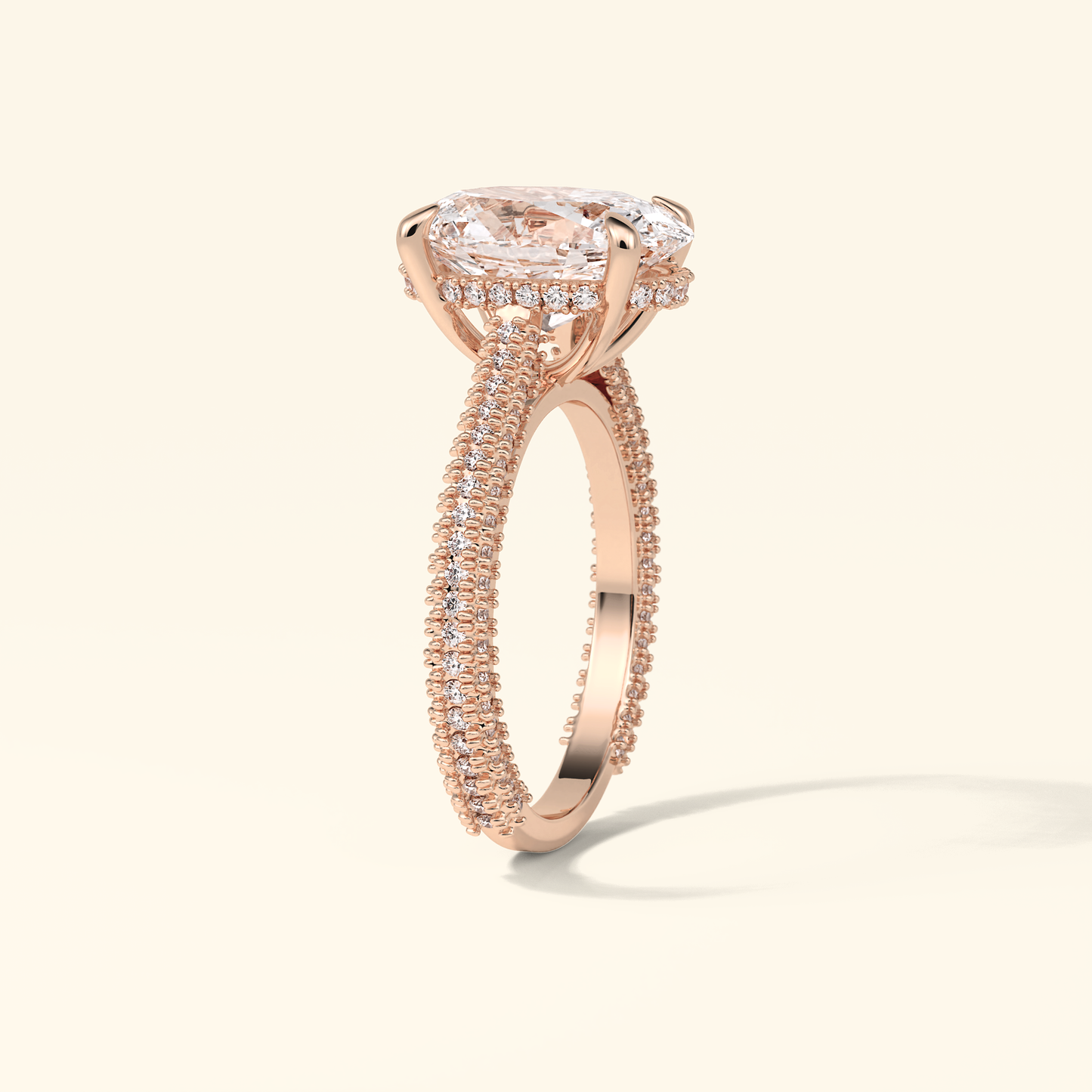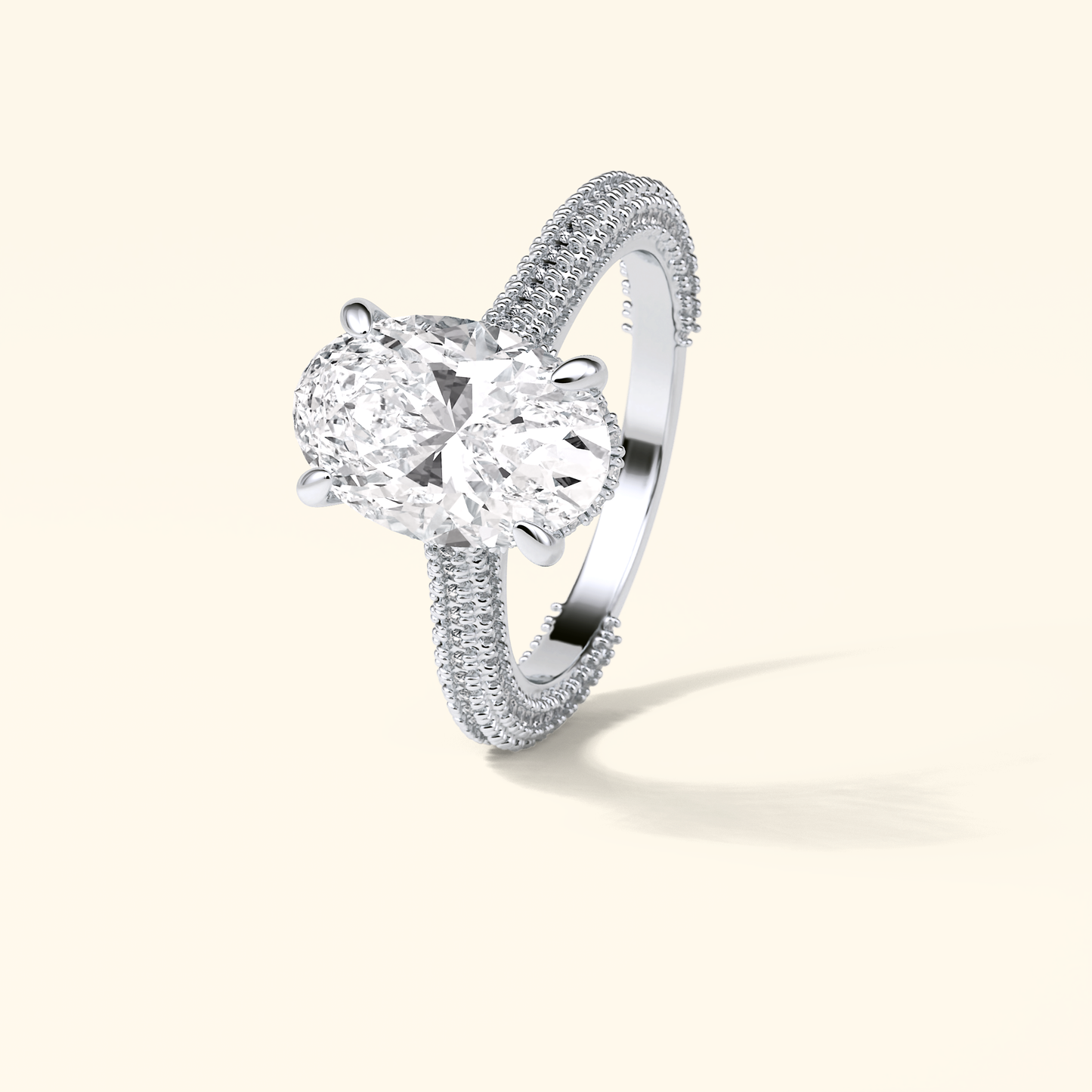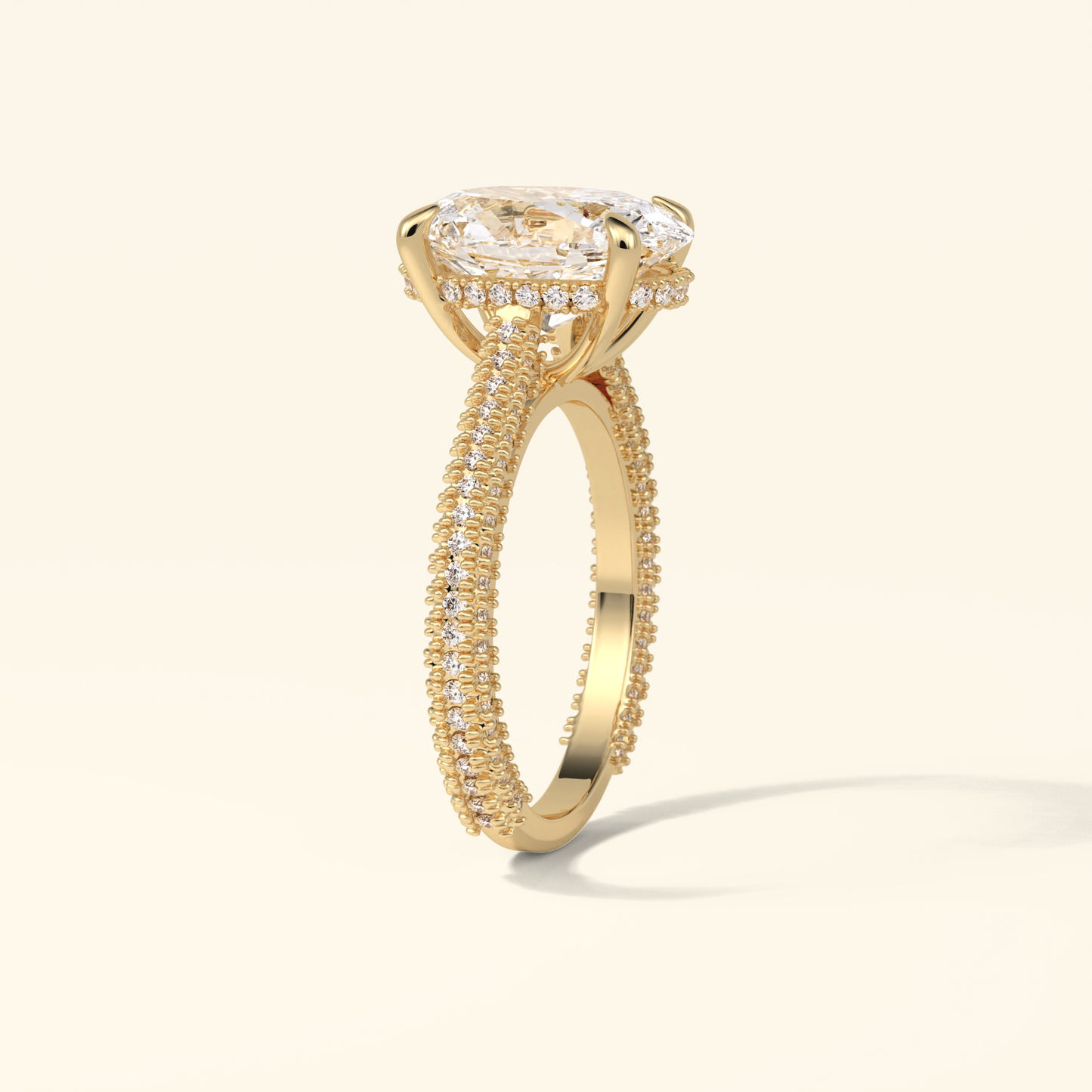 Oval Moissanite Hidden Halo Engagement Ring – 4 CT Center Stone with Pave Band in Solid Gold