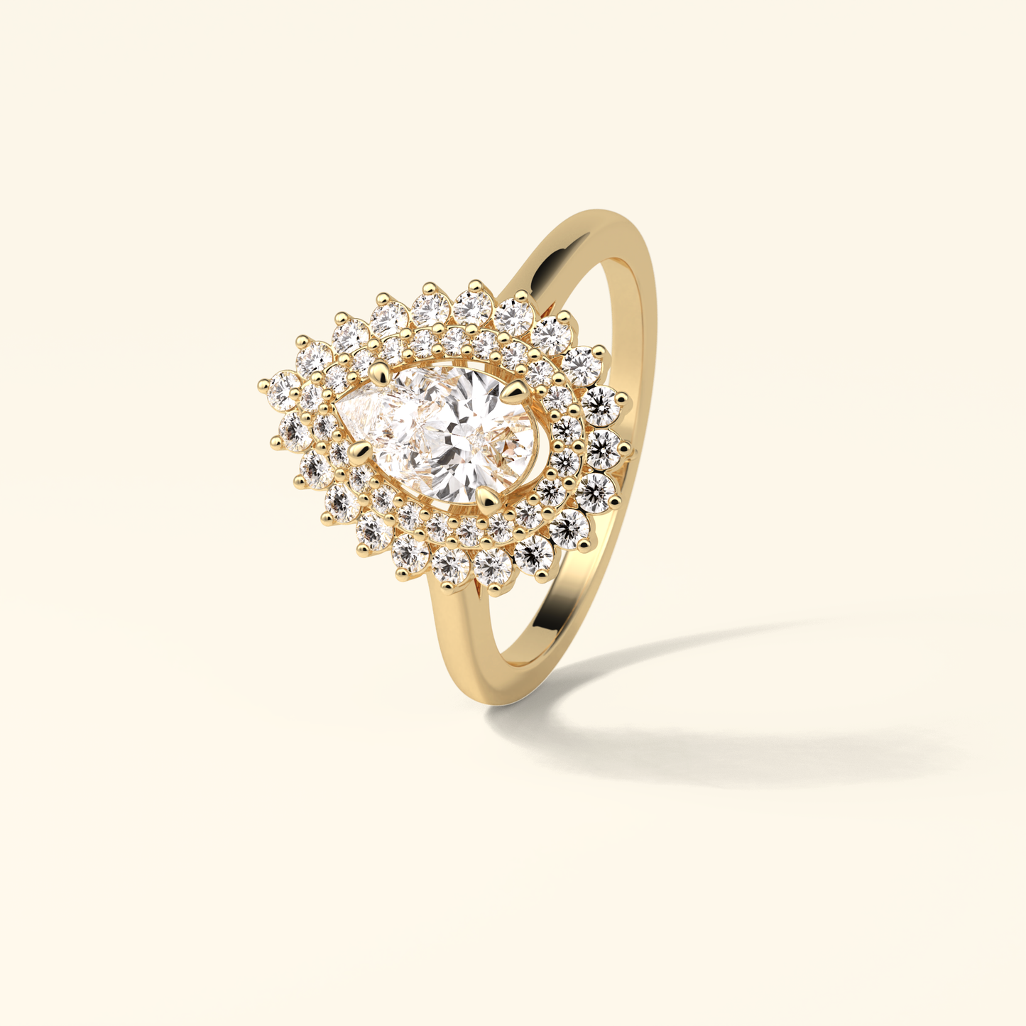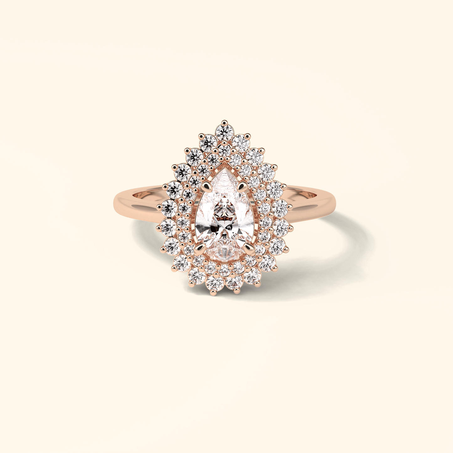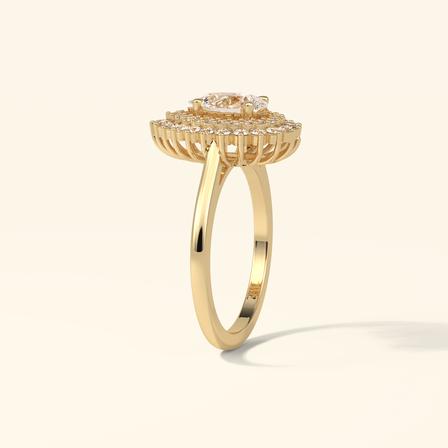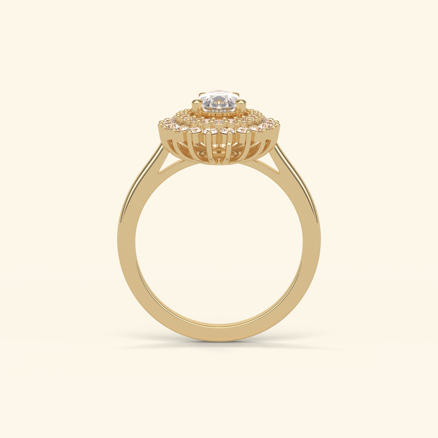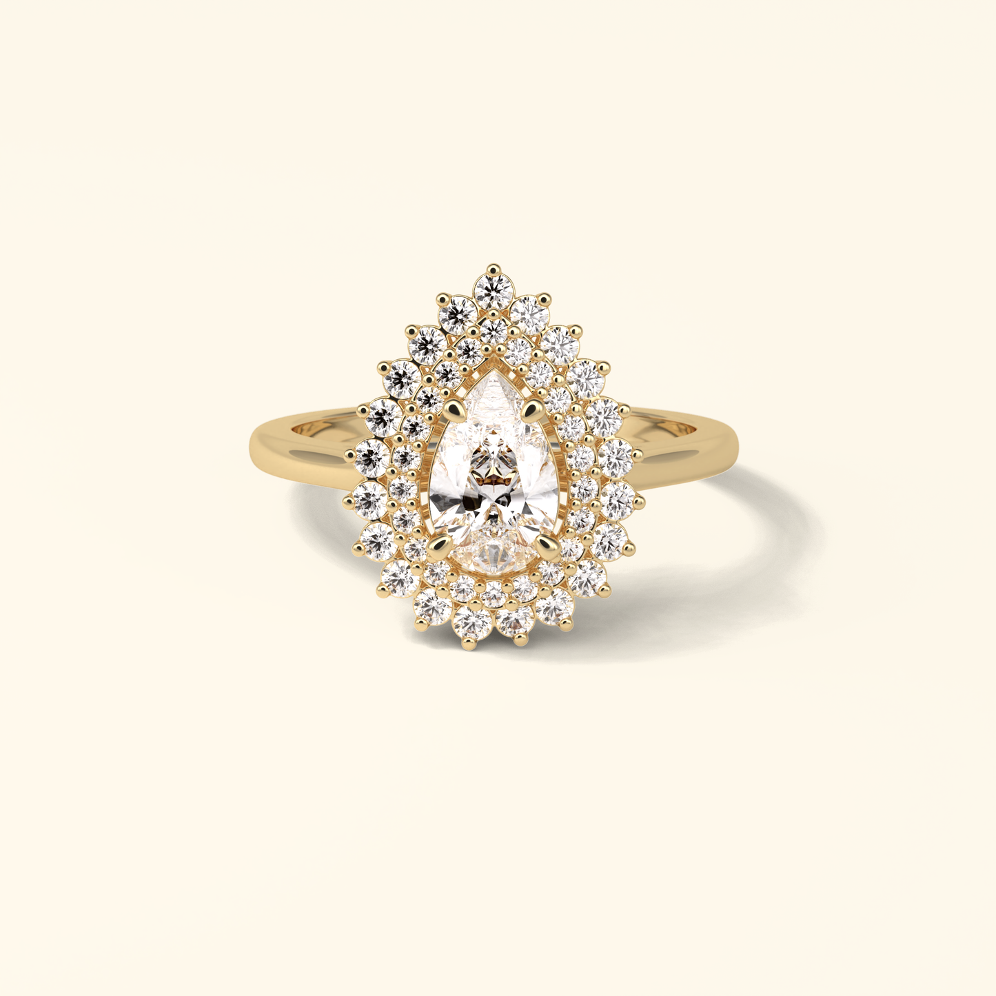 Pear Moissanite Double Halo Engagement Ring – 0.94 CT Center Stone in Solid Gold