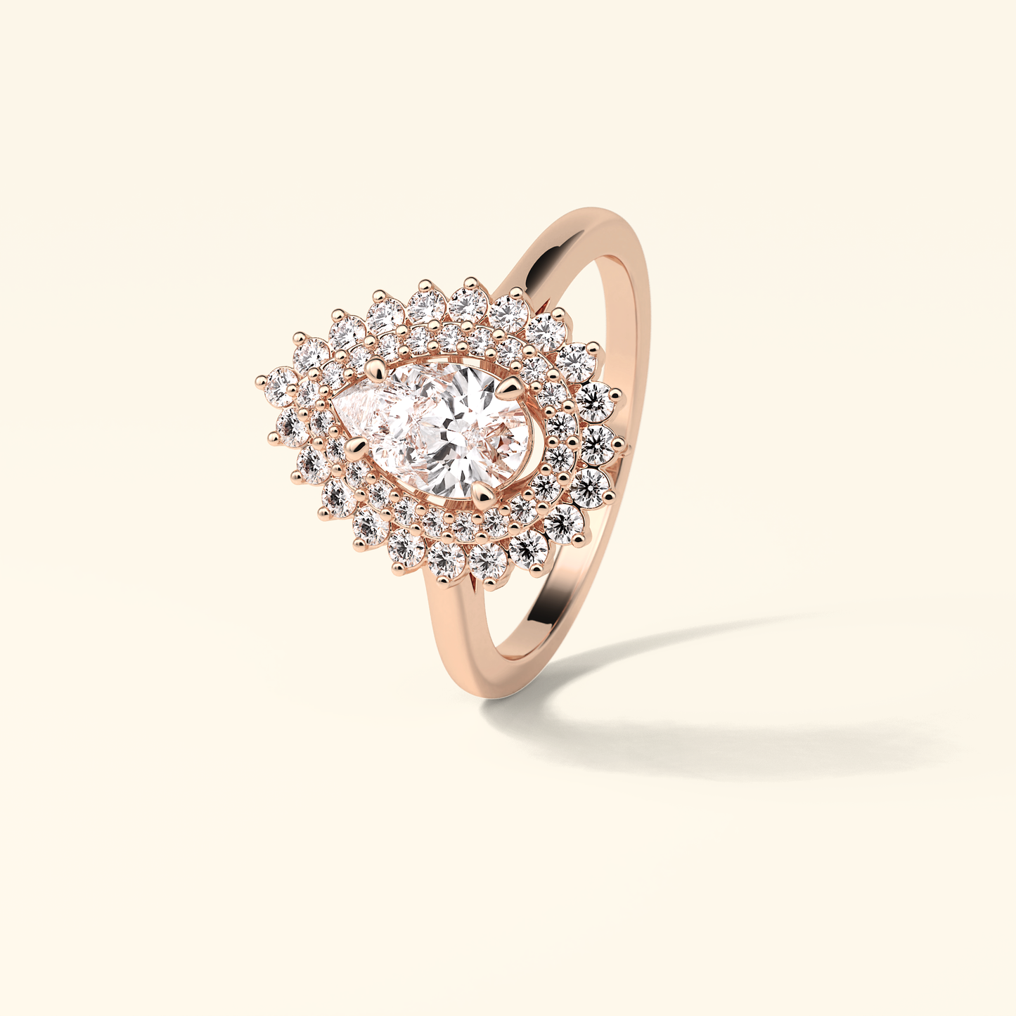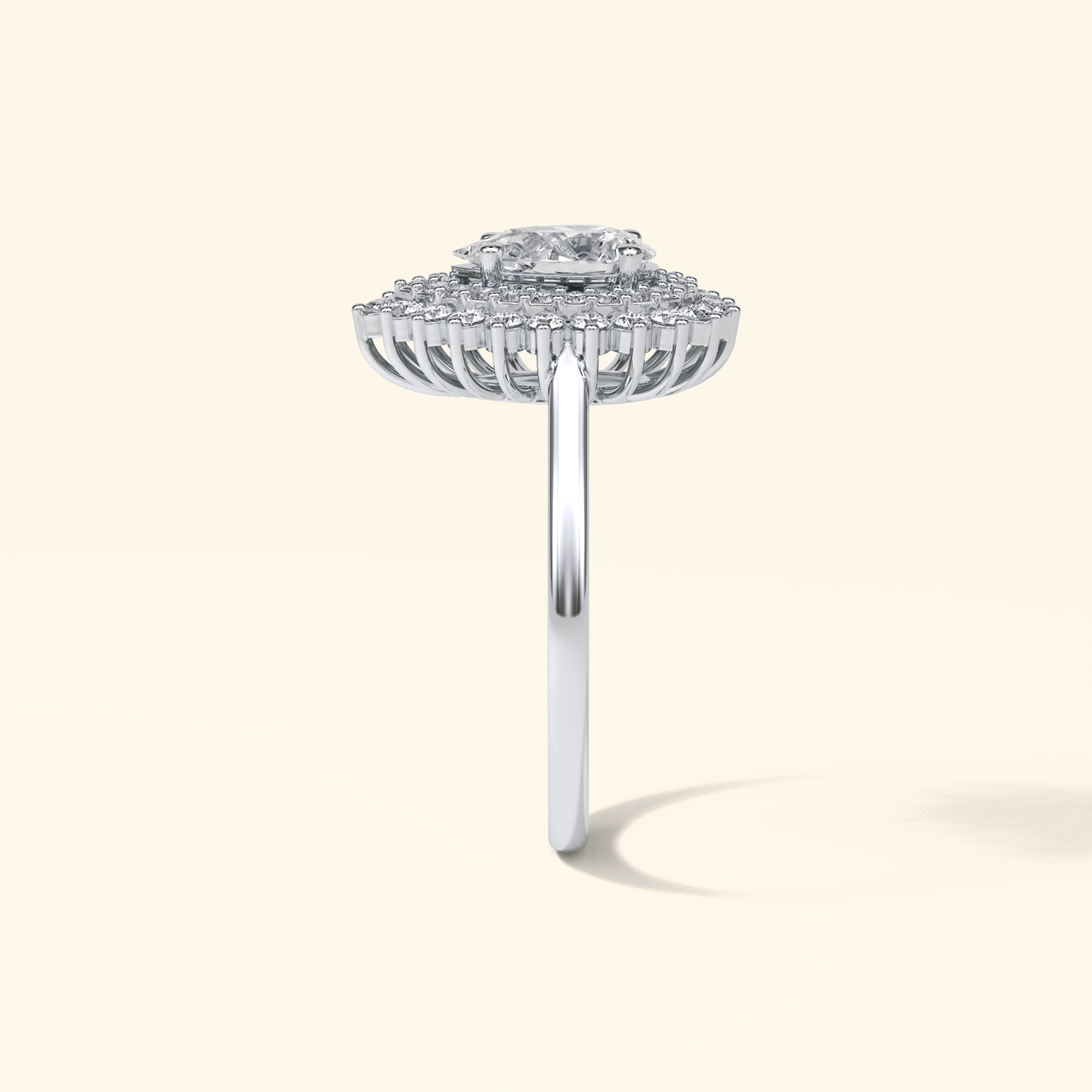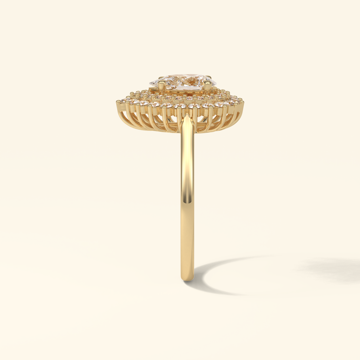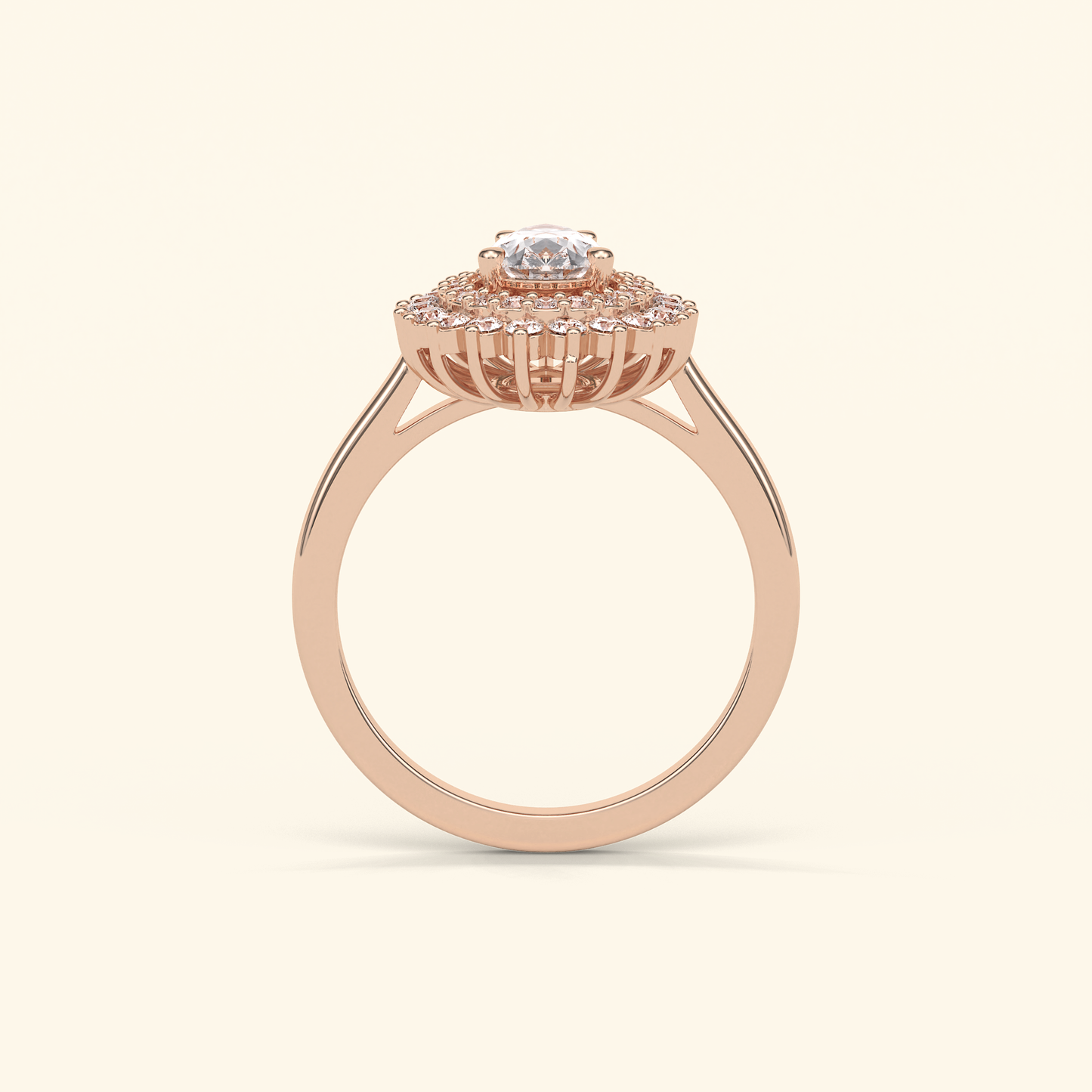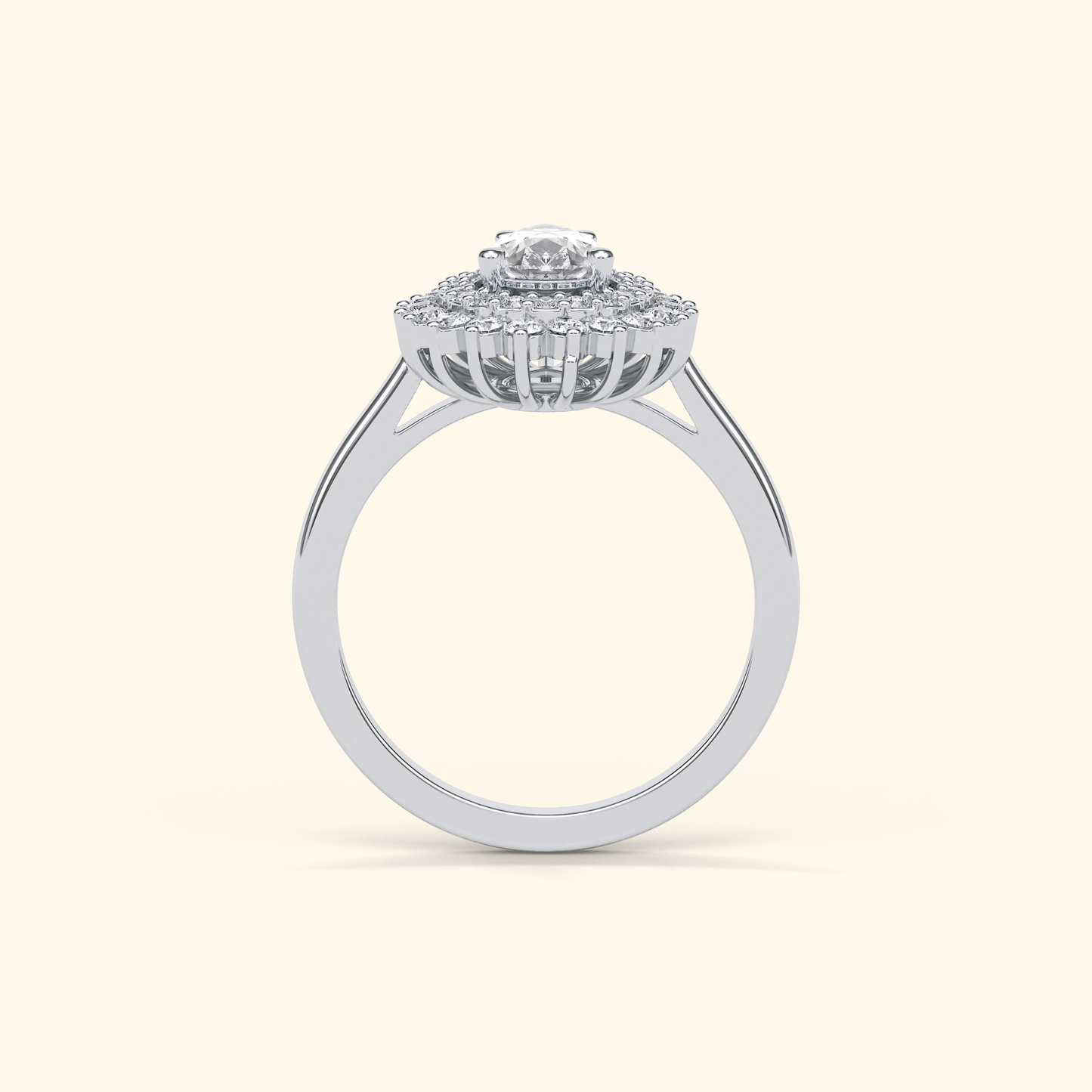 Pear Moissanite Double Halo Engagement Ring – 0.94 CT Center Stone in Solid Gold