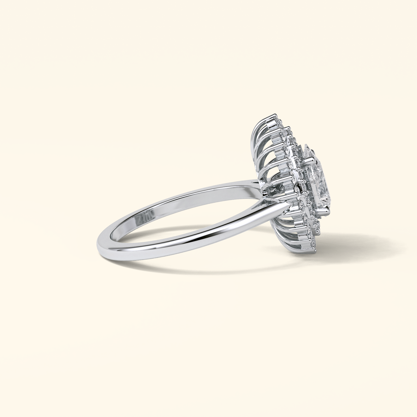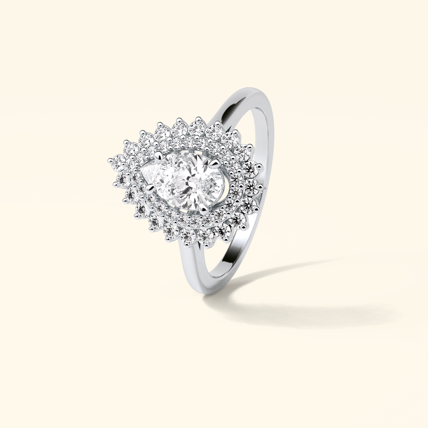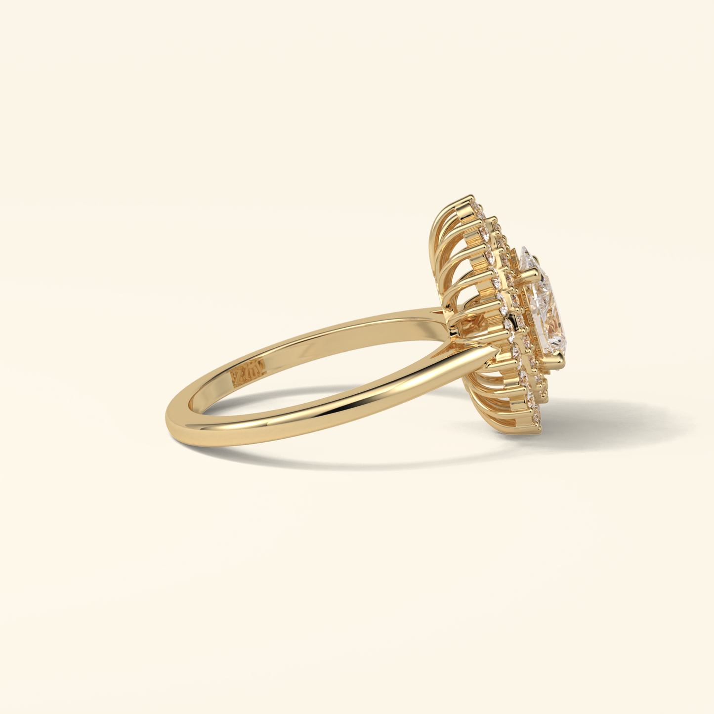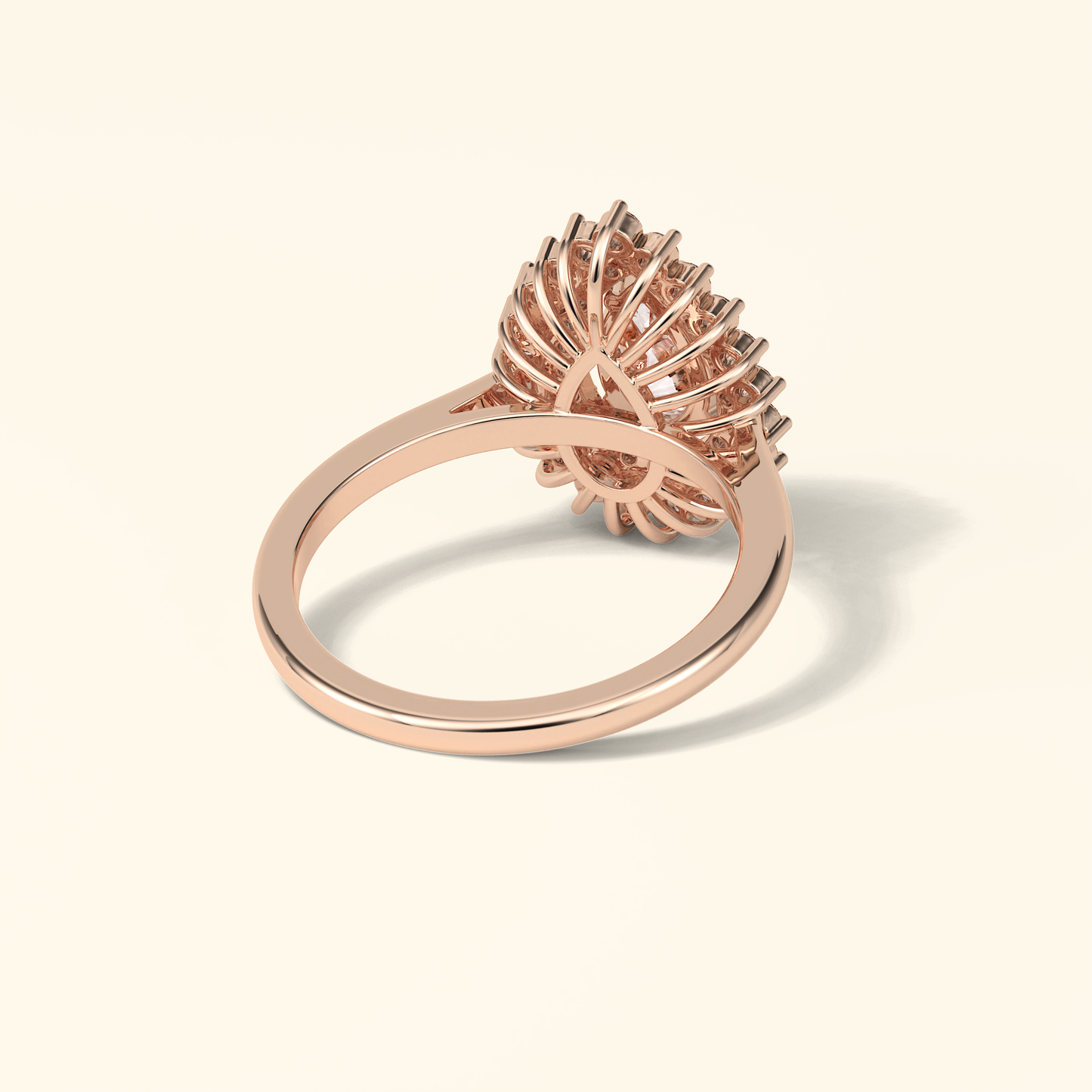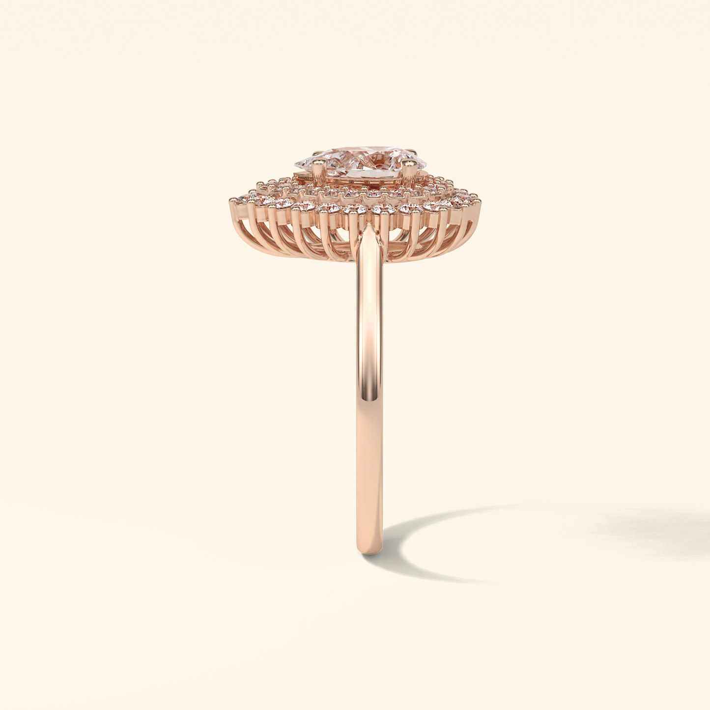 Pear Moissanite Double Halo Engagement Ring – 0.94 CT Center Stone in Solid Gold