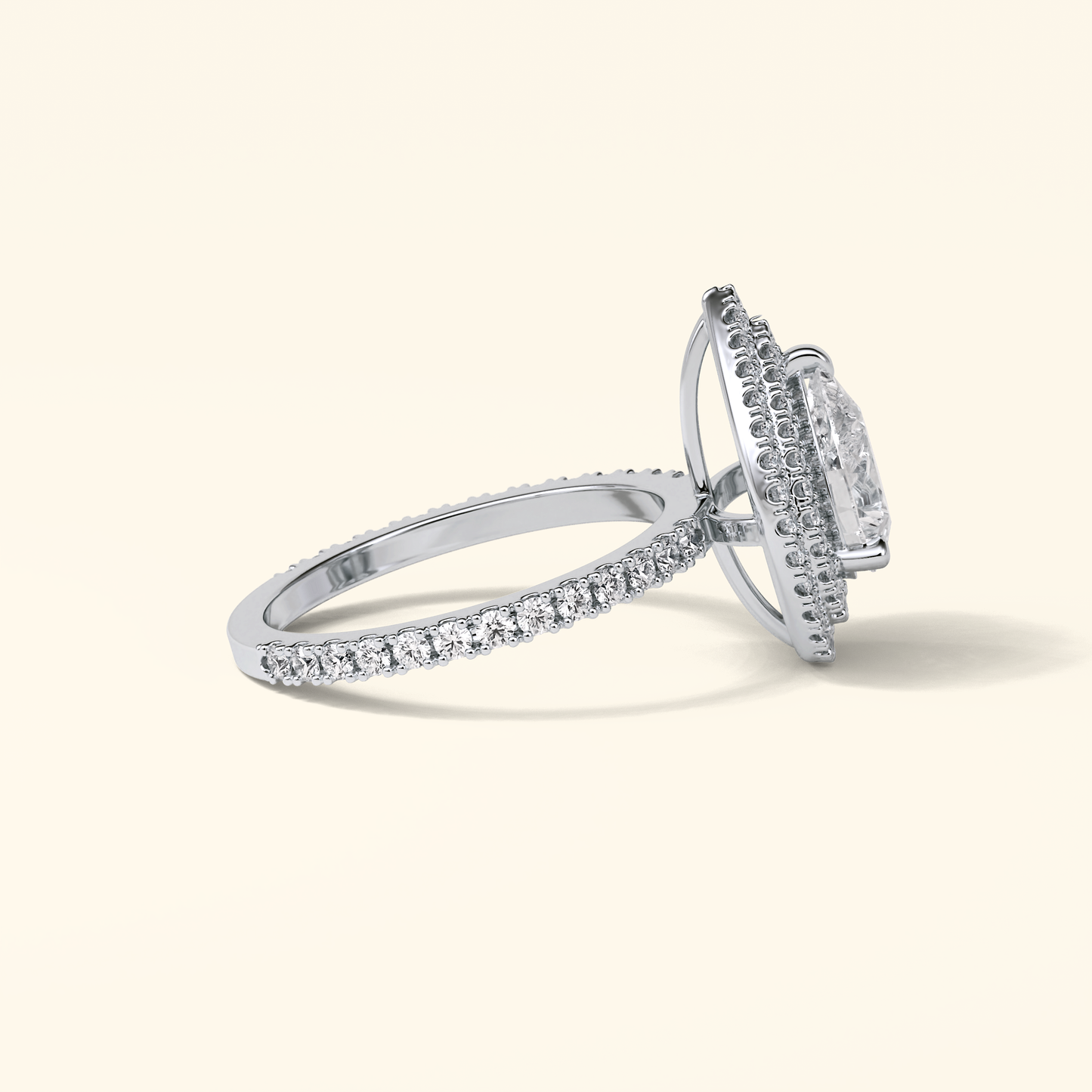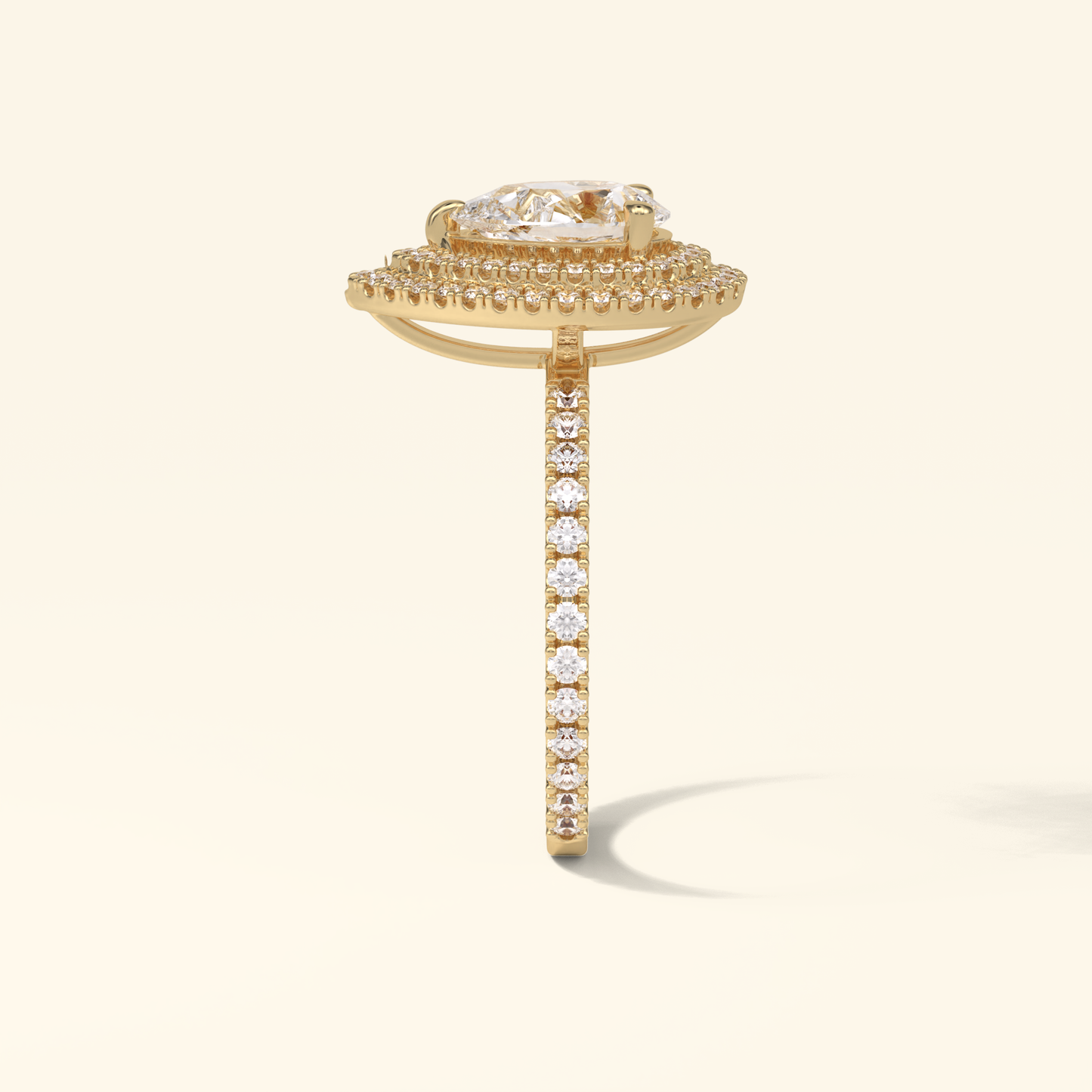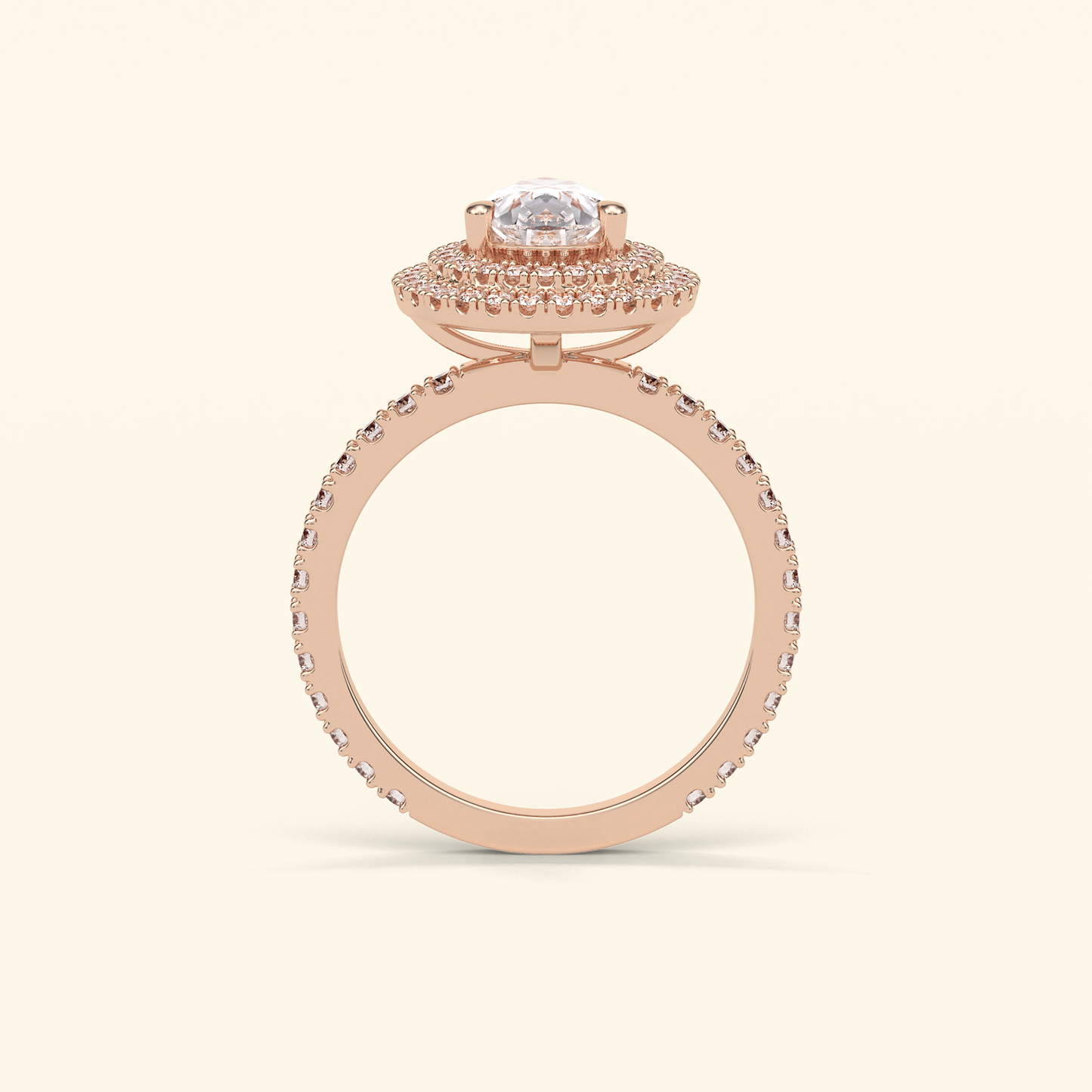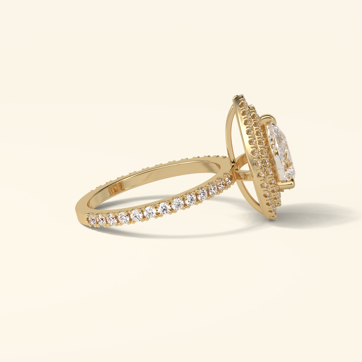Pear Moissanite Double Halo Engagement Ring – 1.33 CT Center Stone with Pave Band in Solid Gold