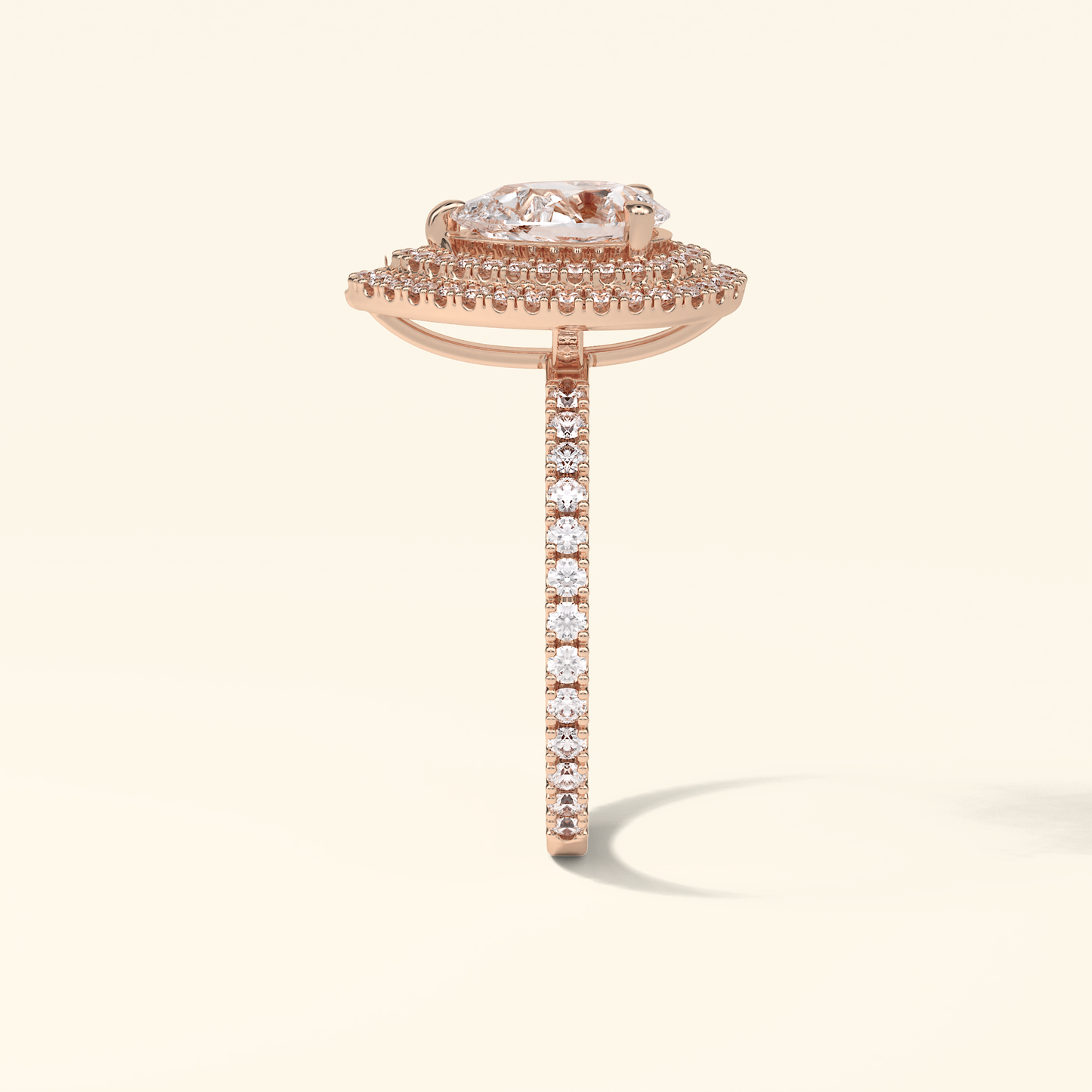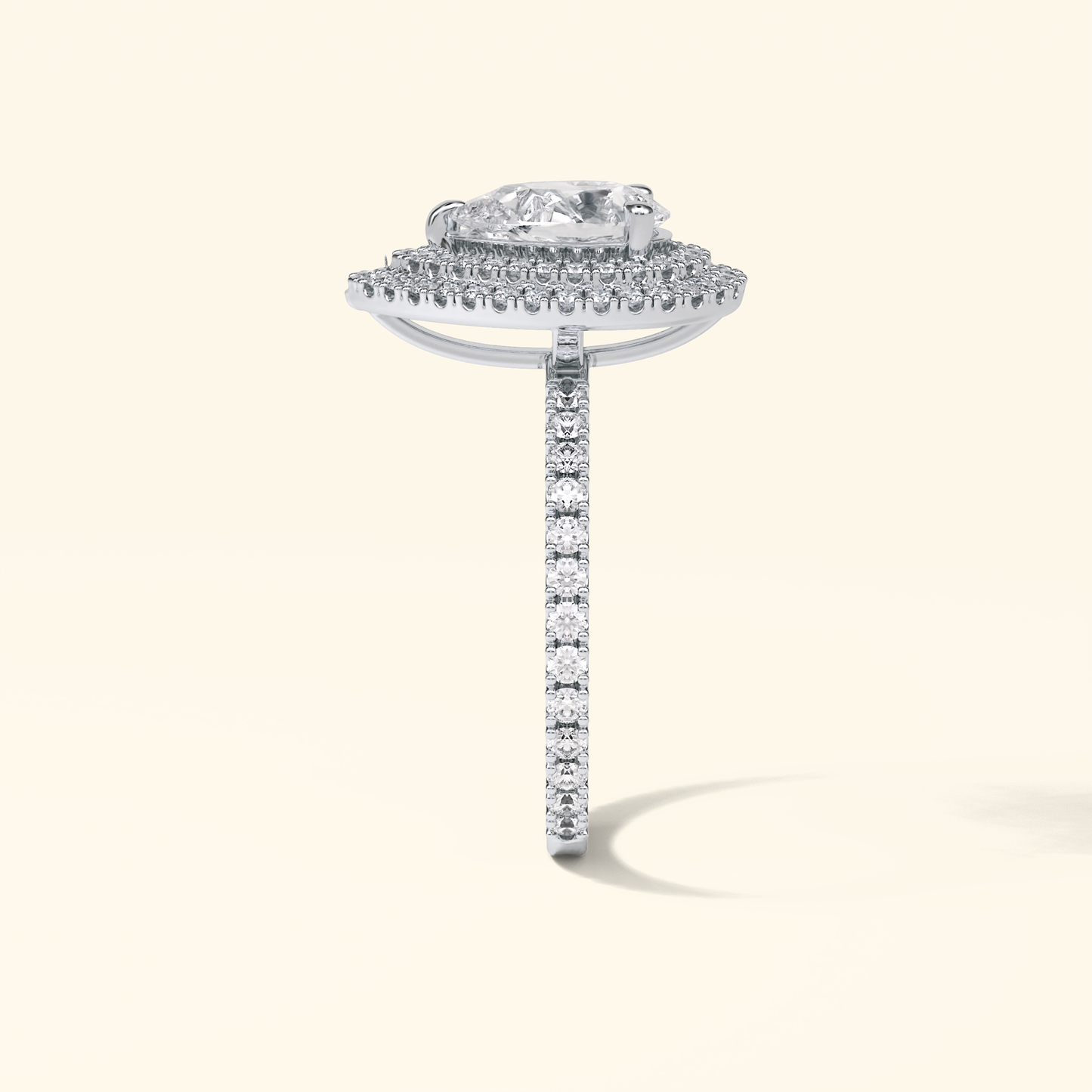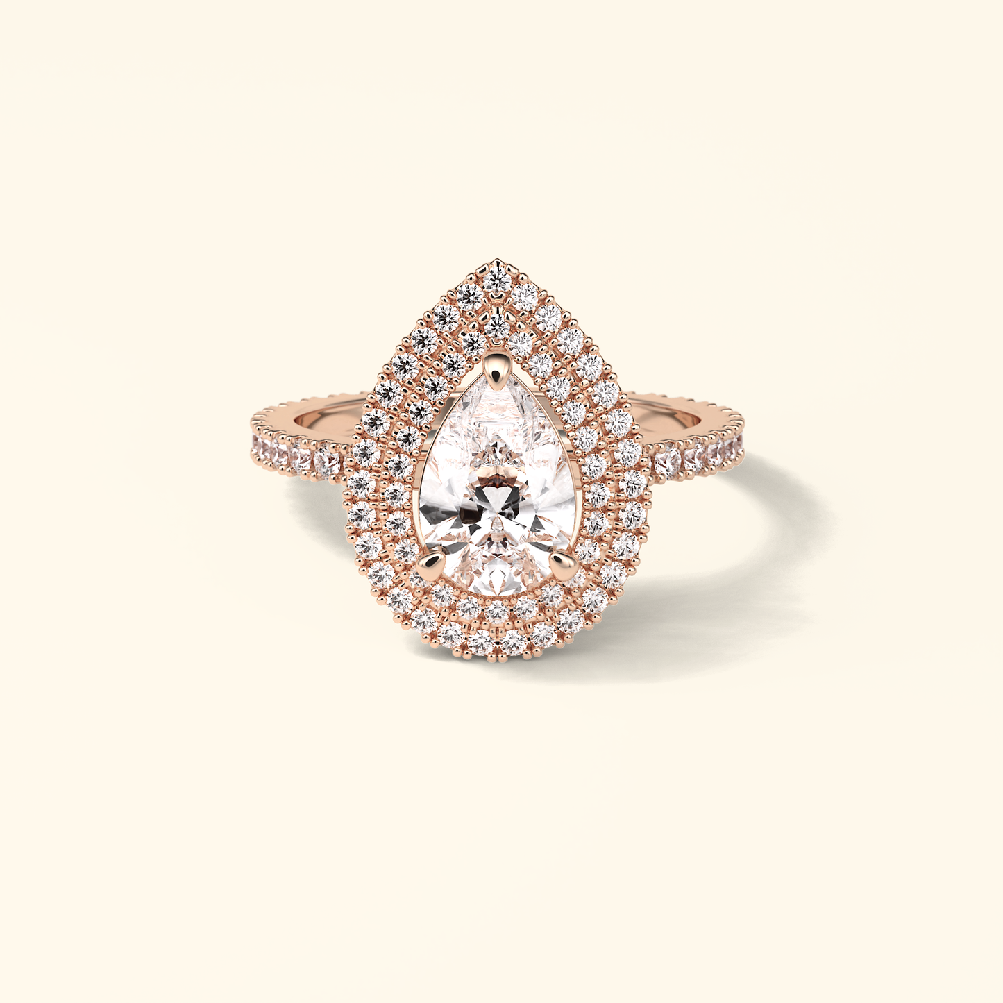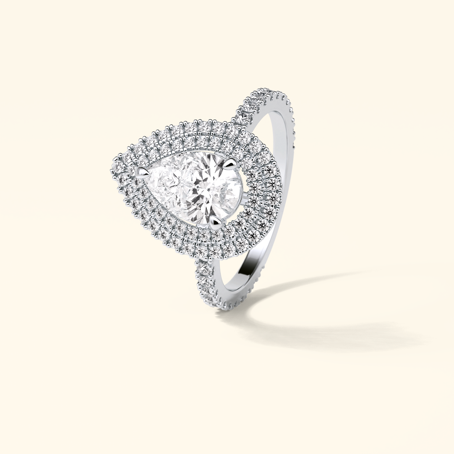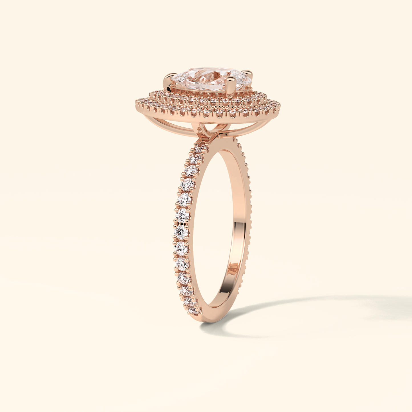 Pear Moissanite Double Halo Engagement Ring – 1.33 CT Center Stone with Pave Band in Solid Gold