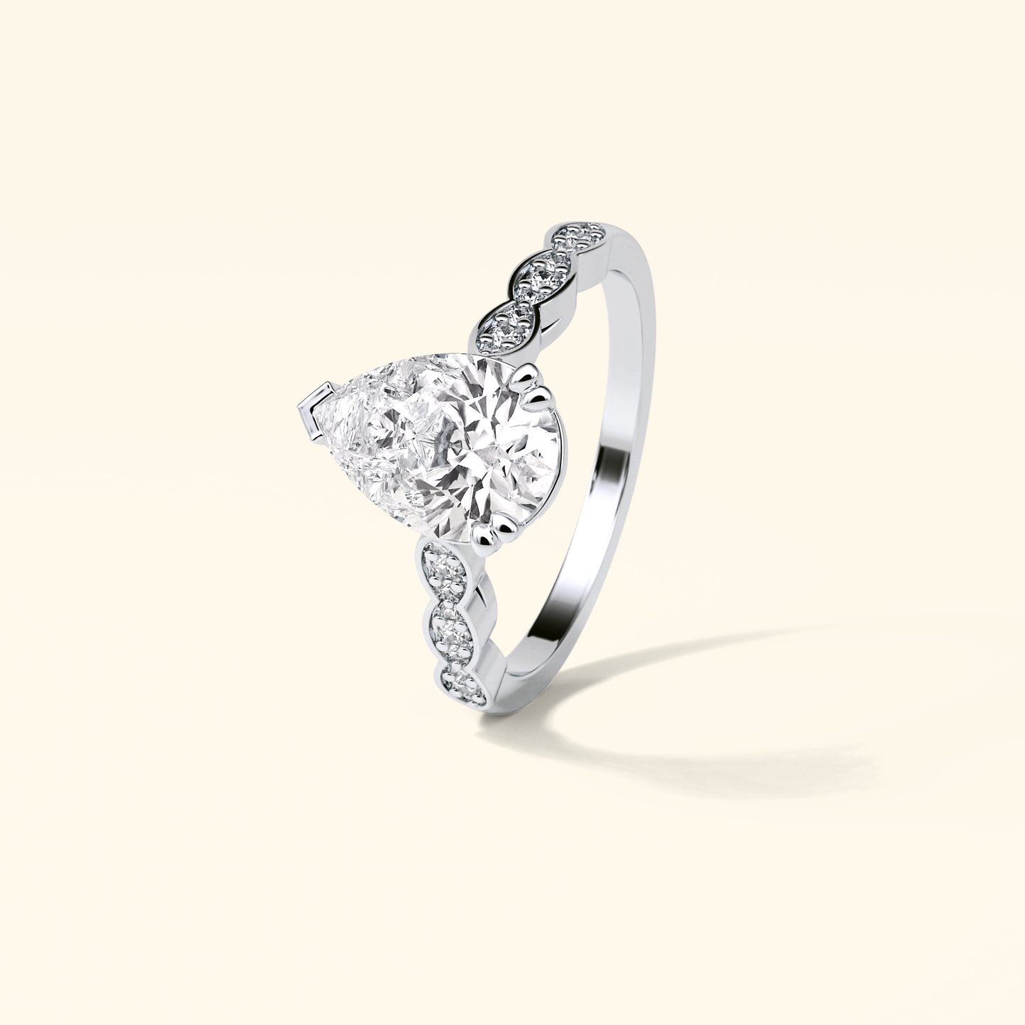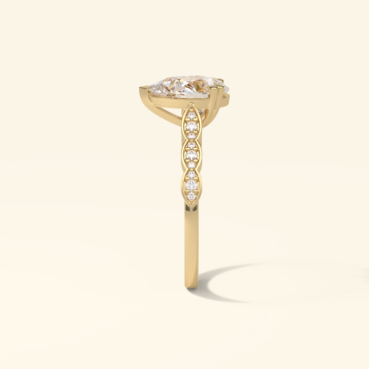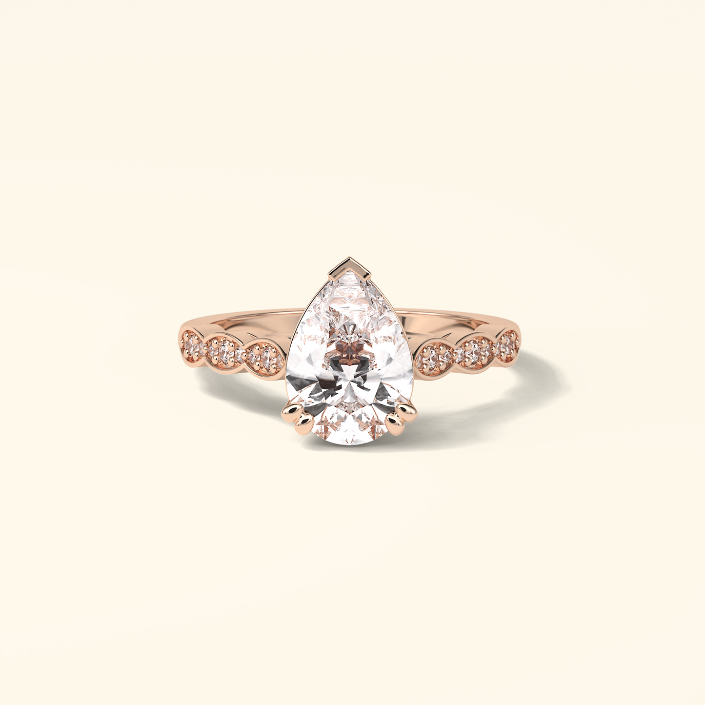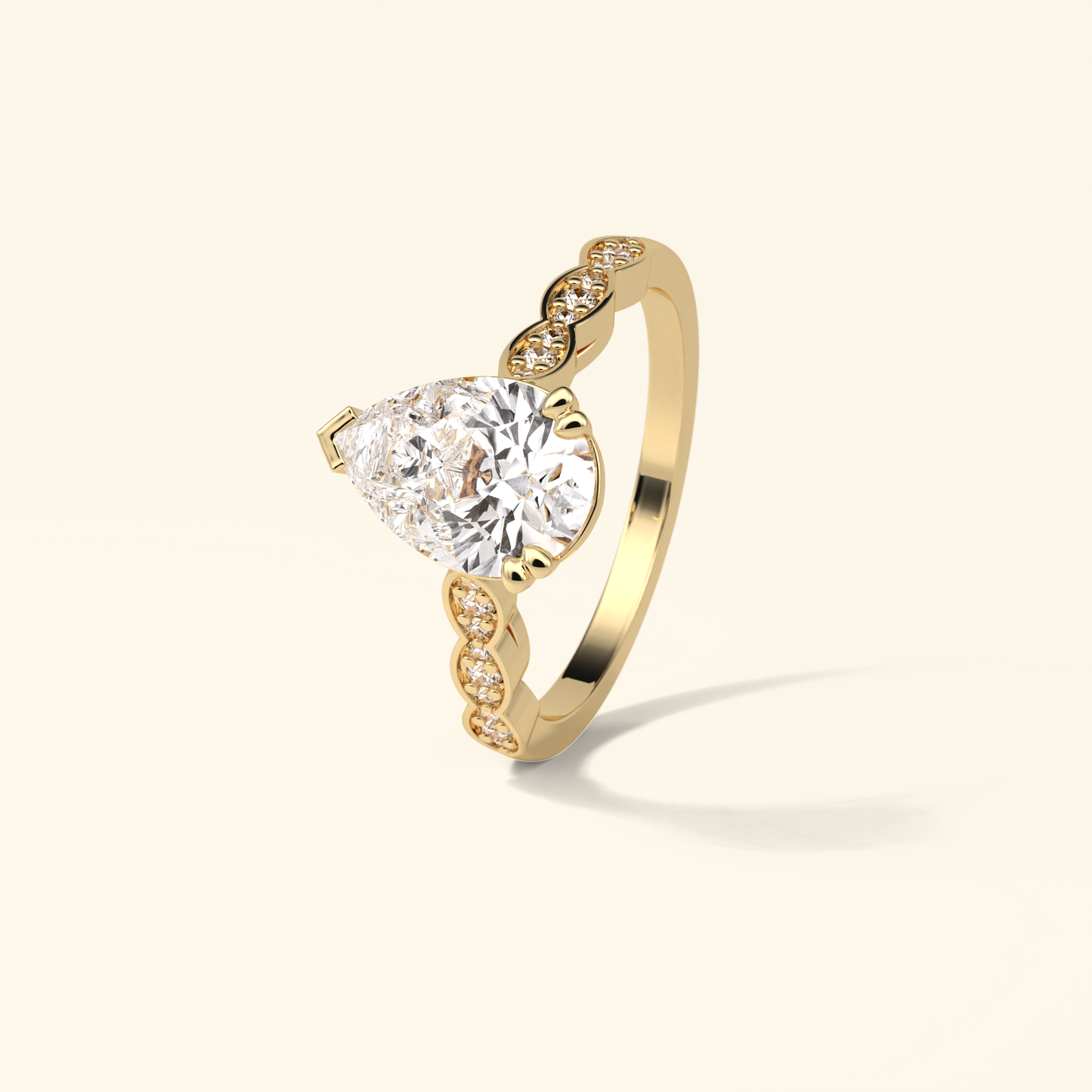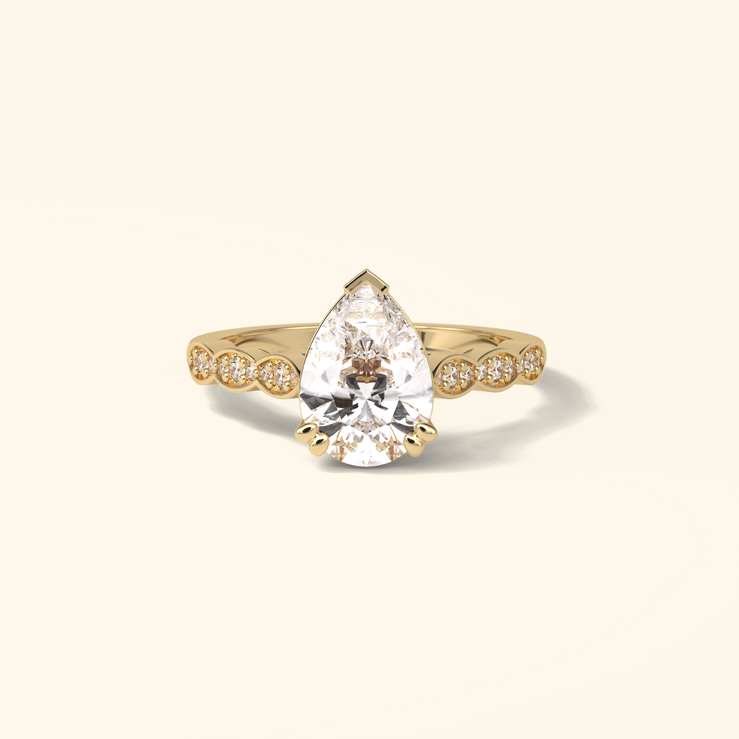 Pear Moissanite Engagement Ring – 1.93 CT Center Stone with Pave Band in Solid Gold