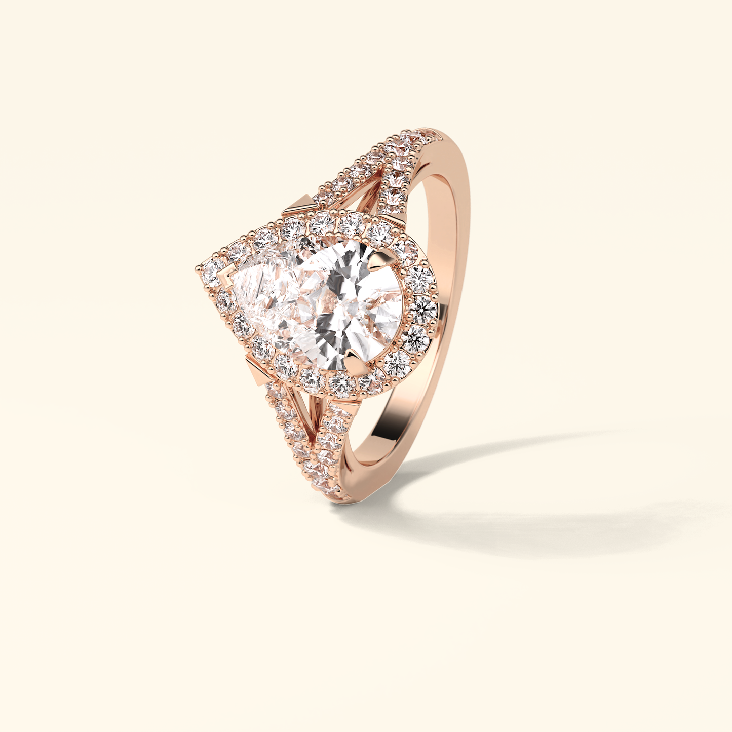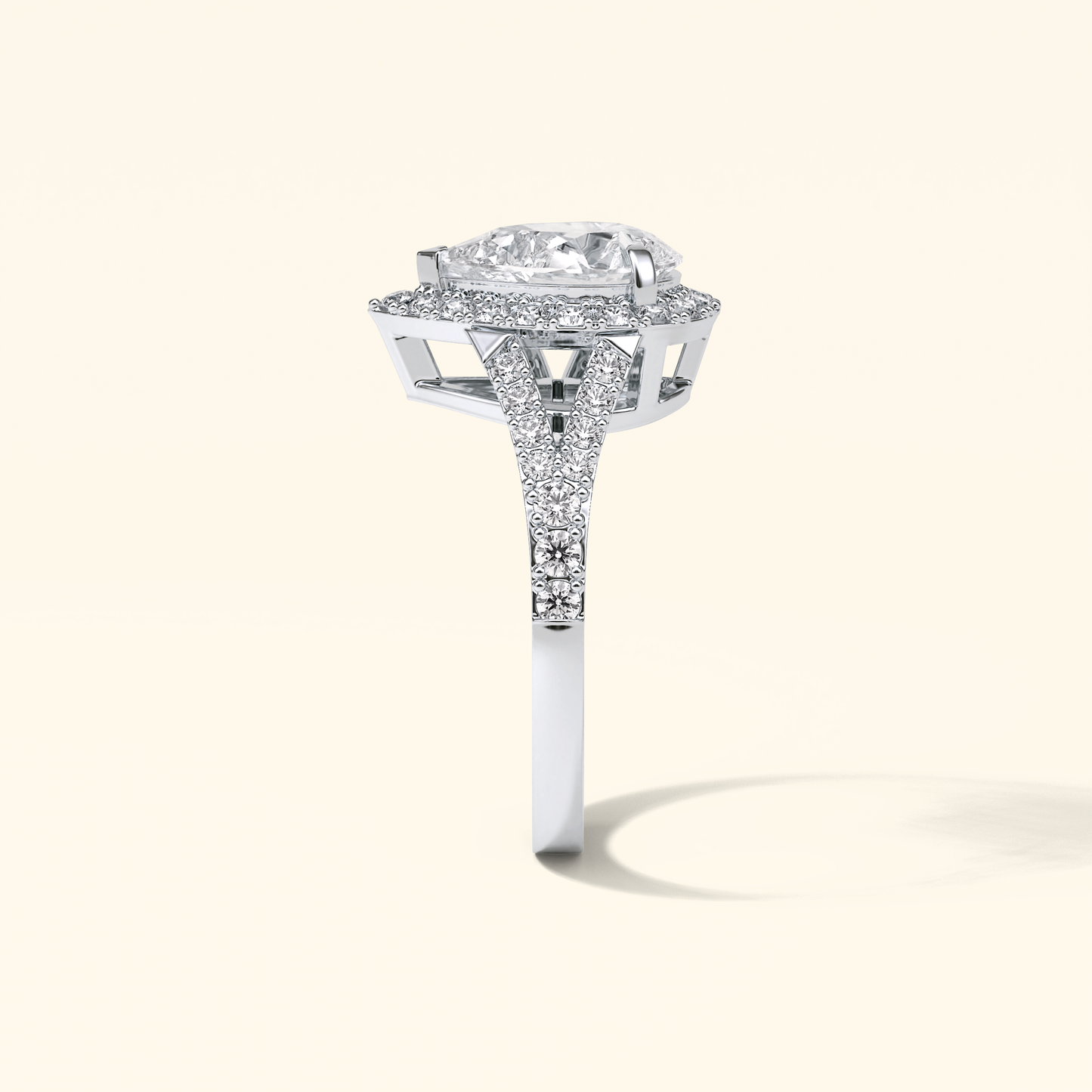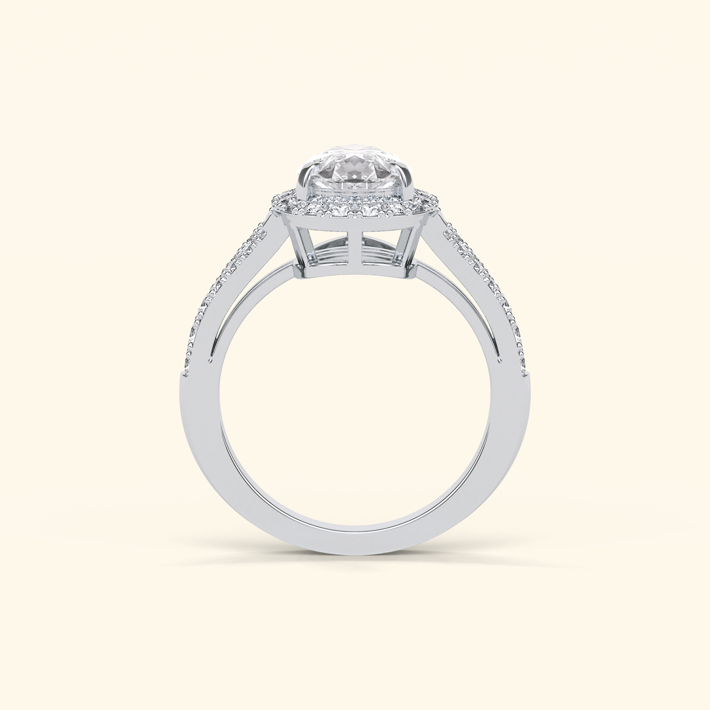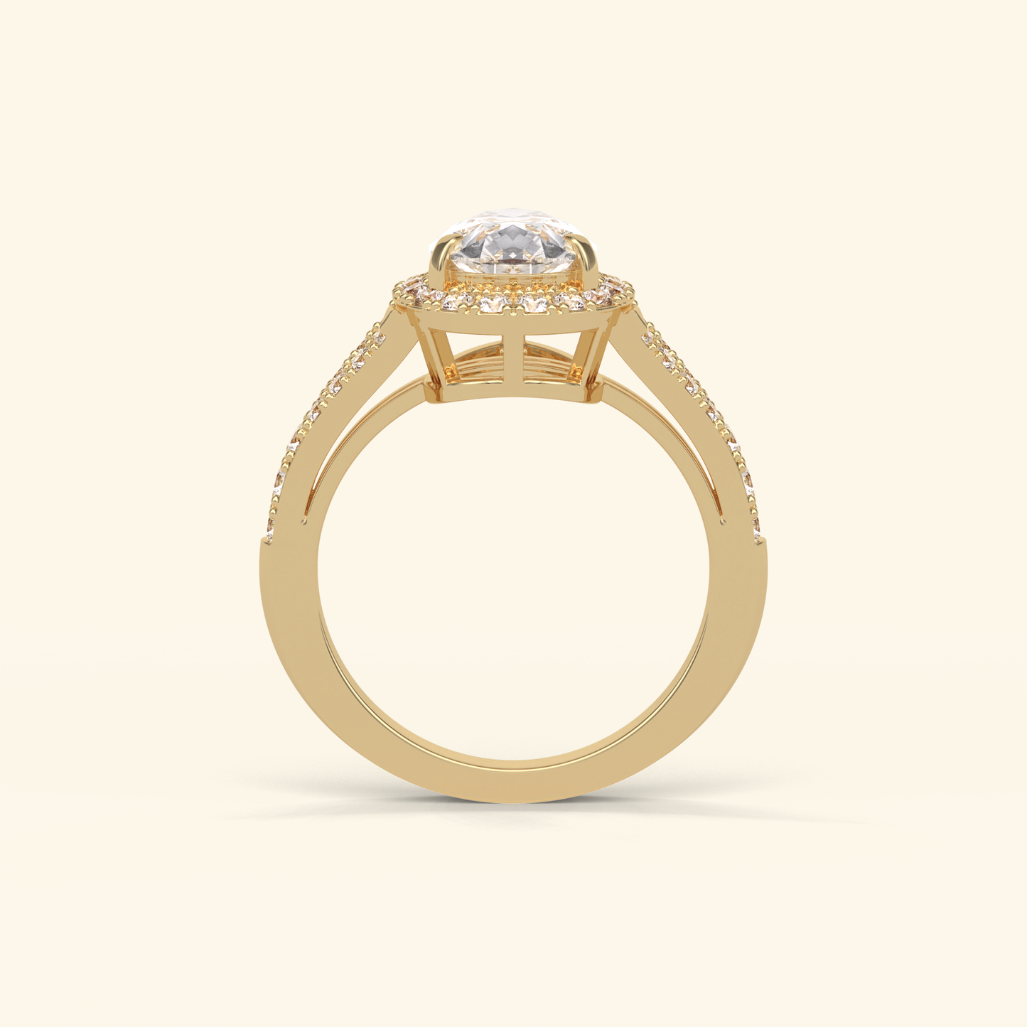 Pear Moissanite Halo Engagement Ring – 3.1 CT Center Stone with Split Shank Band in Solid Gold