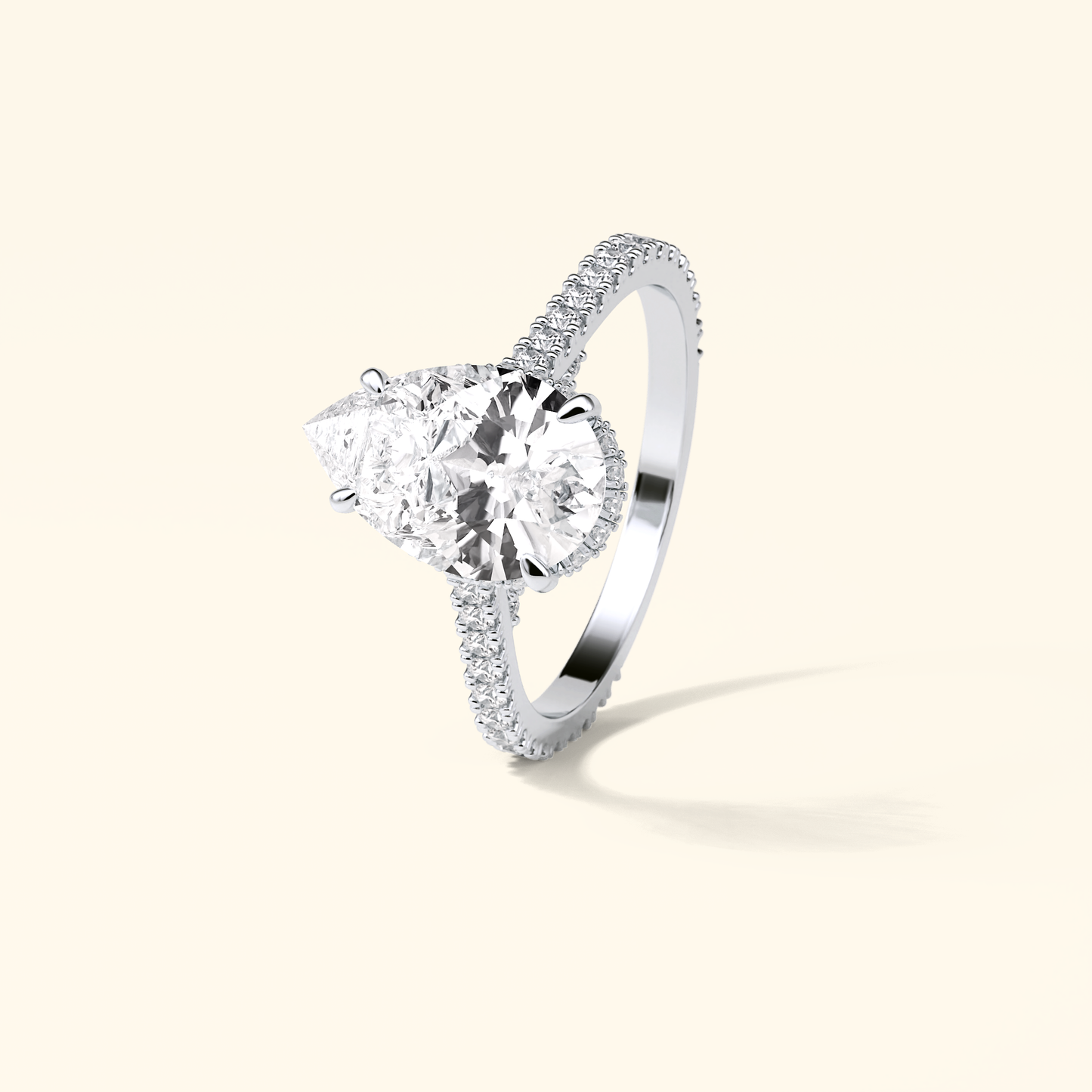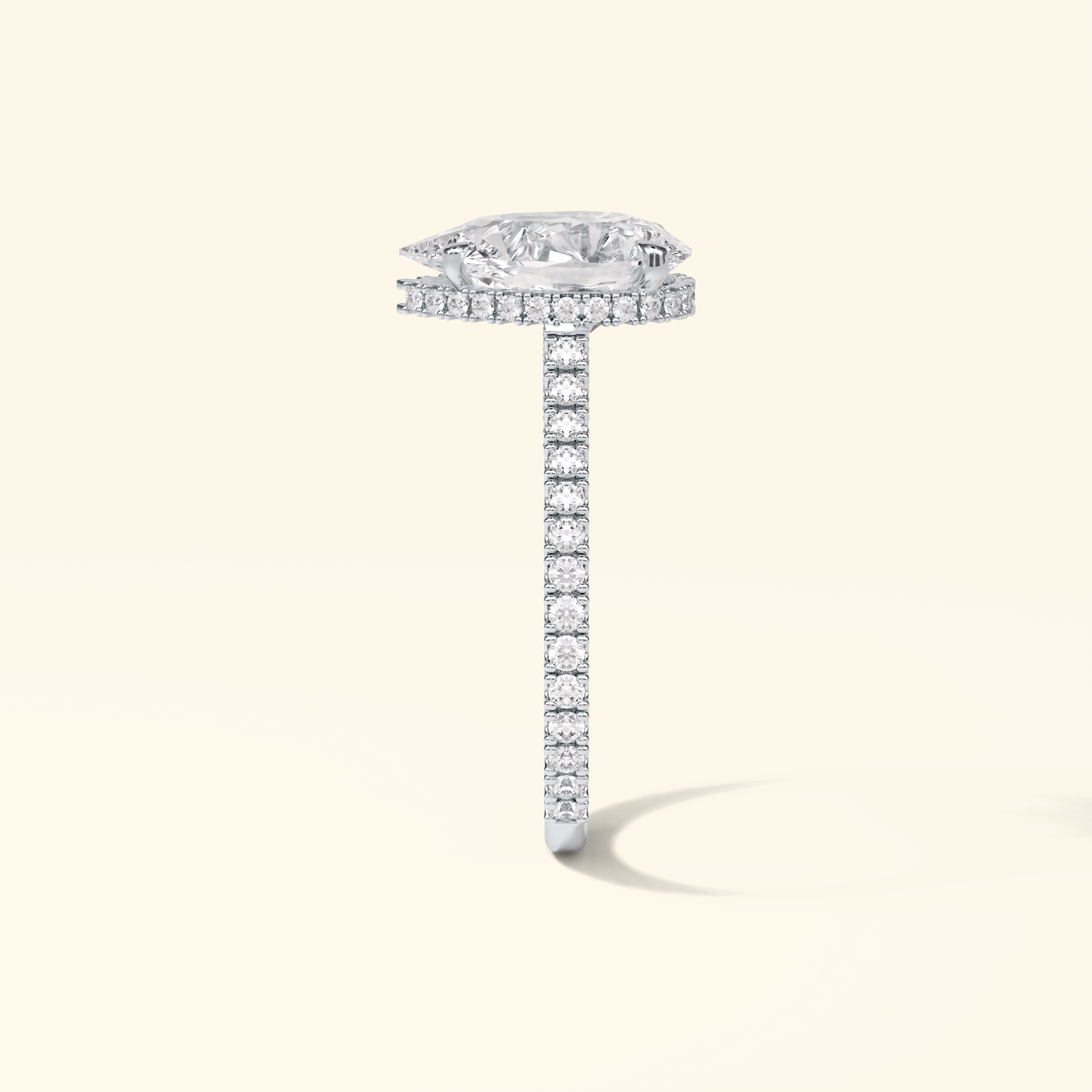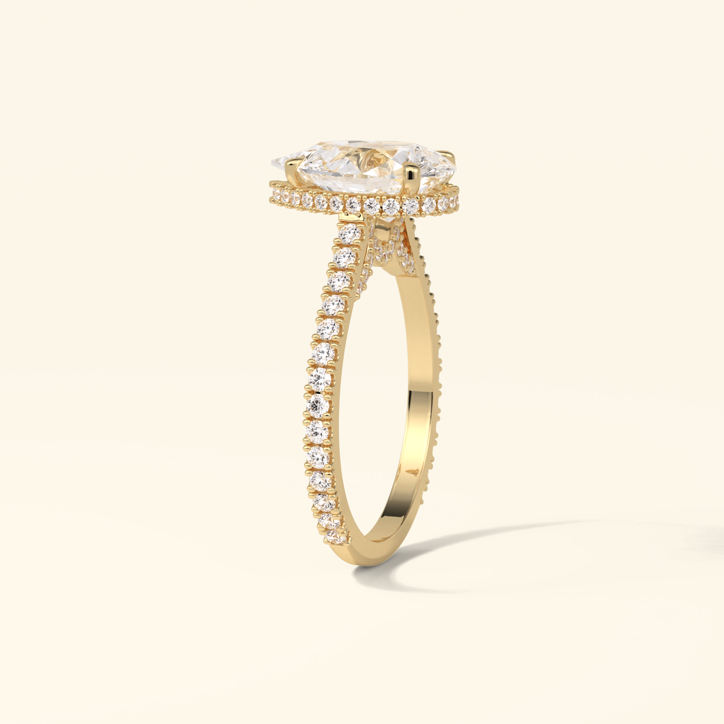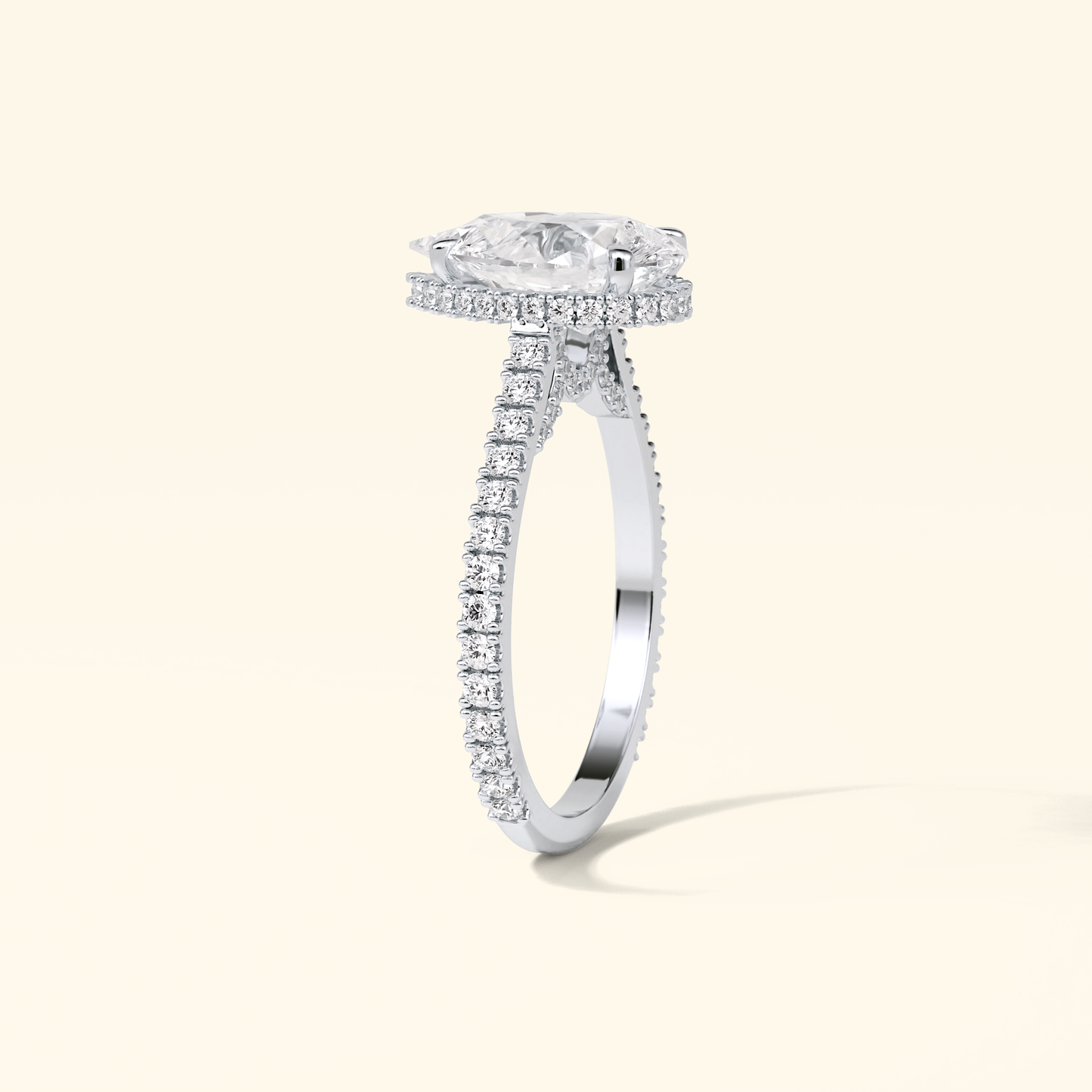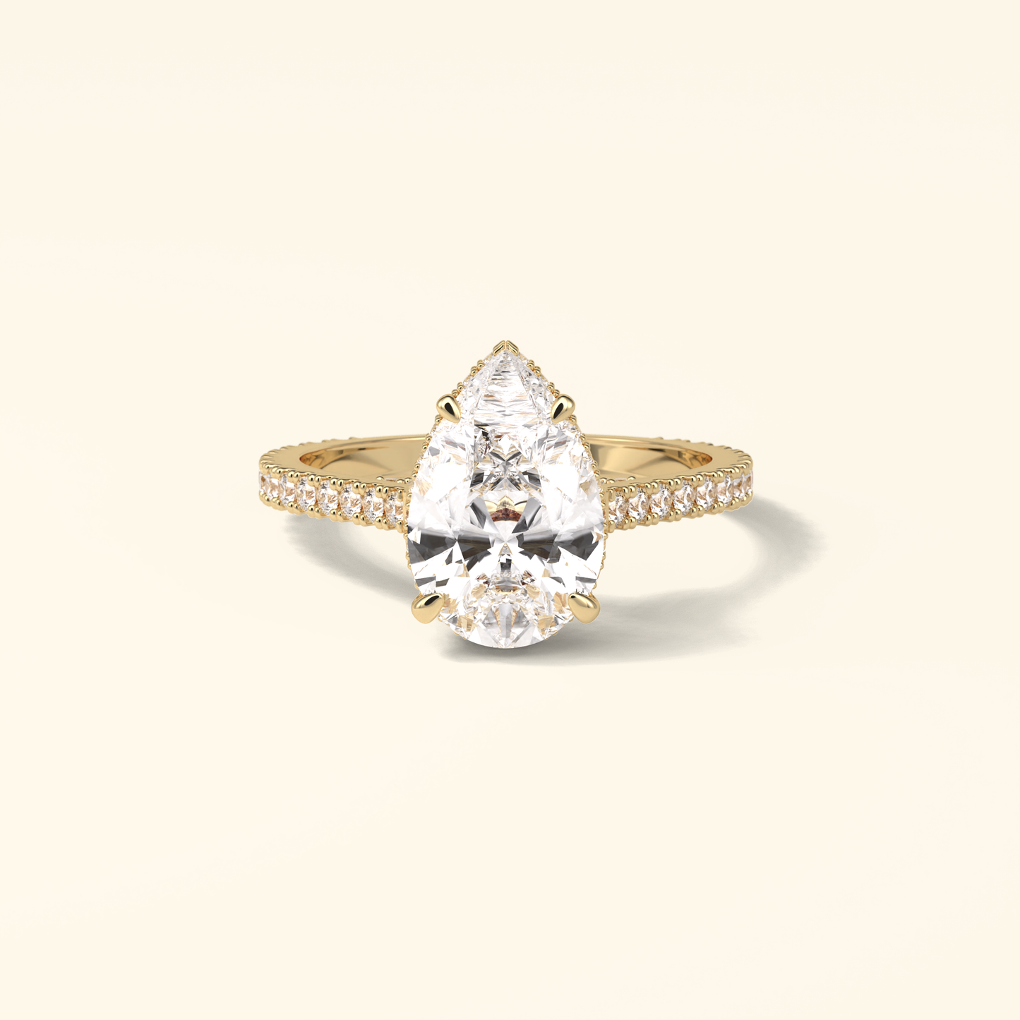 Pear Moissanite Hidden Halo Engagement Ring – 2.8 CT Center Stone with Pave Band in Solid Gold