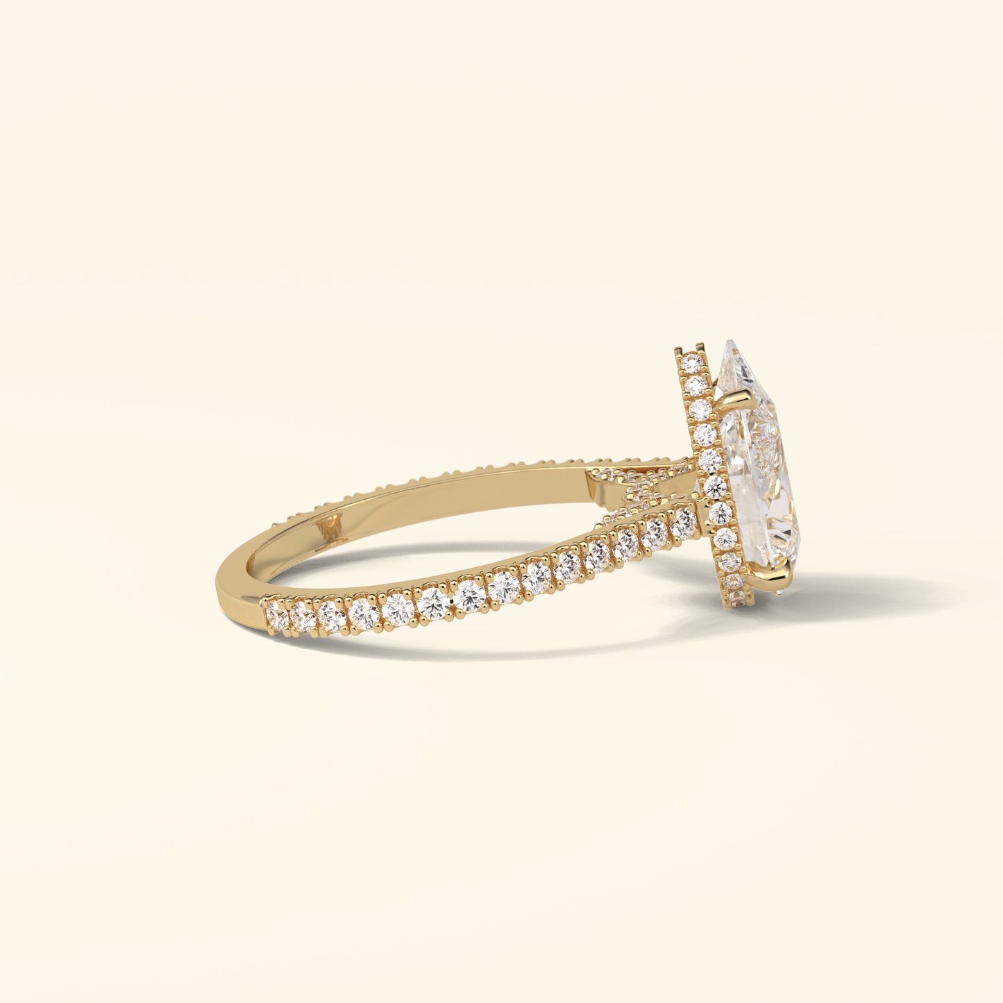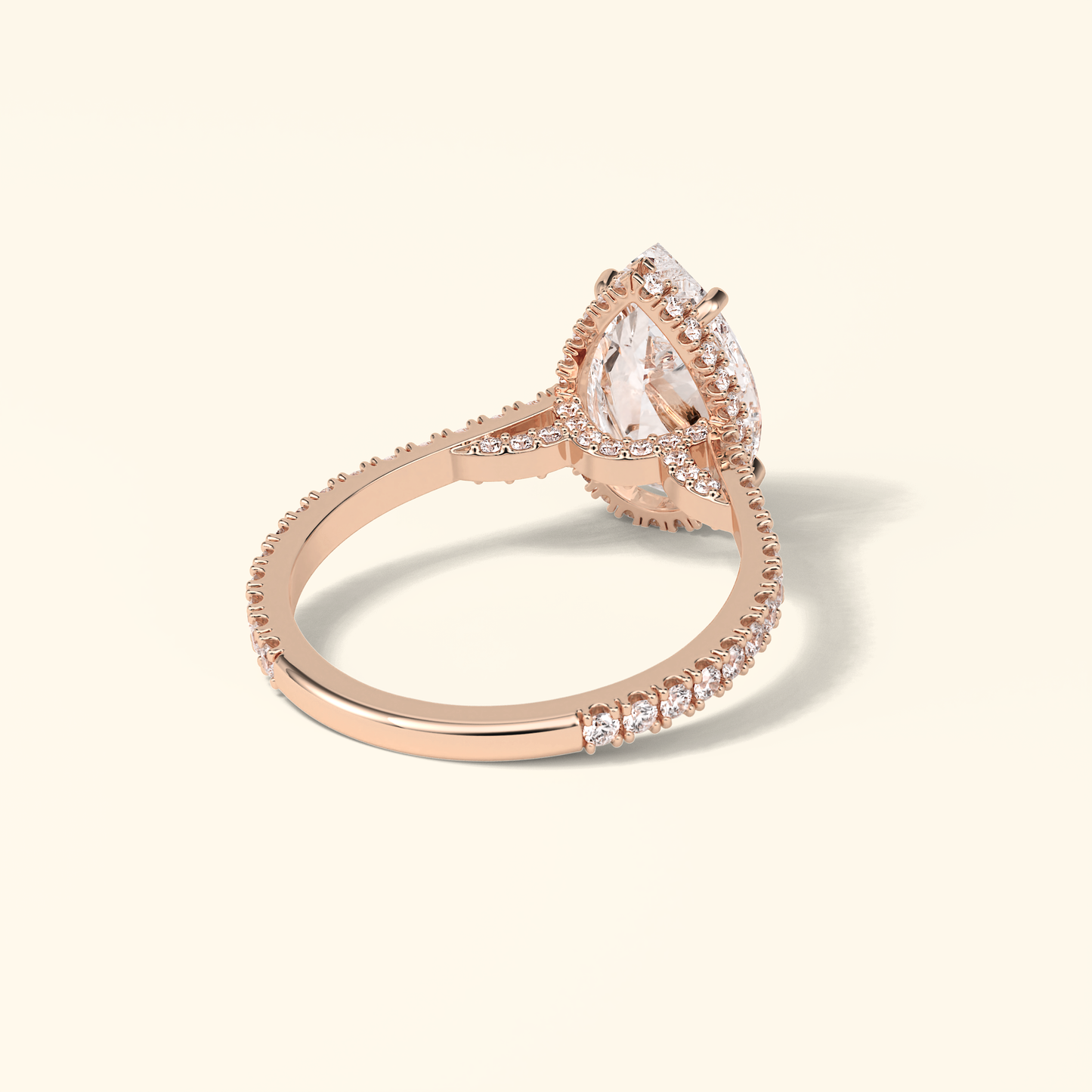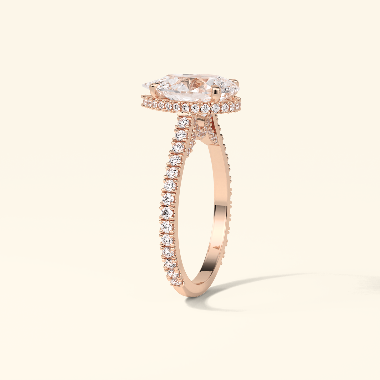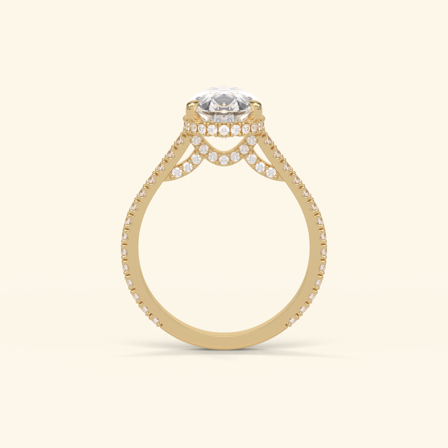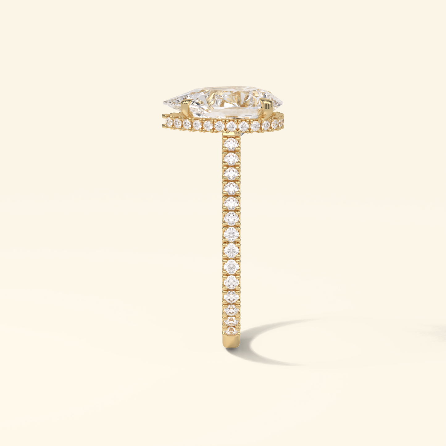 Pear Moissanite Hidden Halo Engagement Ring – 2.8 CT Center Stone with Pave Band in Solid Gold