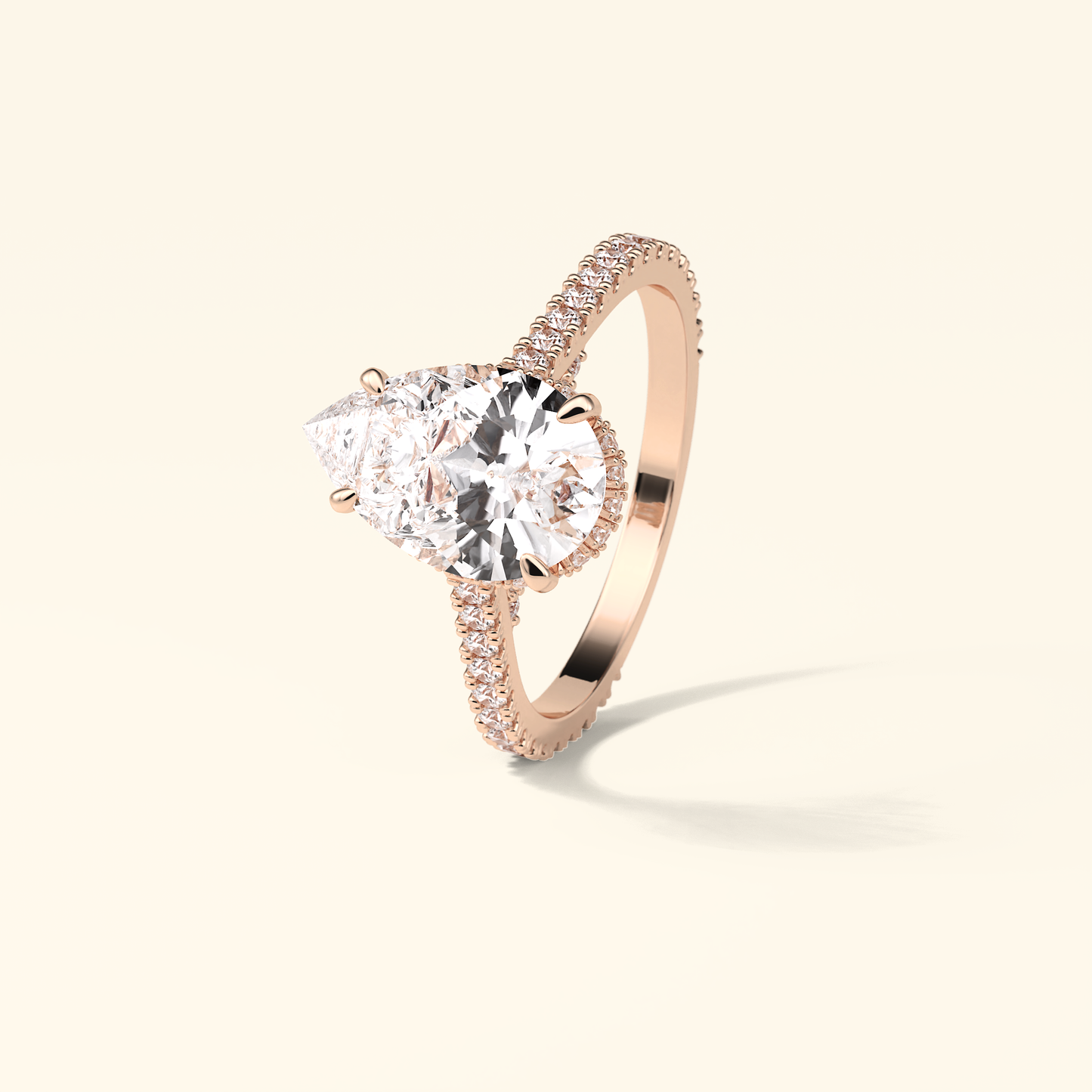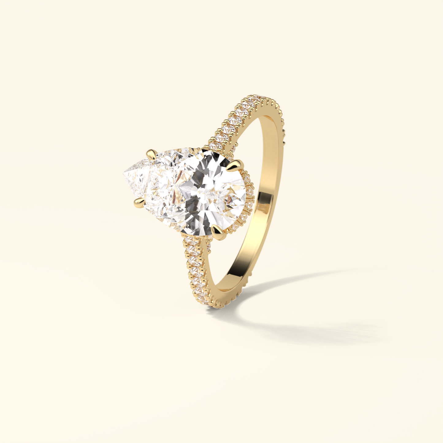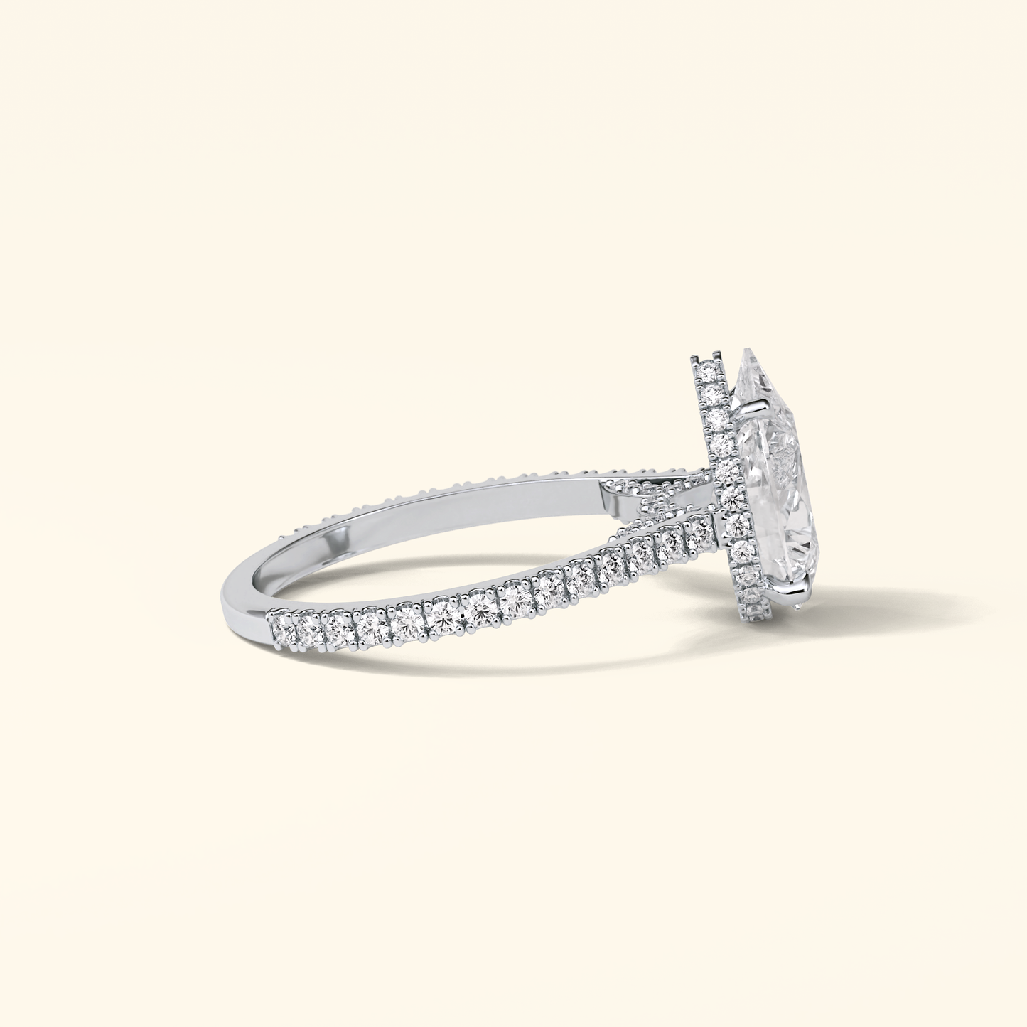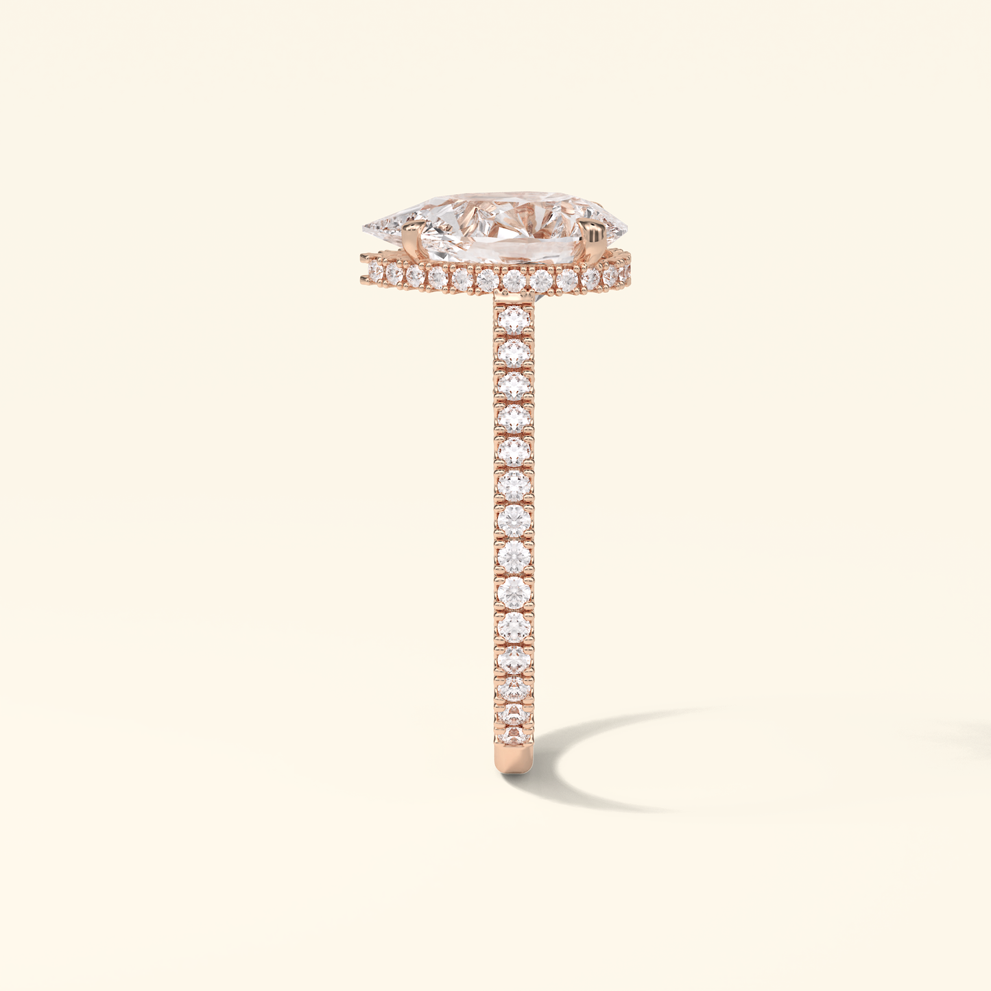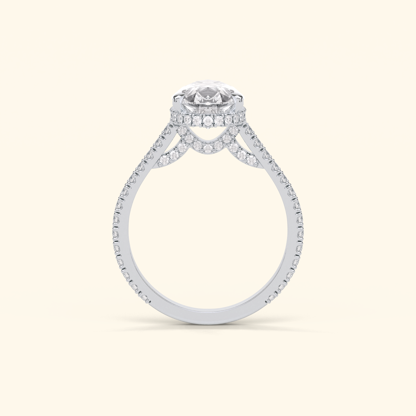 Pear Moissanite Hidden Halo Engagement Ring – 2.8 CT Center Stone with Pave Band in Solid Gold