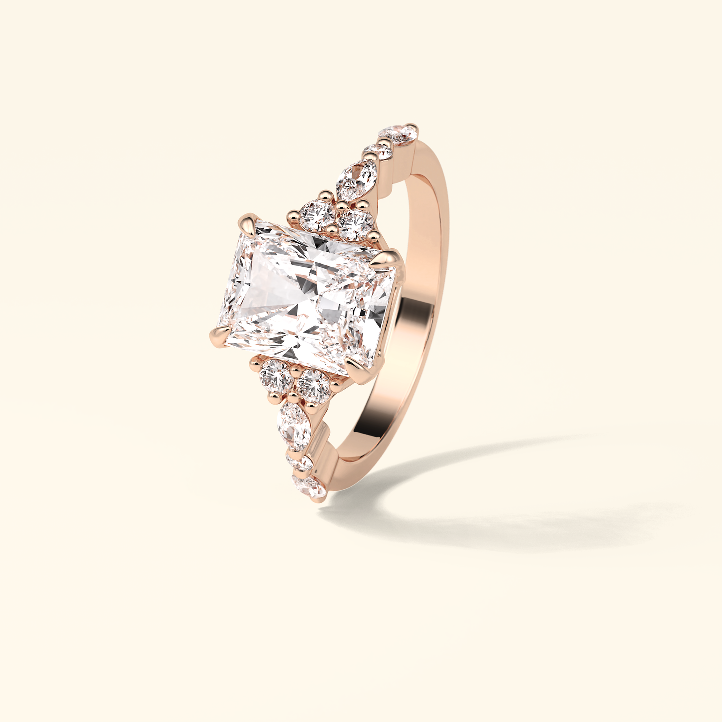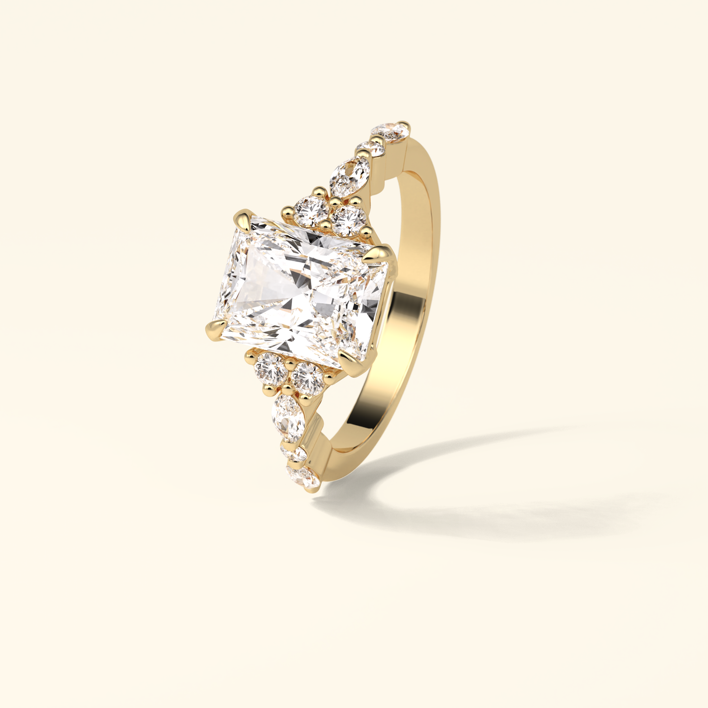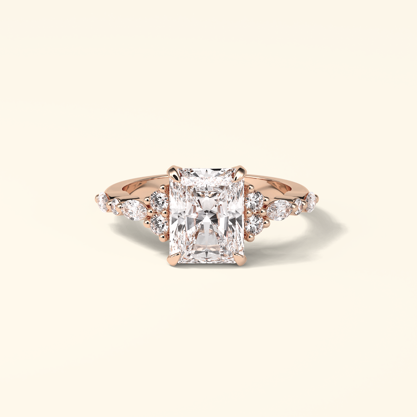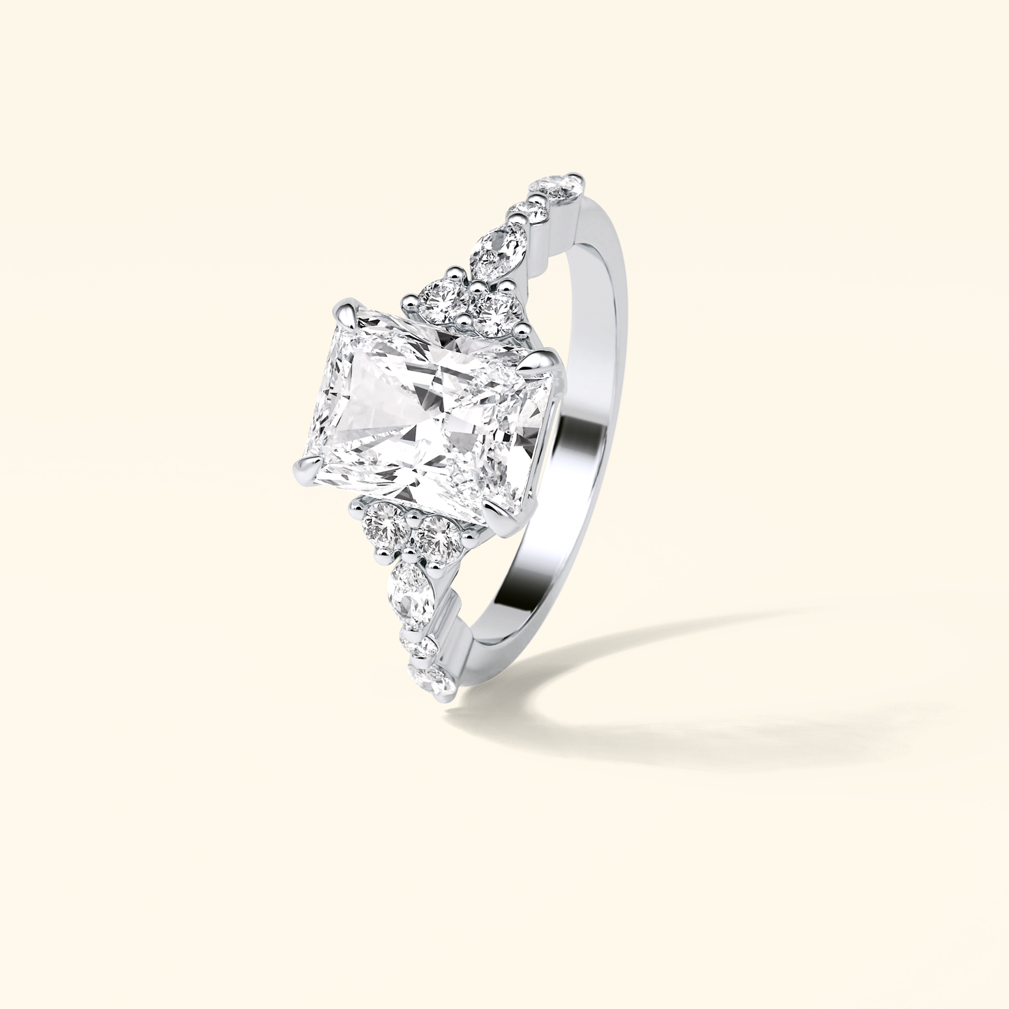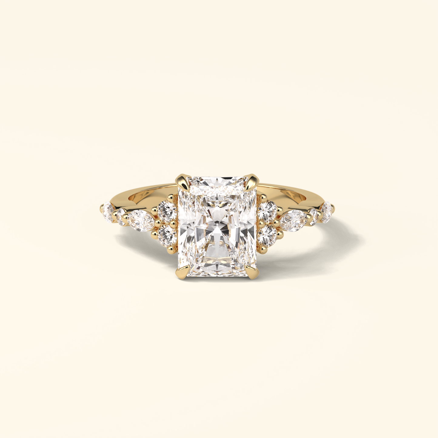 Radiant Moissanite Cluster Engagement Ring – 2.30 CT Center Stone with Pave Band in Solid Gold