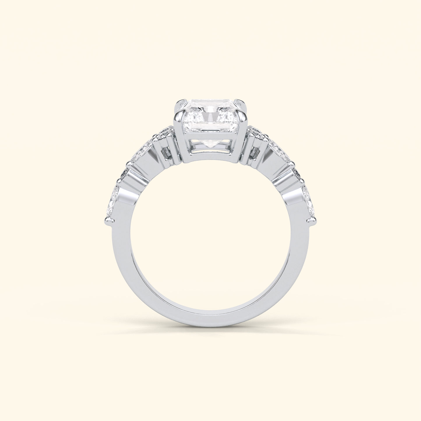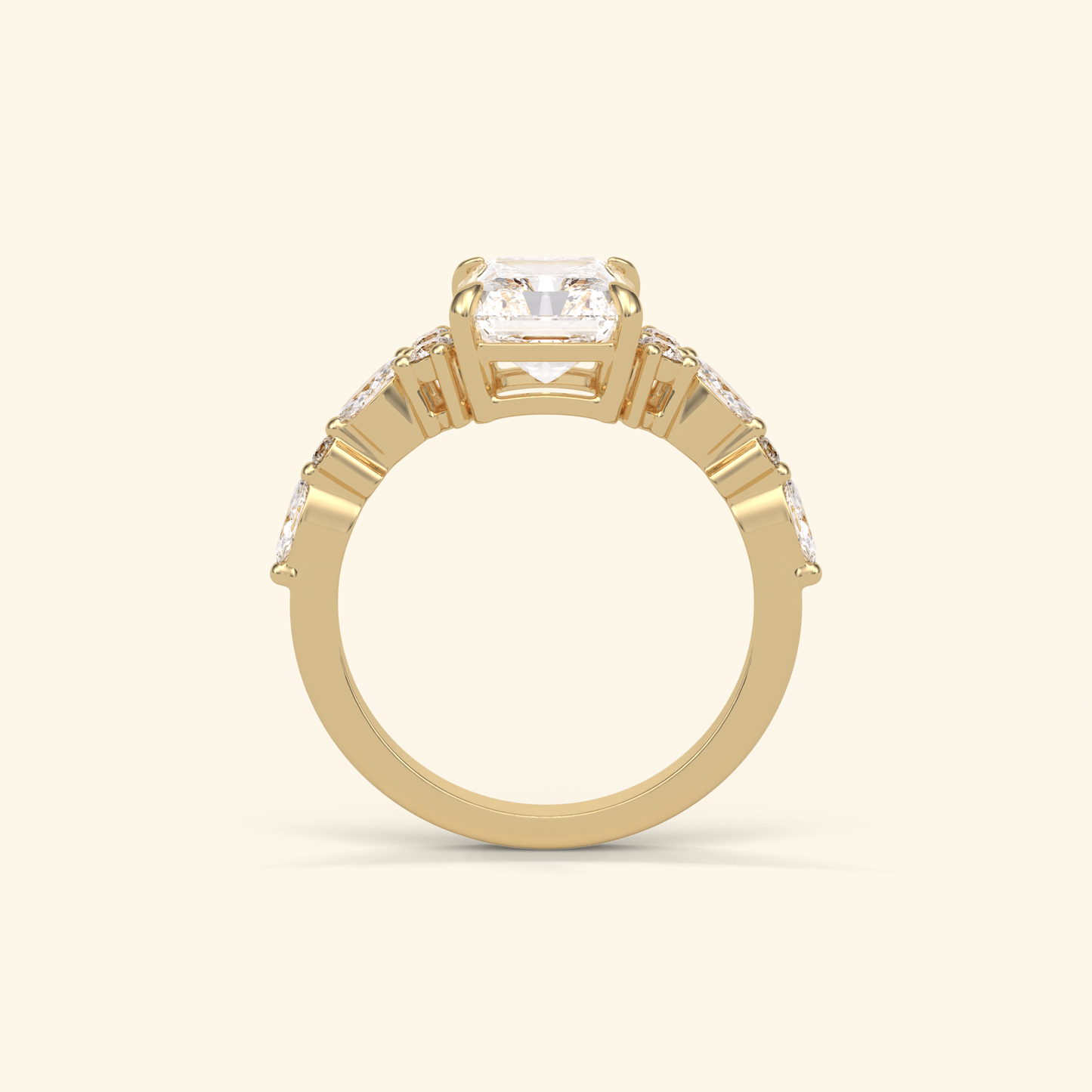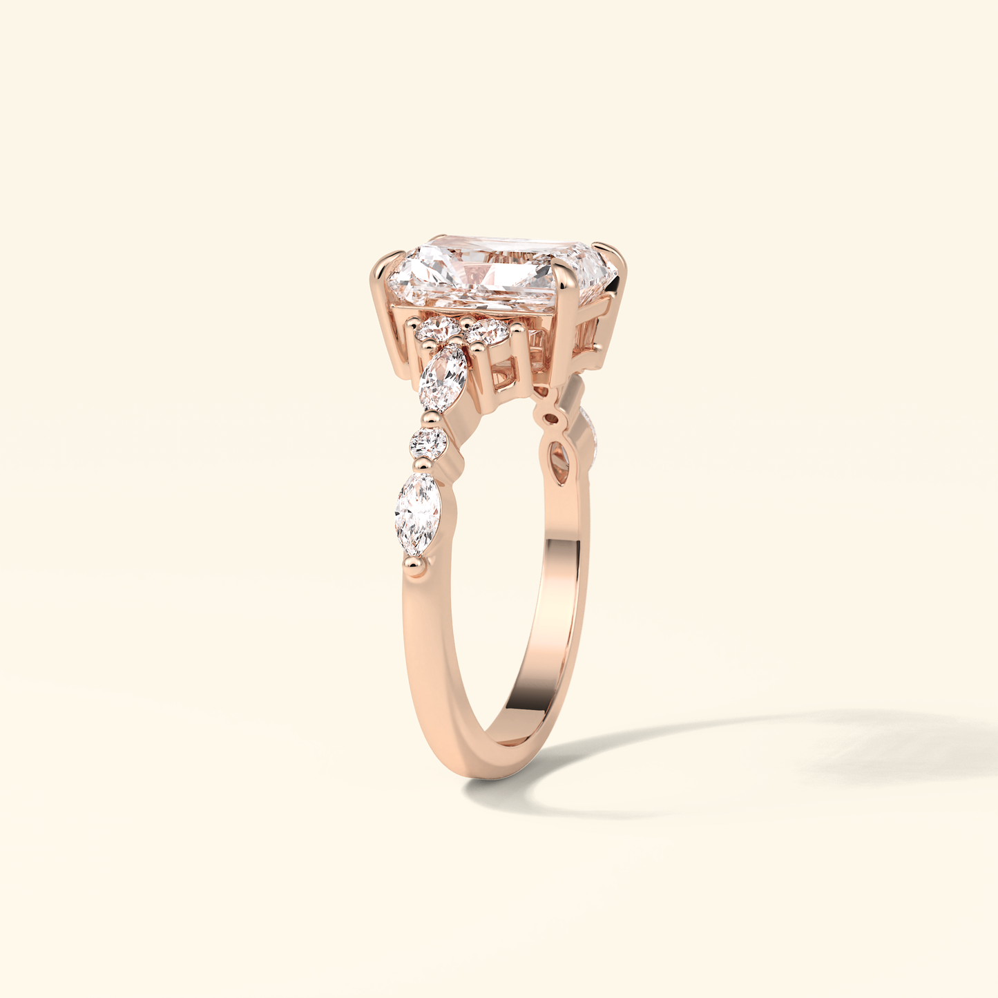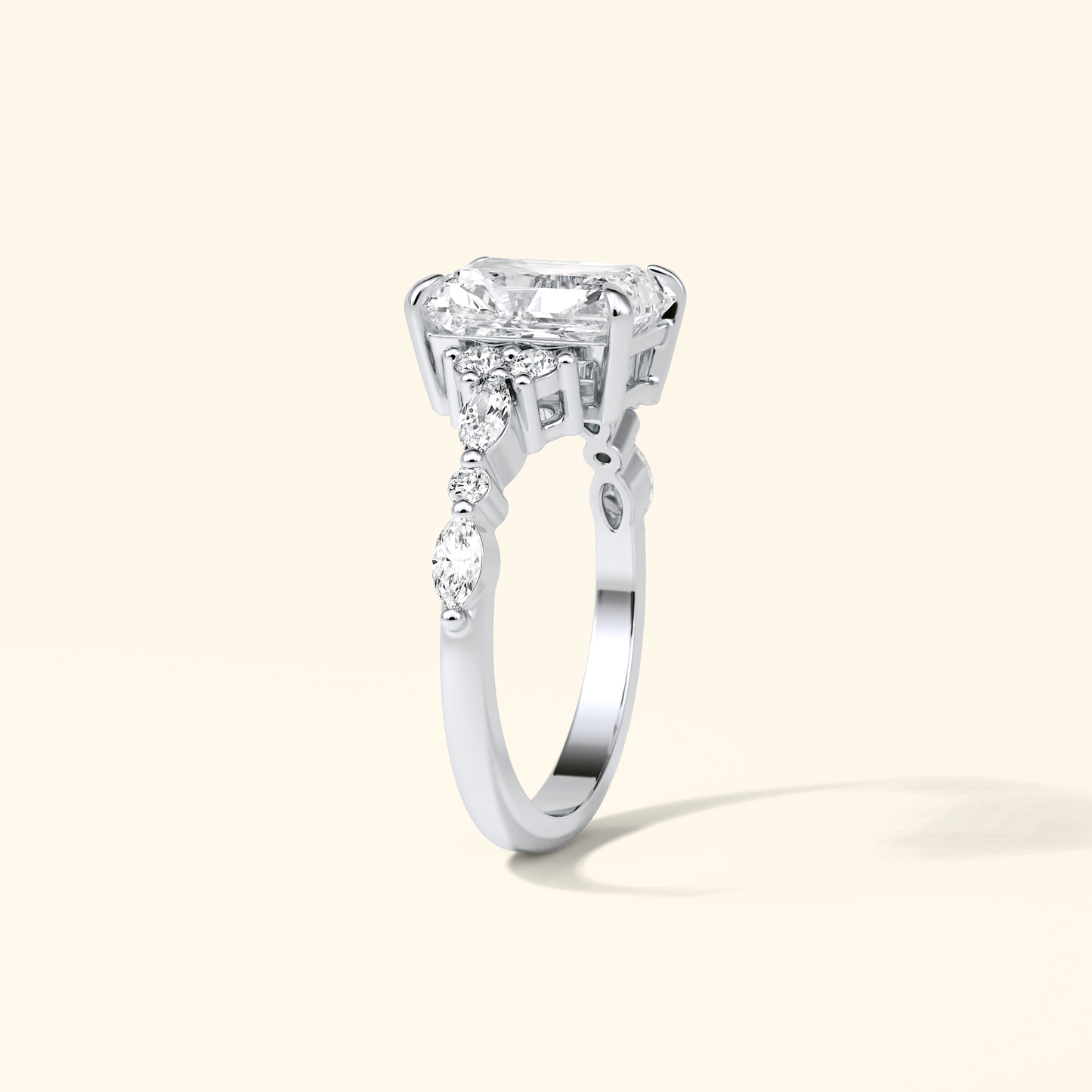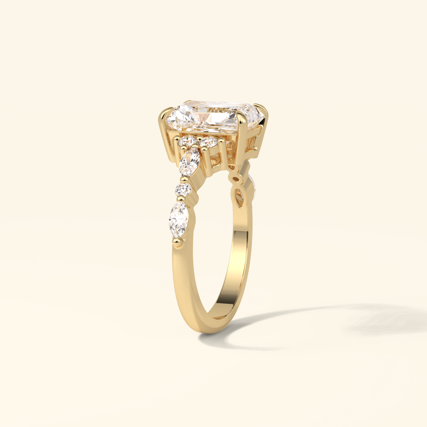 Radiant Moissanite Cluster Engagement Ring – 2.30 CT Center Stone with Pave Band in Solid Gold