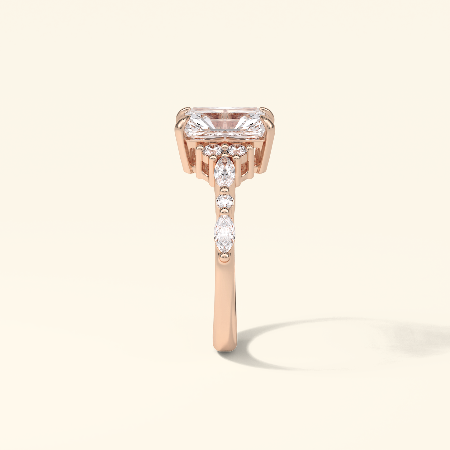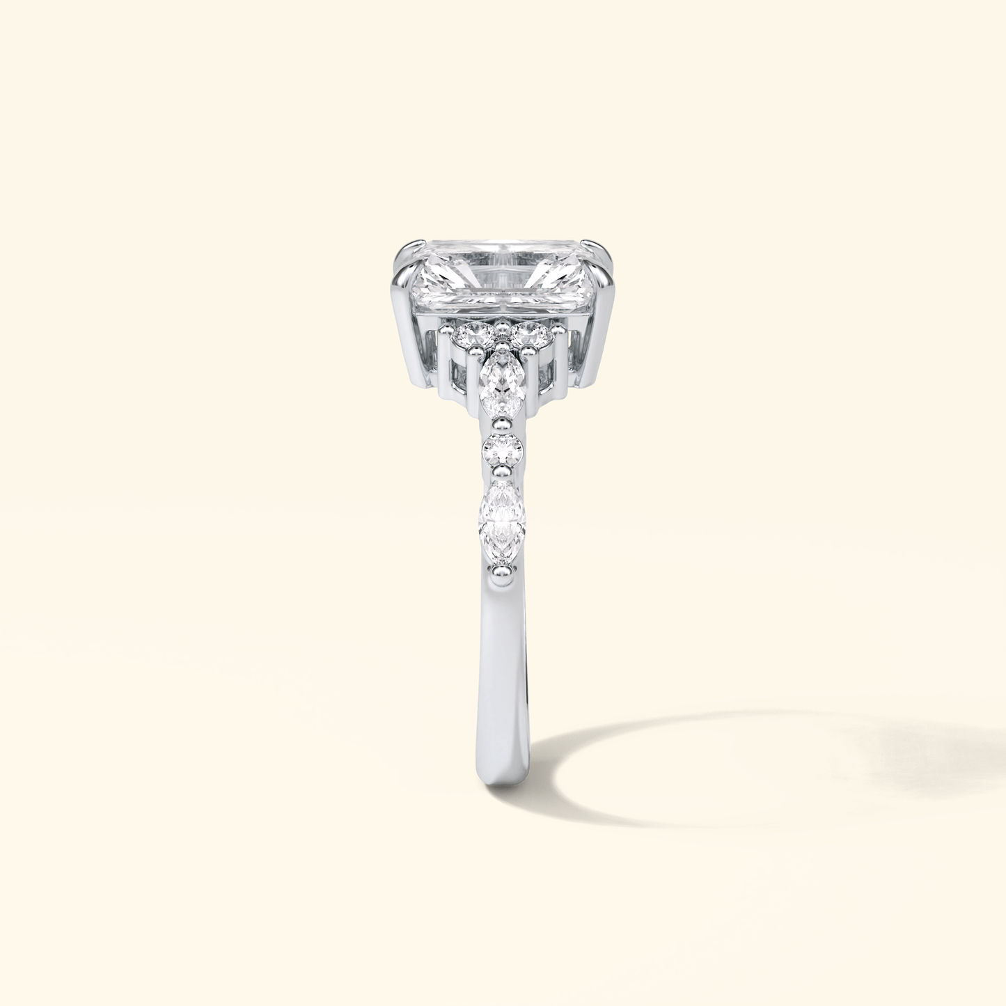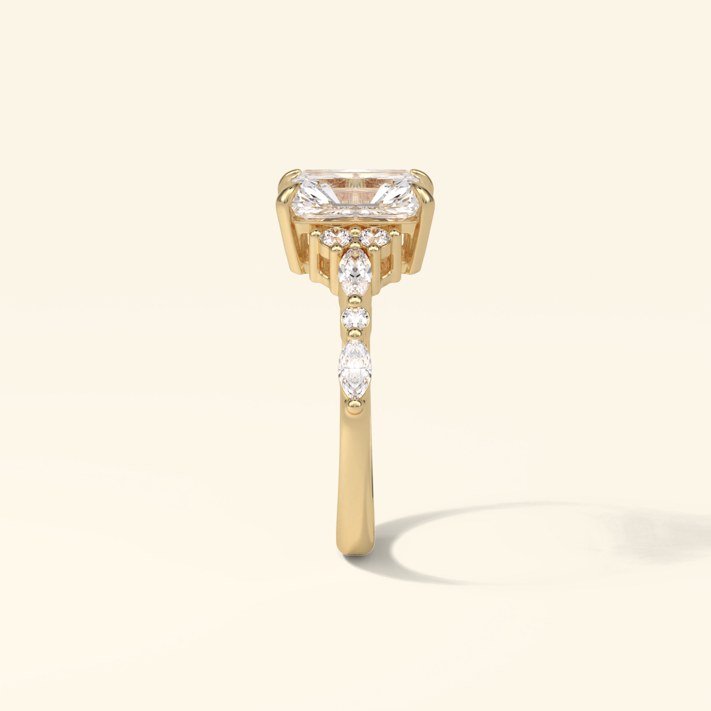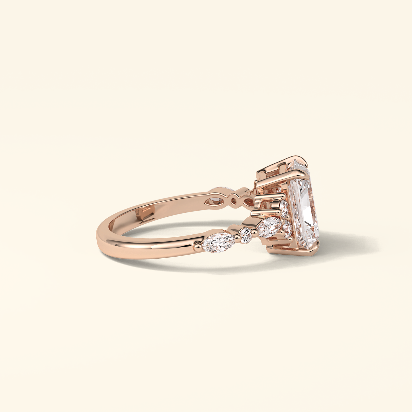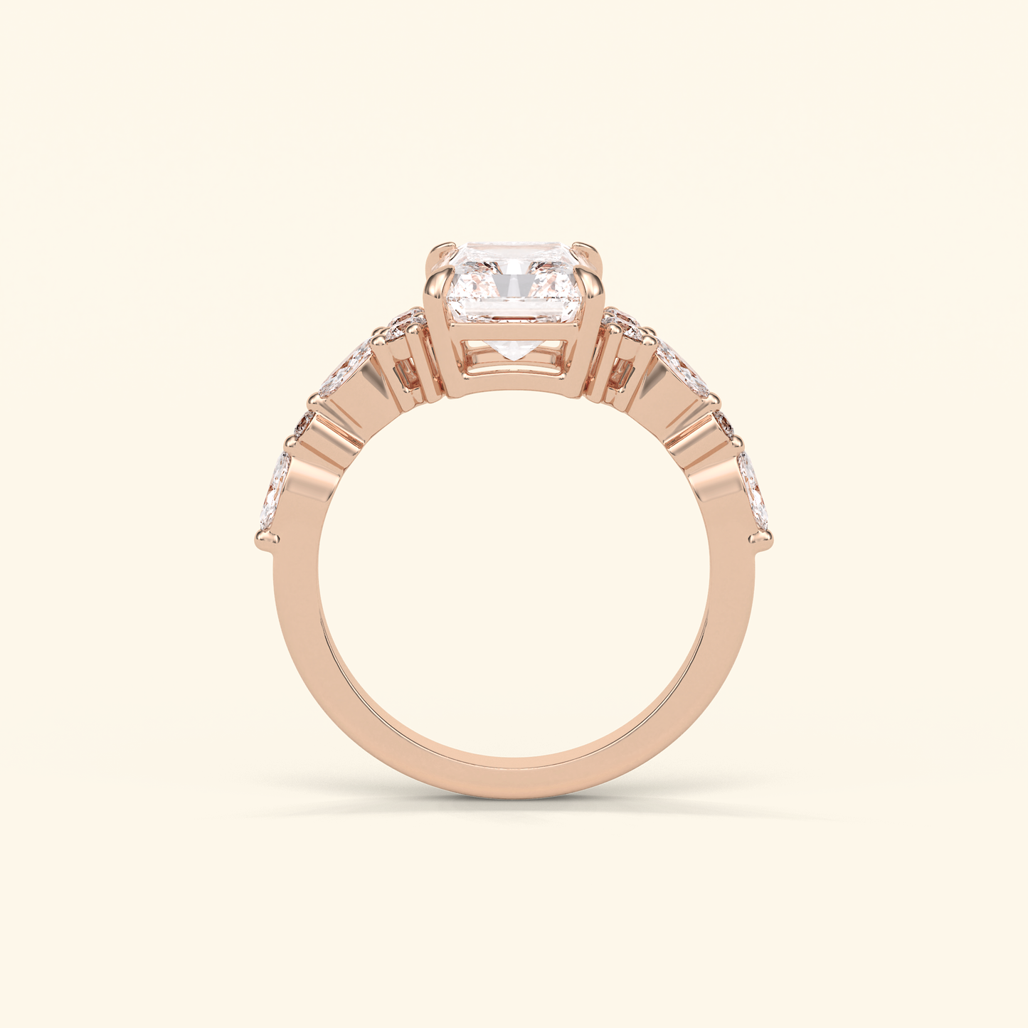 Radiant Moissanite Cluster Engagement Ring – 2.30 CT Center Stone with Pave Band in Solid Gold