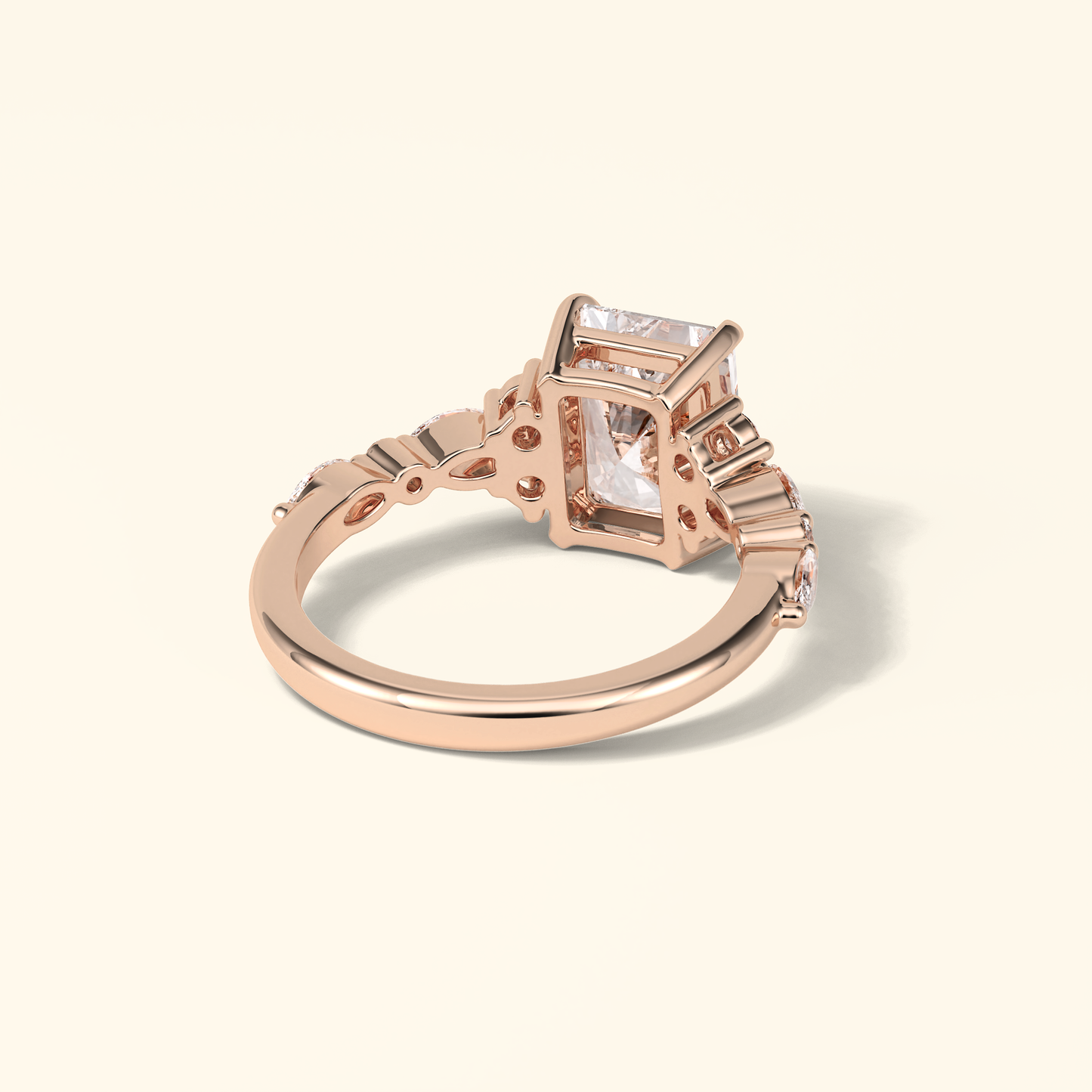 Asscher Moissanite Cluster Engagement Ring – 2.30 CT Center Stone with Pave Band in Solid Gold