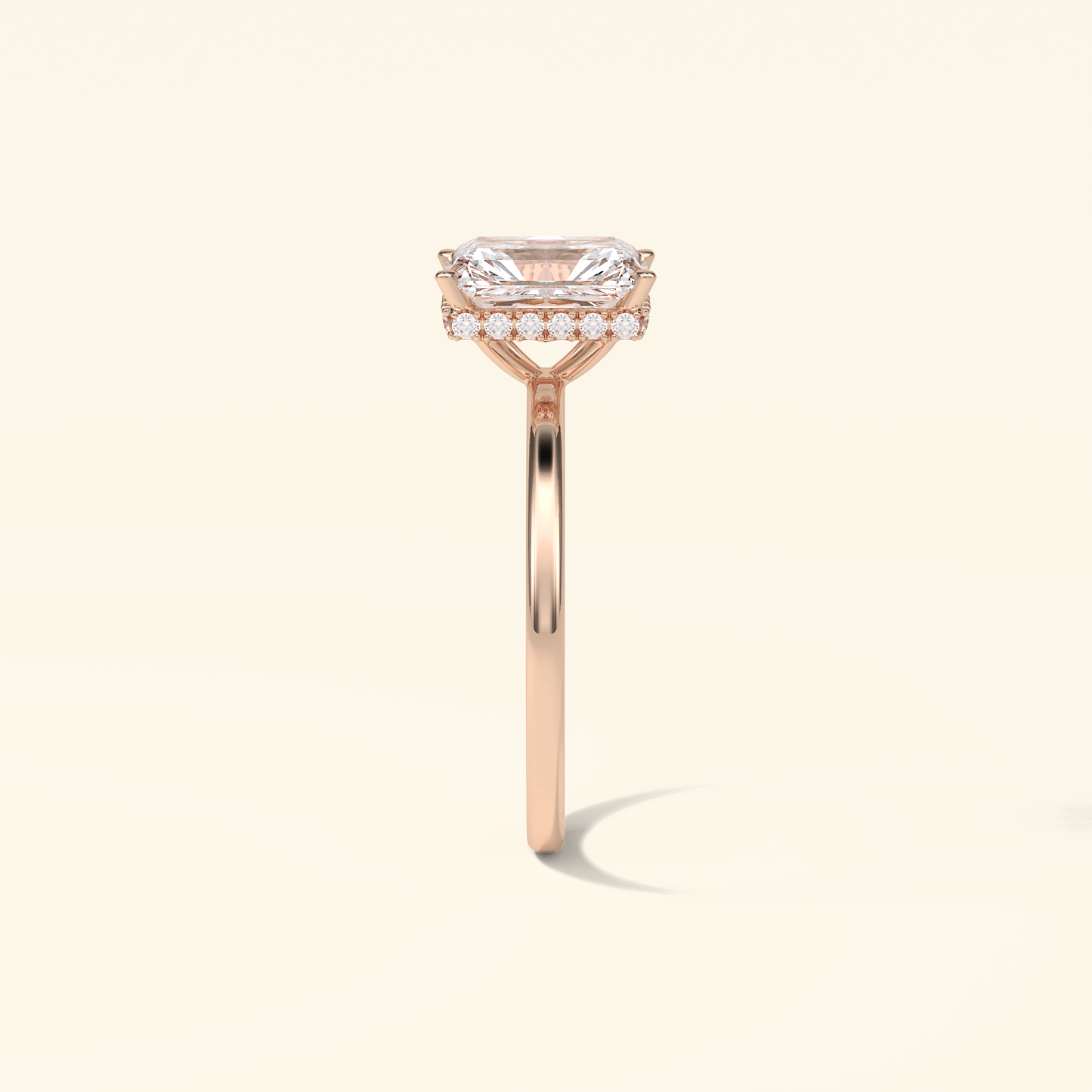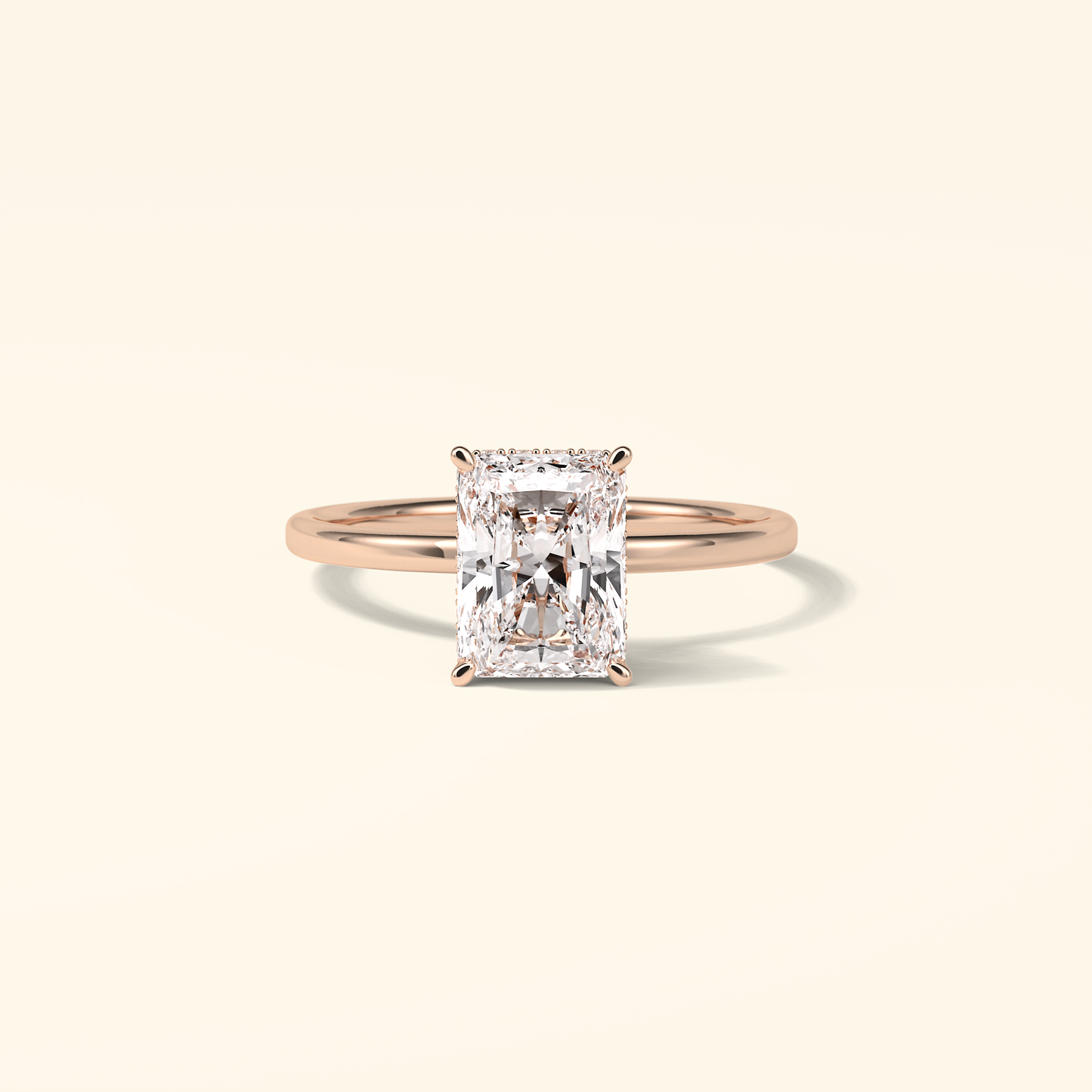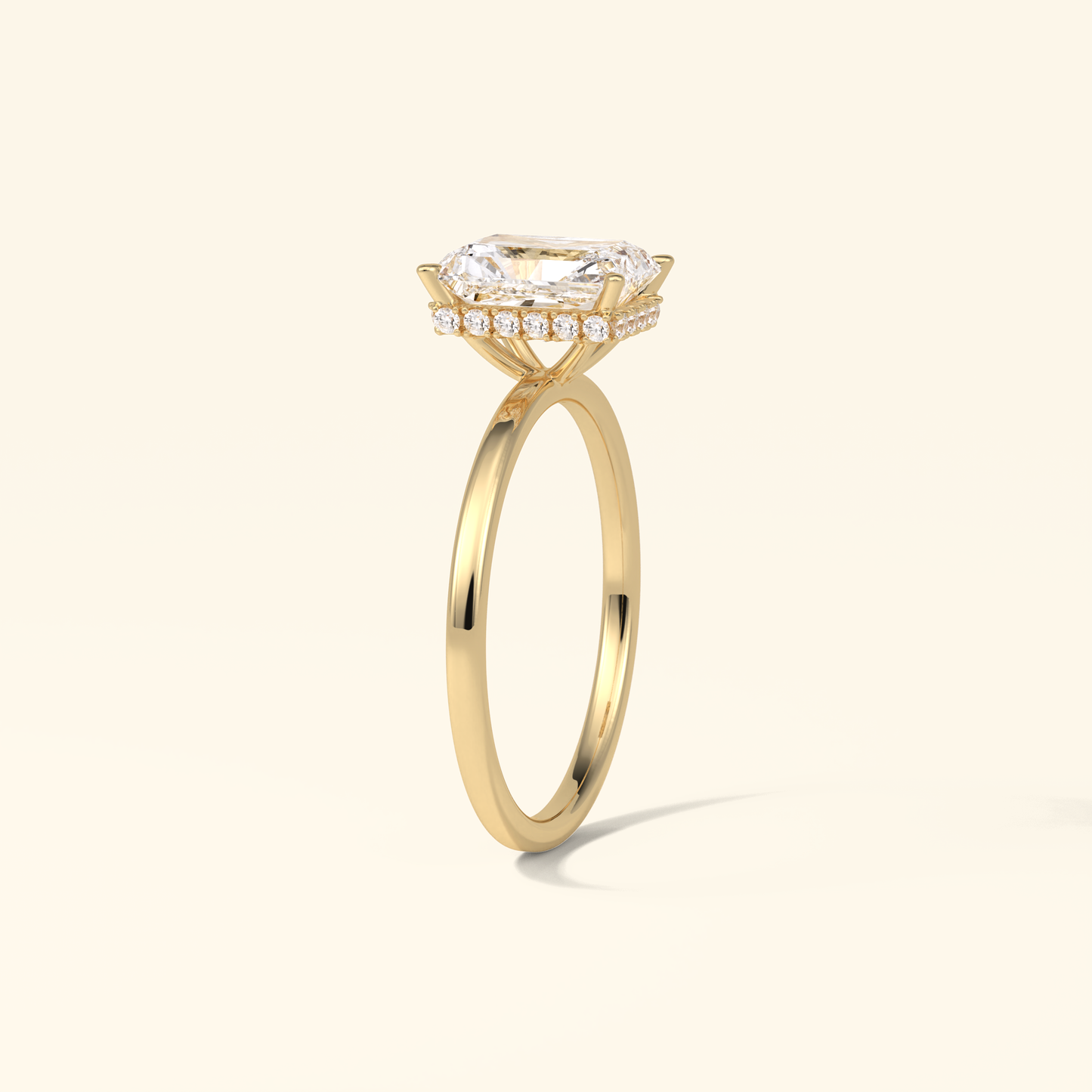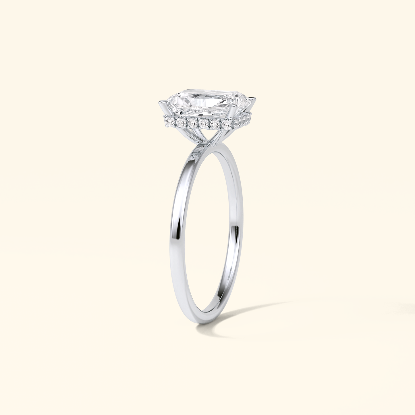 Celebrate your forever with a ring that radiates brilliance, elegance, and meaning. This stunning Radiant Moissanite Engagement Ring features a luxurious Hidden Halo, offering exceptional sparkle from every angle. Crafted with ethically sourced stones and customizable metal options, it's a timeless design made to last a lifetime.