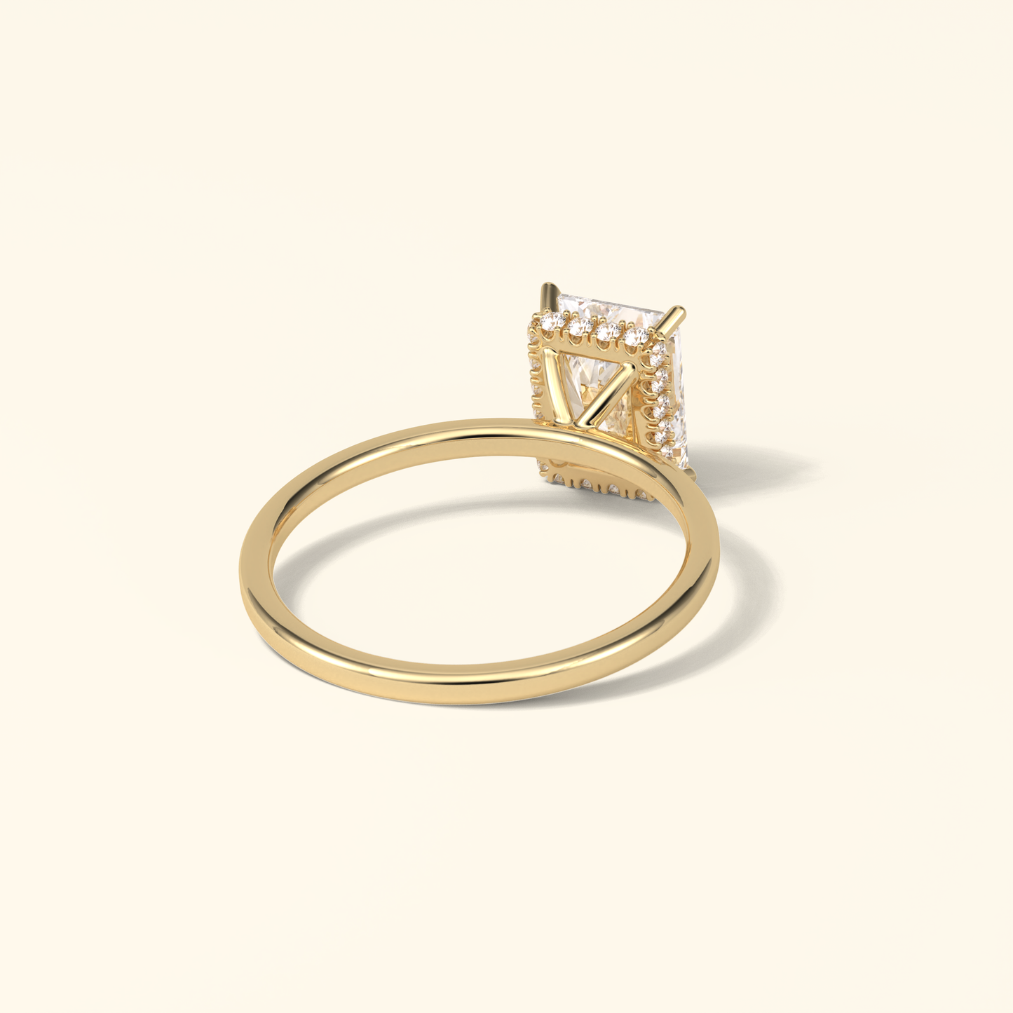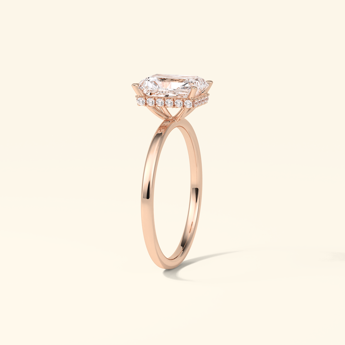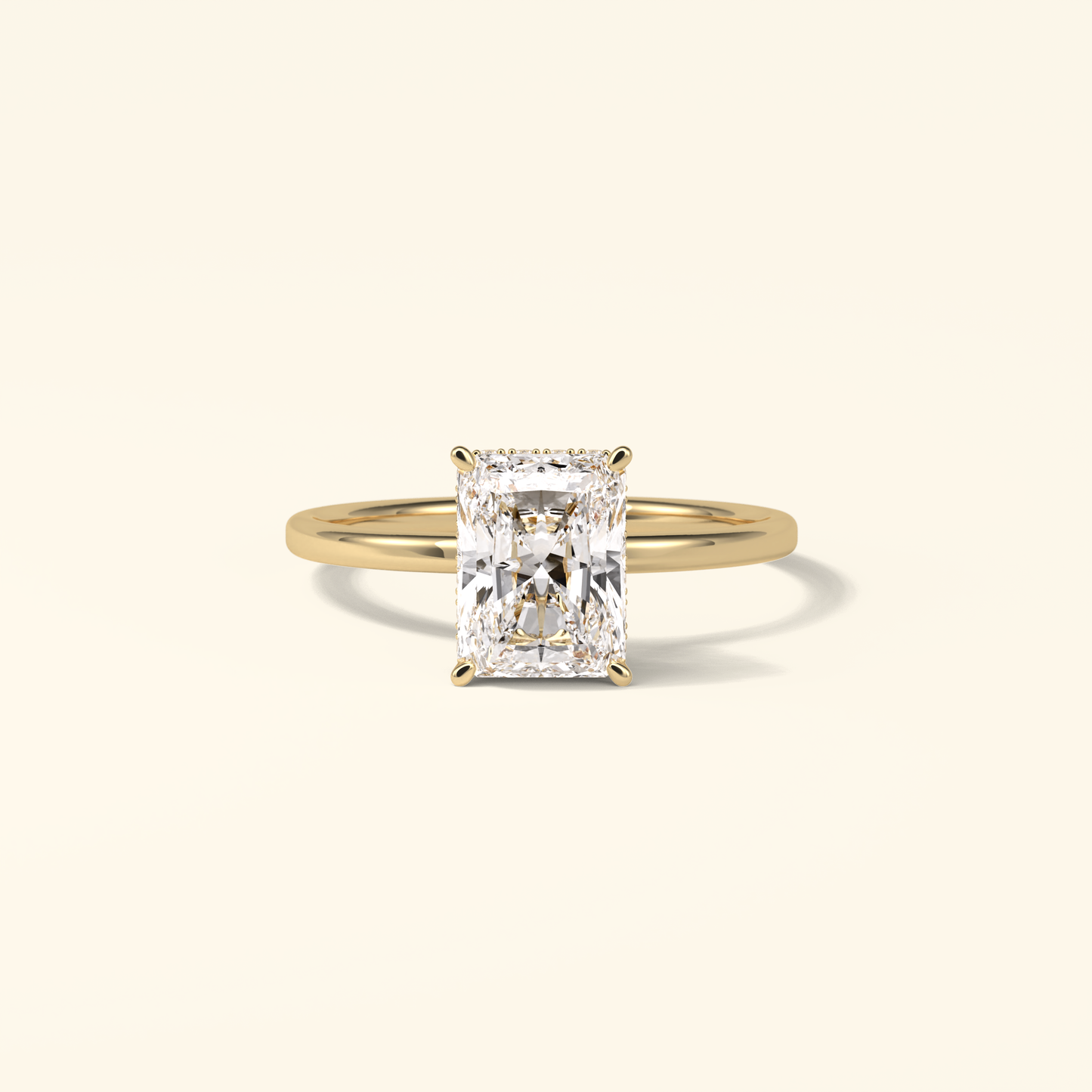 Celebrate your forever with a ring that radiates brilliance, elegance, and meaning. This stunning Radiant Moissanite Engagement Ring features a luxurious Hidden Halo, offering exceptional sparkle from every angle. Crafted with ethically sourced stones and customizable metal options, it's a timeless design made to last a lifetime.