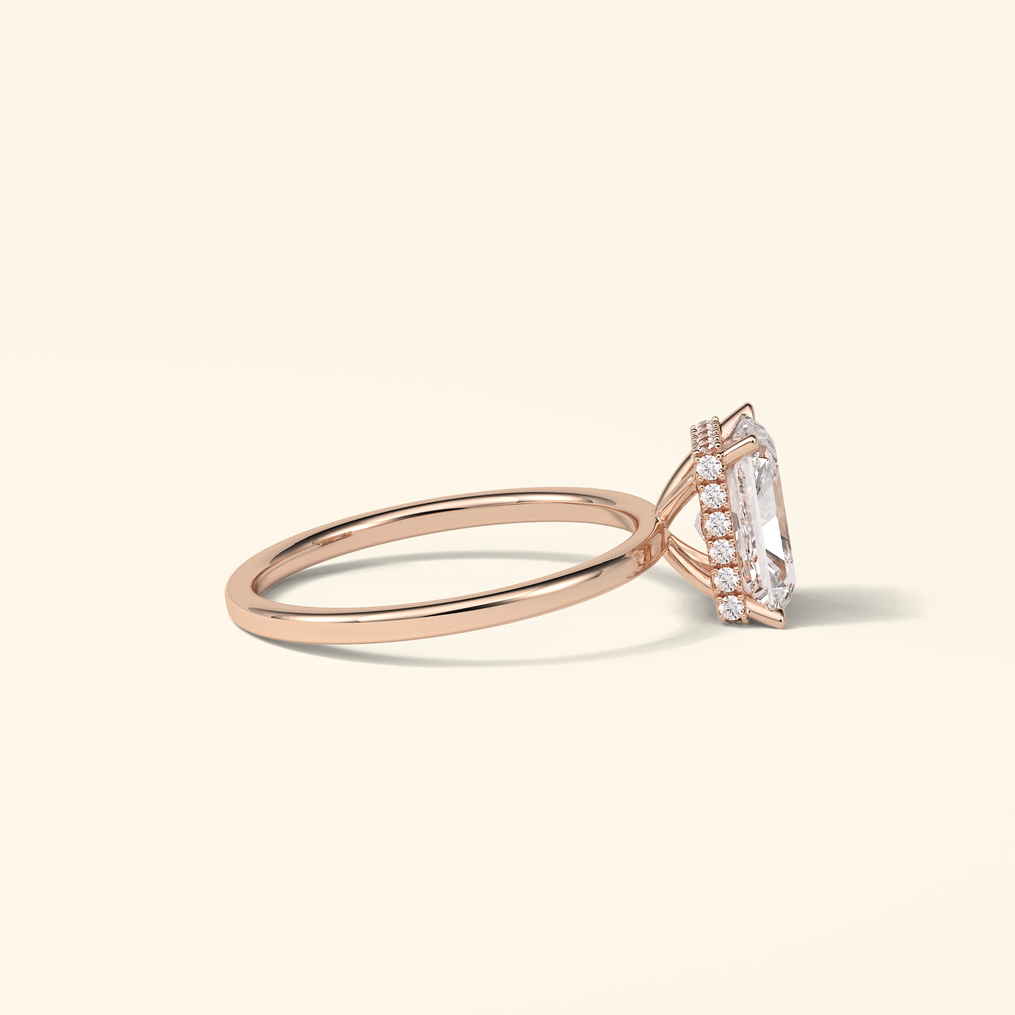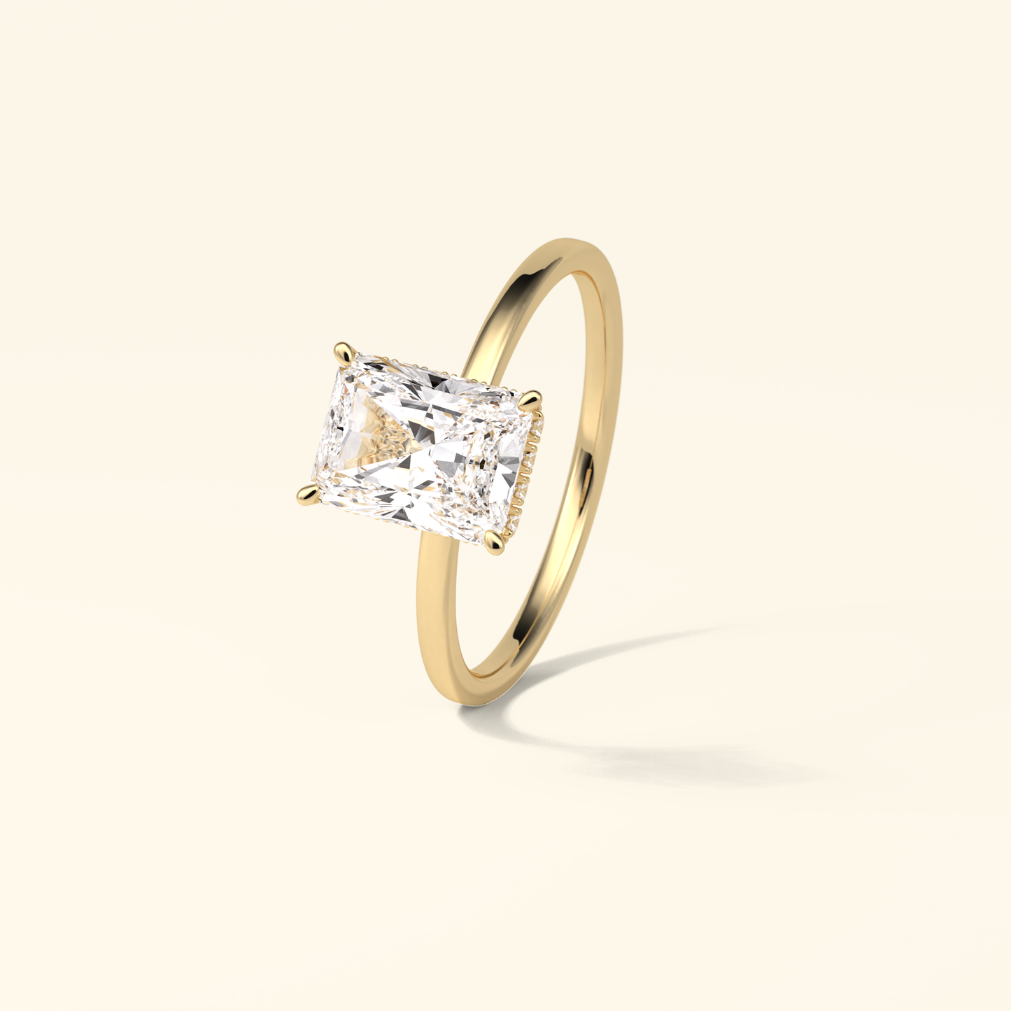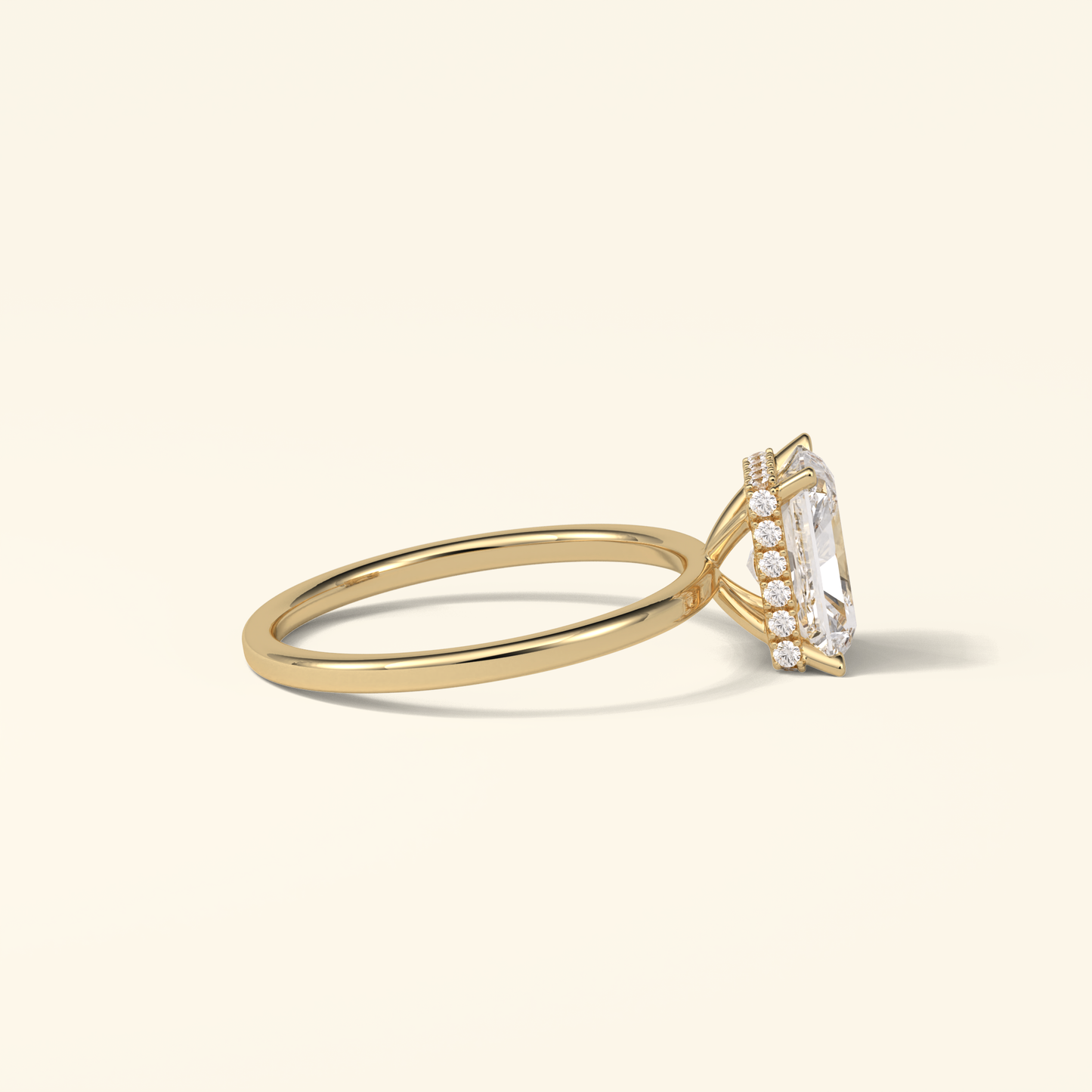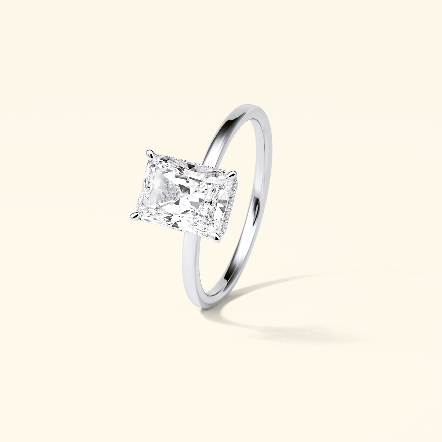 Celebrate your forever with a ring that radiates brilliance, elegance, and meaning. This stunning Radiant Moissanite Engagement Ring features a luxurious Hidden Halo, offering exceptional sparkle from every angle. Crafted with ethically sourced stones and customizable metal options, it's a timeless design made to last a lifetime.