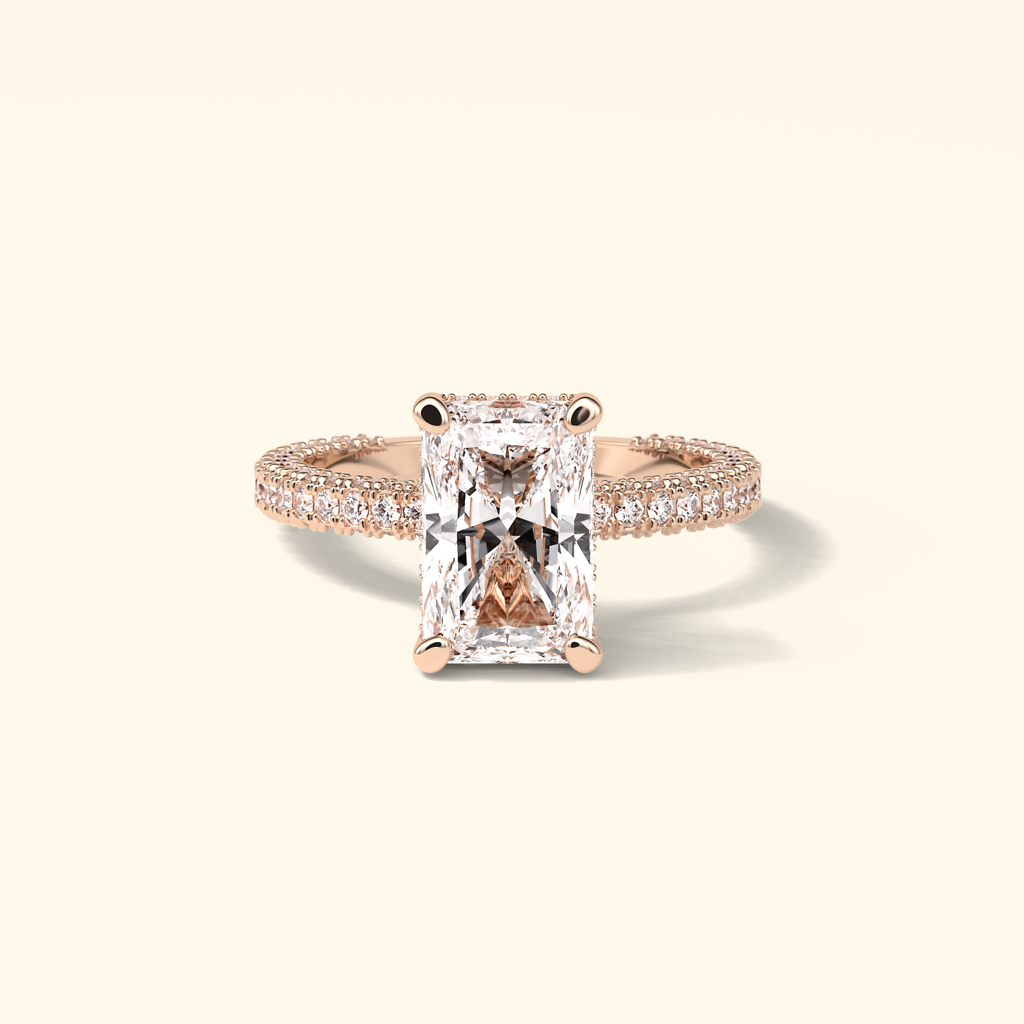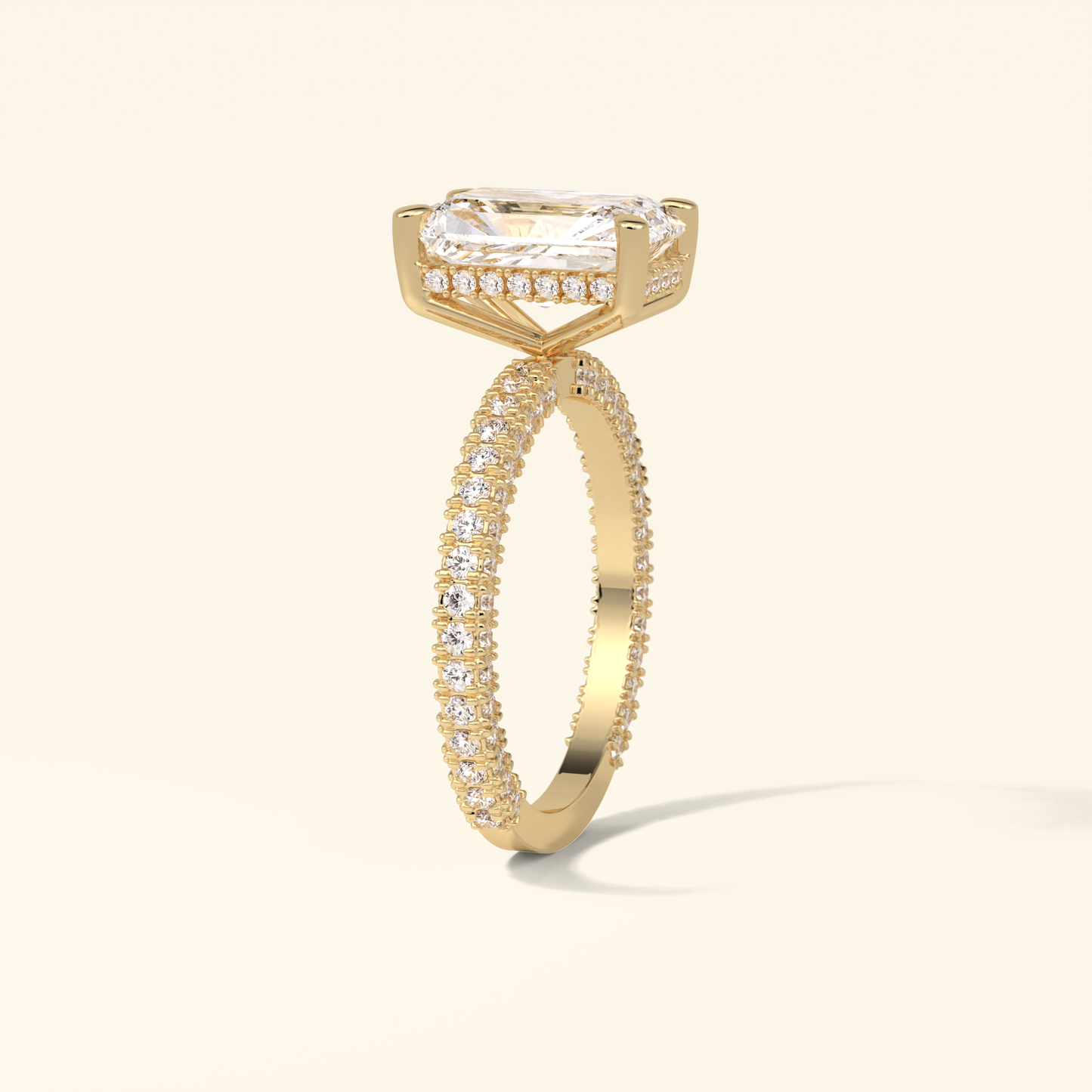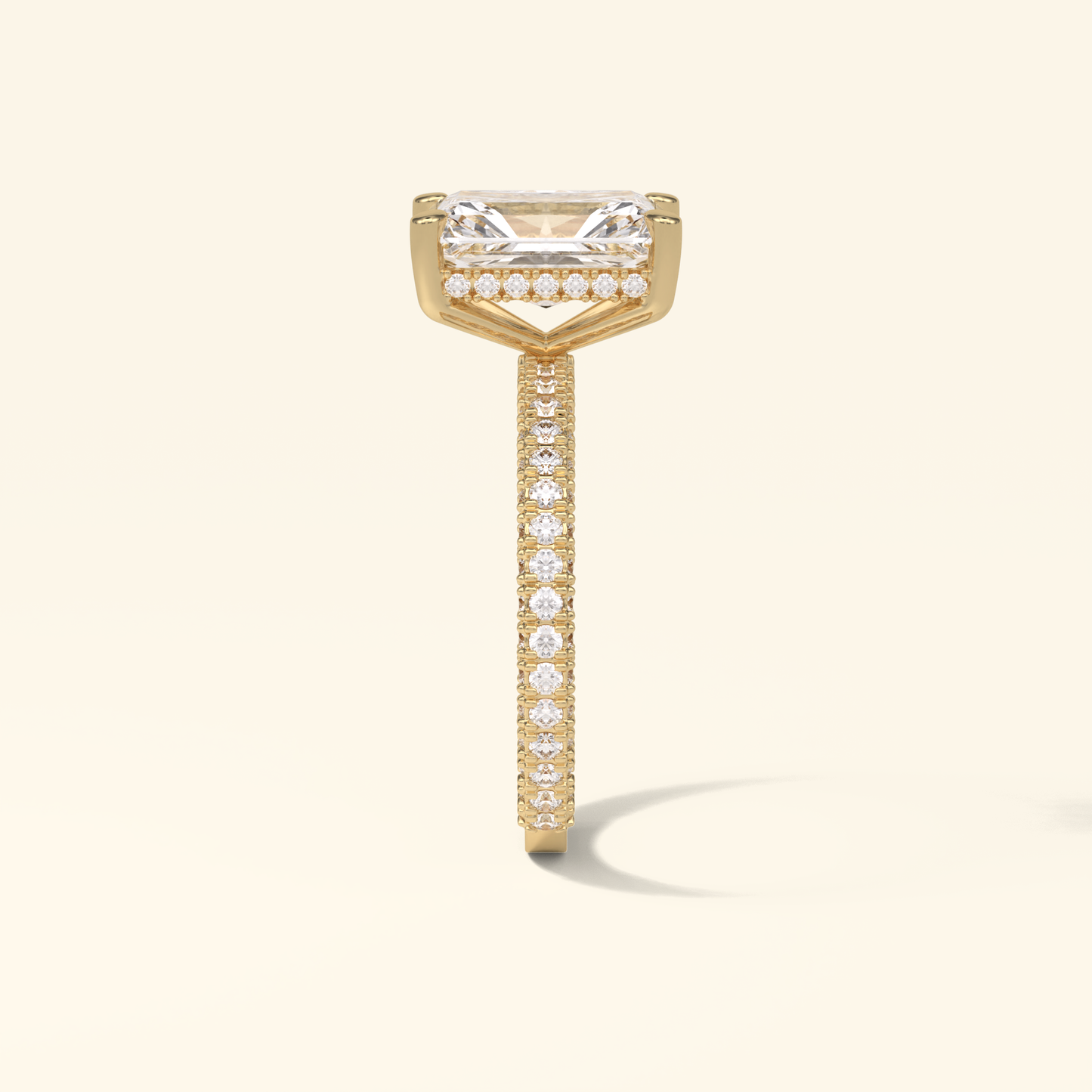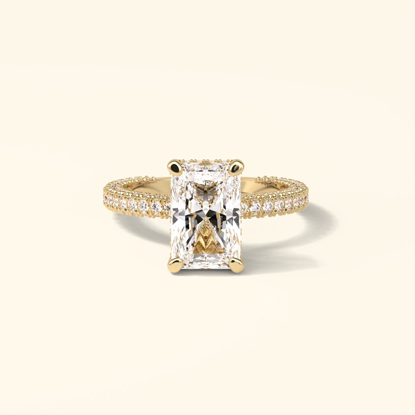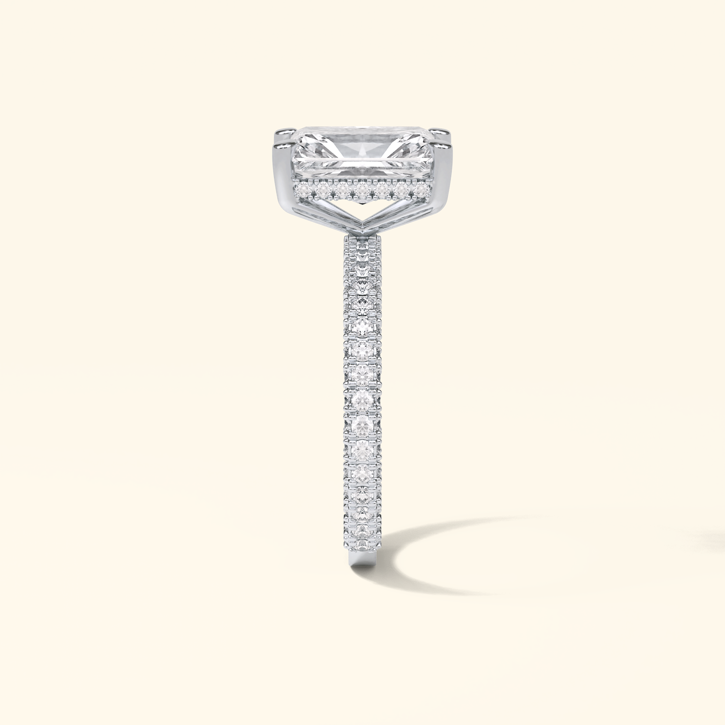 Radiant Moissanite Hidden Halo Engagement Ring – 2.6 CT Center Stone with Pave Band in Solid Gold