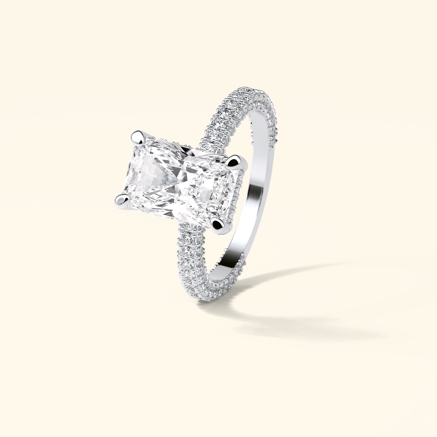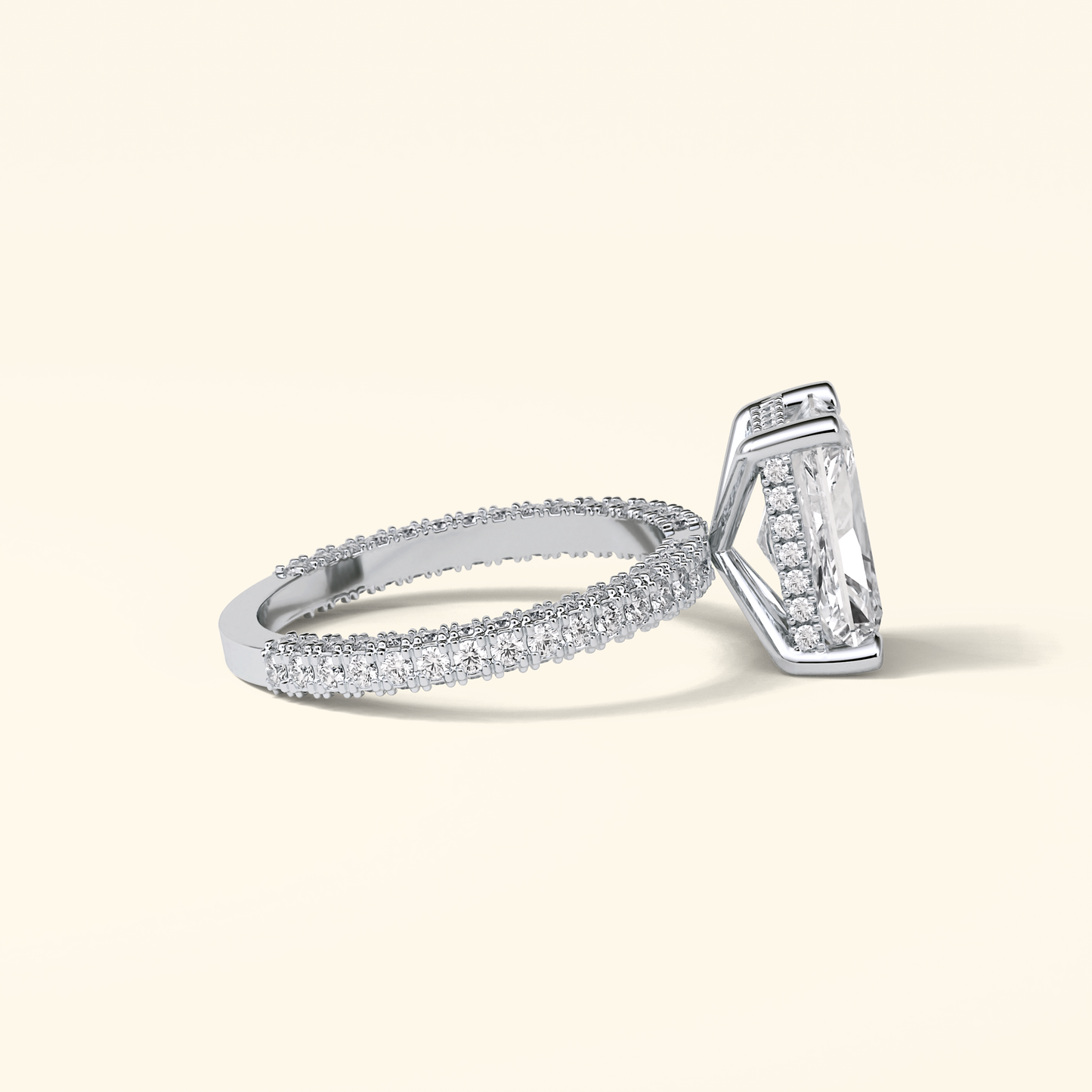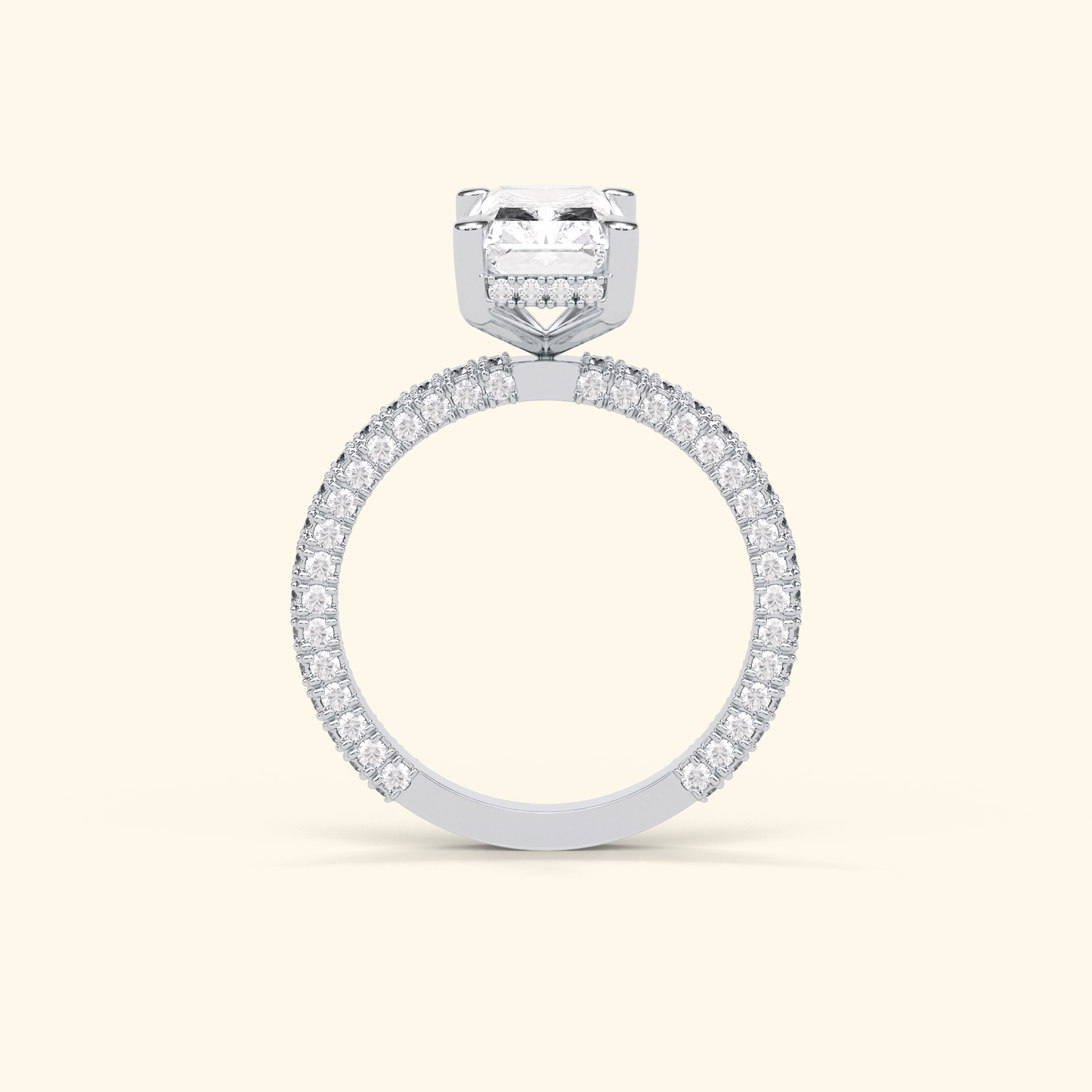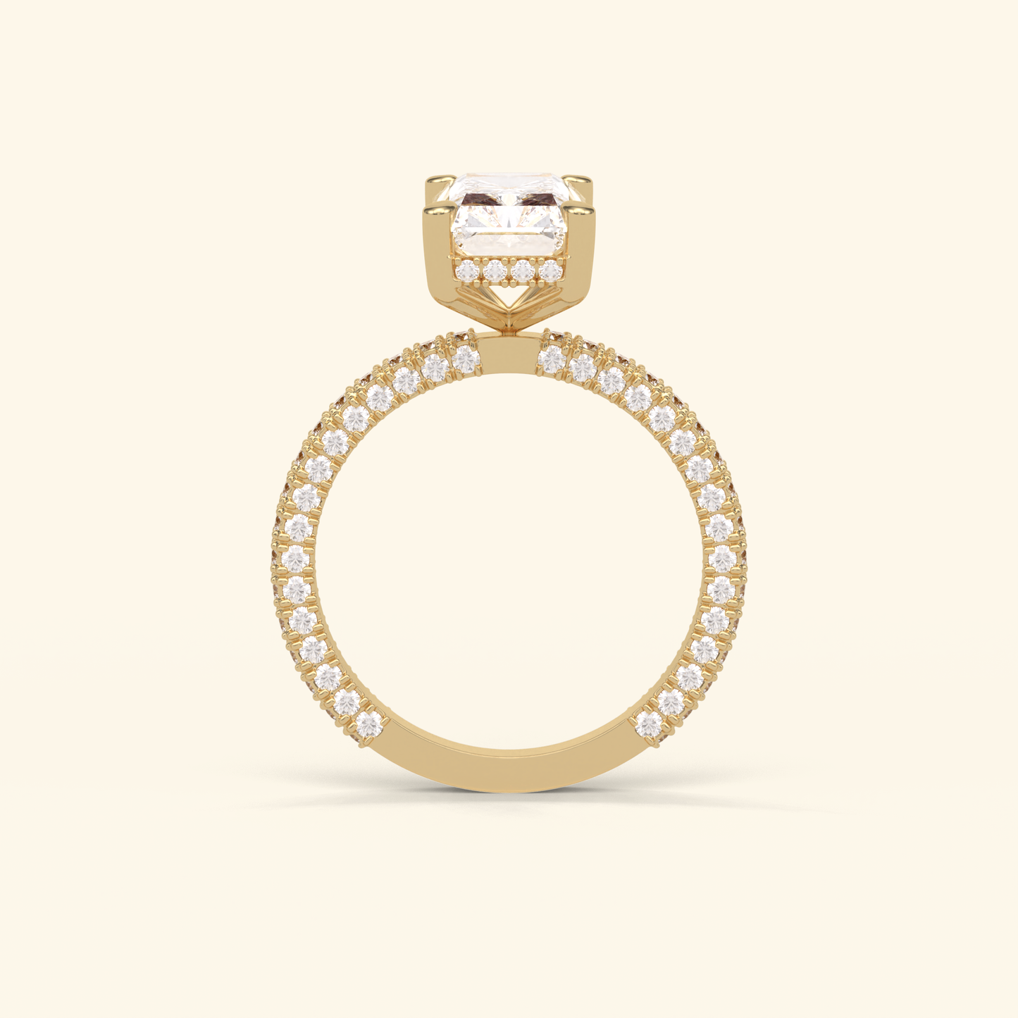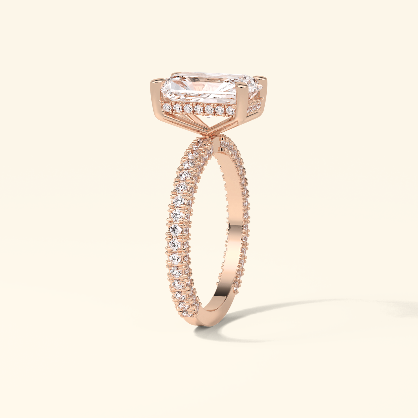 Radiant Moissanite Hidden Halo Engagement Ring – 2.6 CT Center Stone with Pave Band in Solid Gold