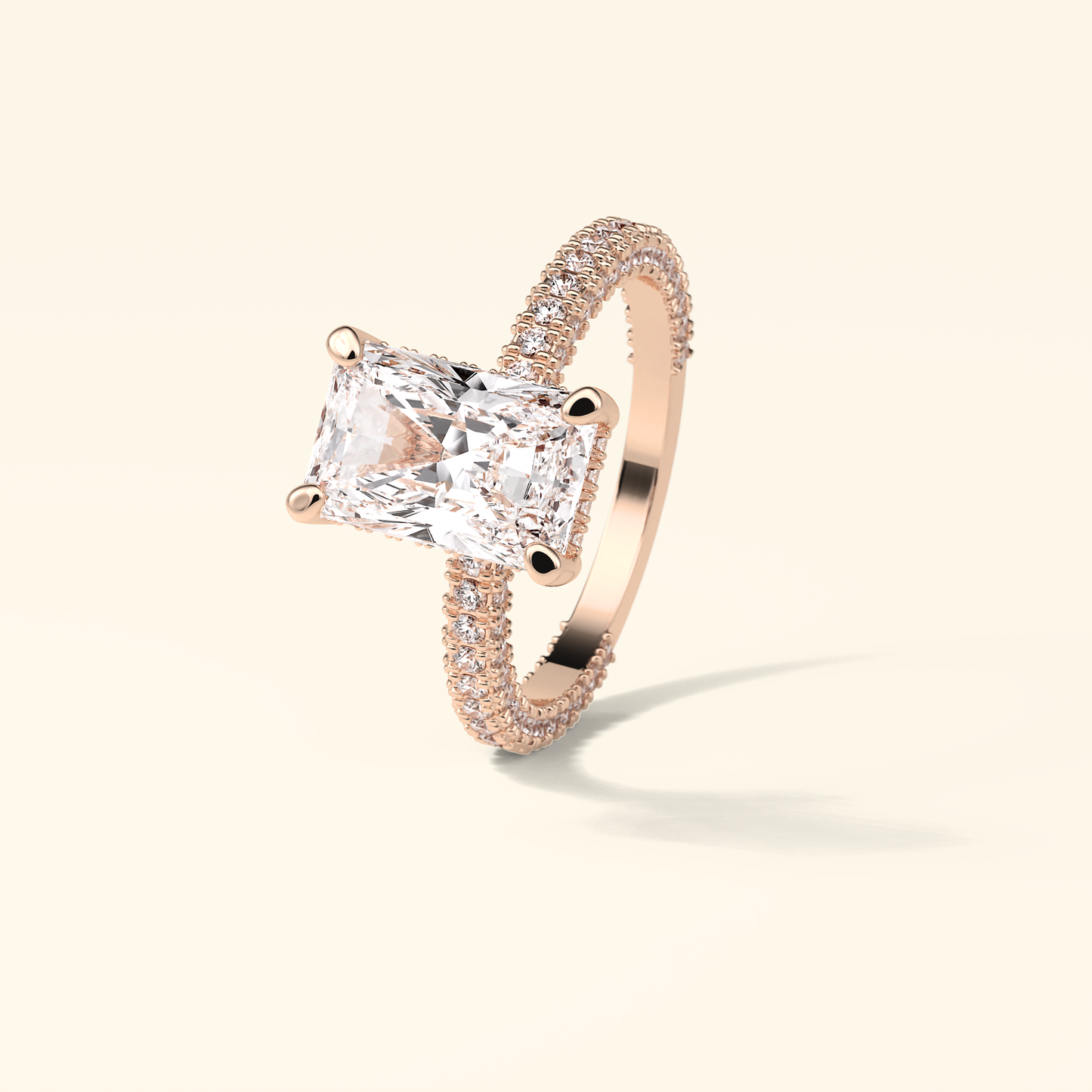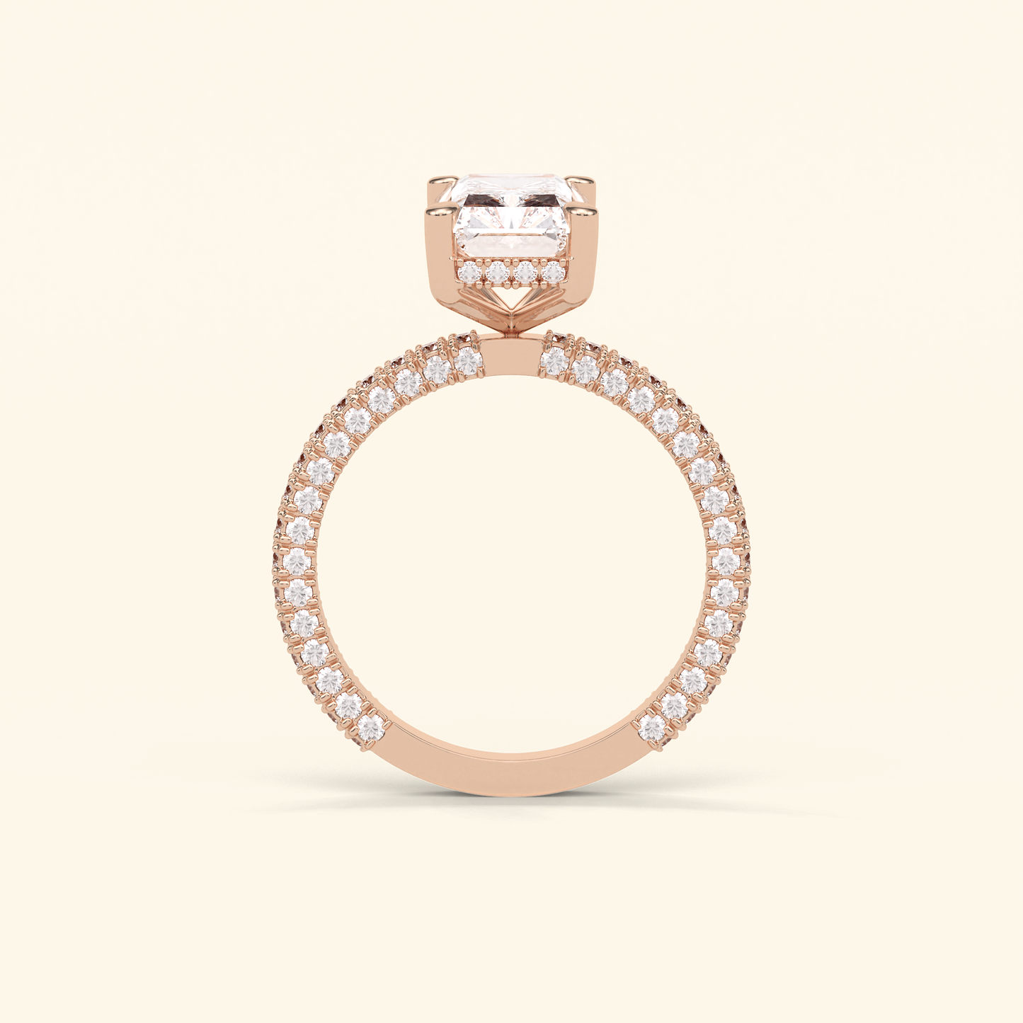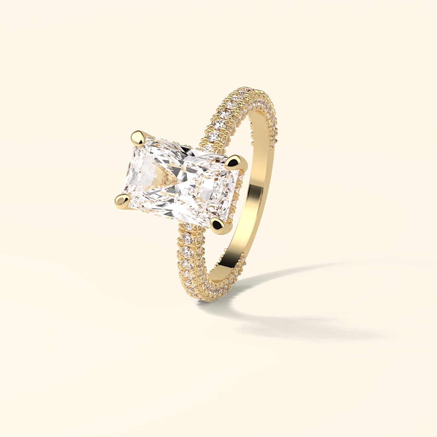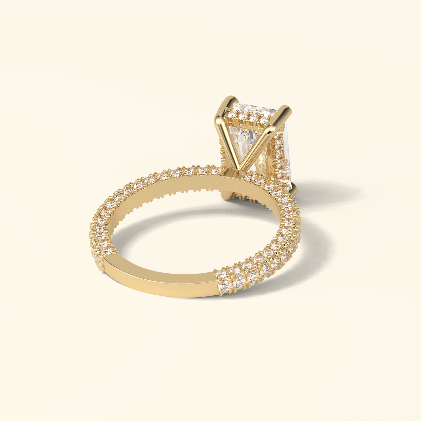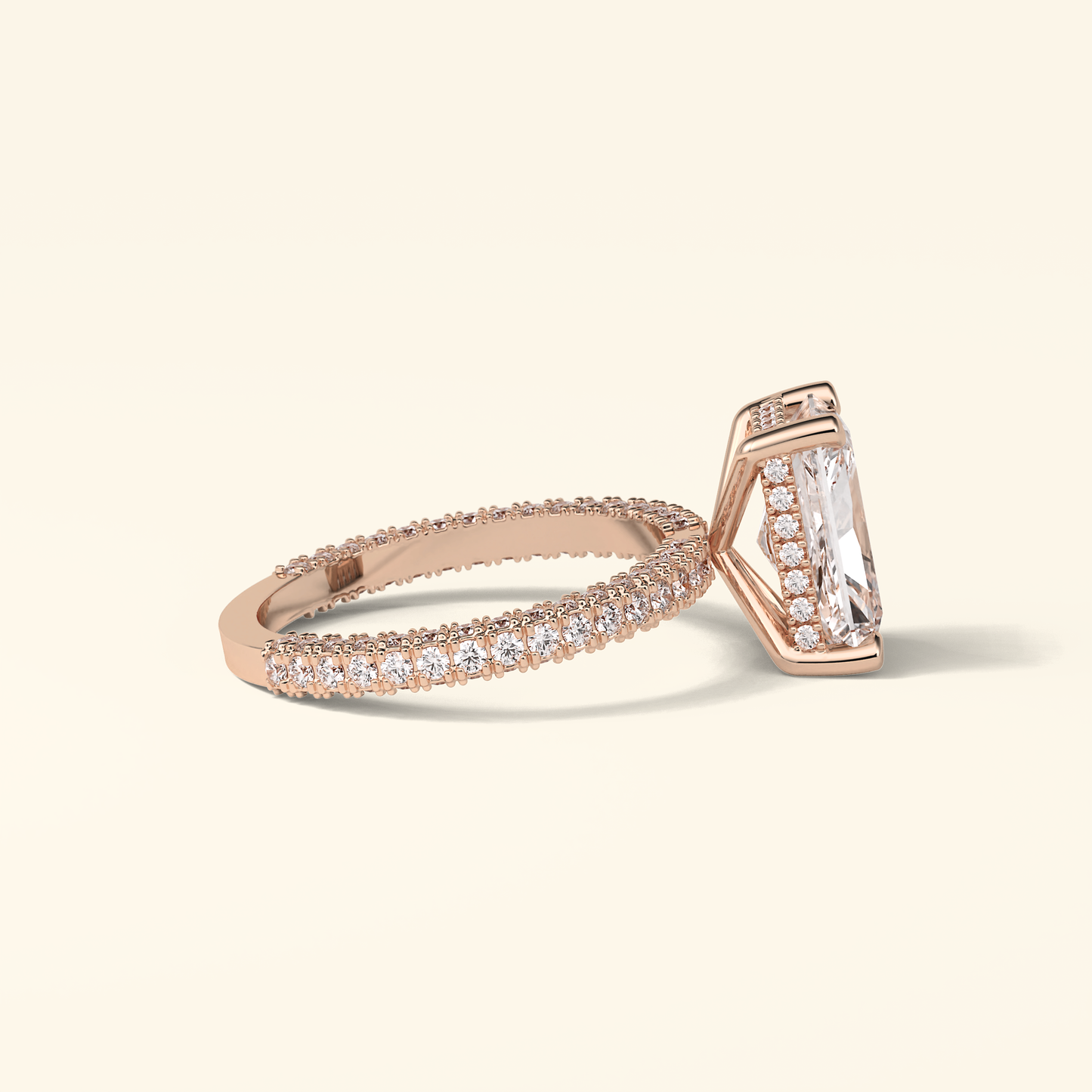 Radiant Moissanite Hidden Halo Engagement Ring – 2.6 CT Center Stone with Pave Band in Solid Gold