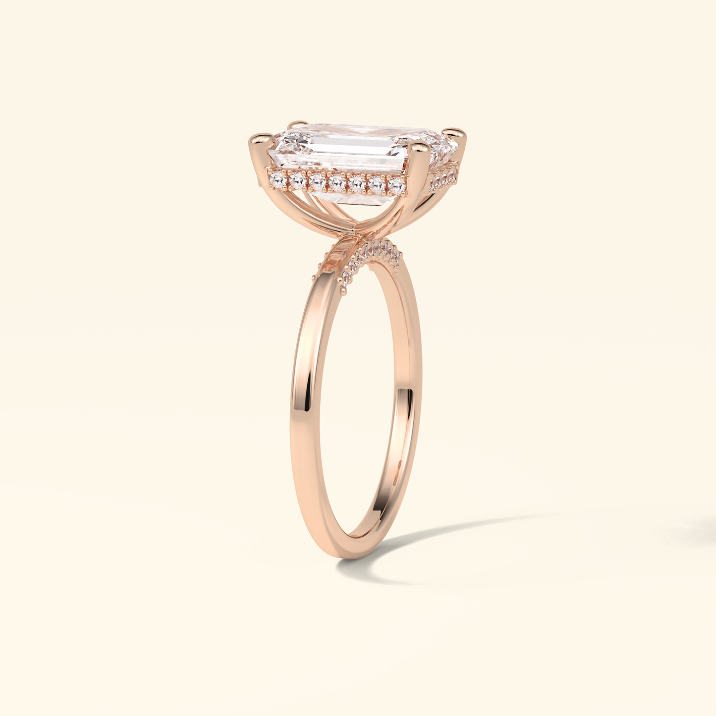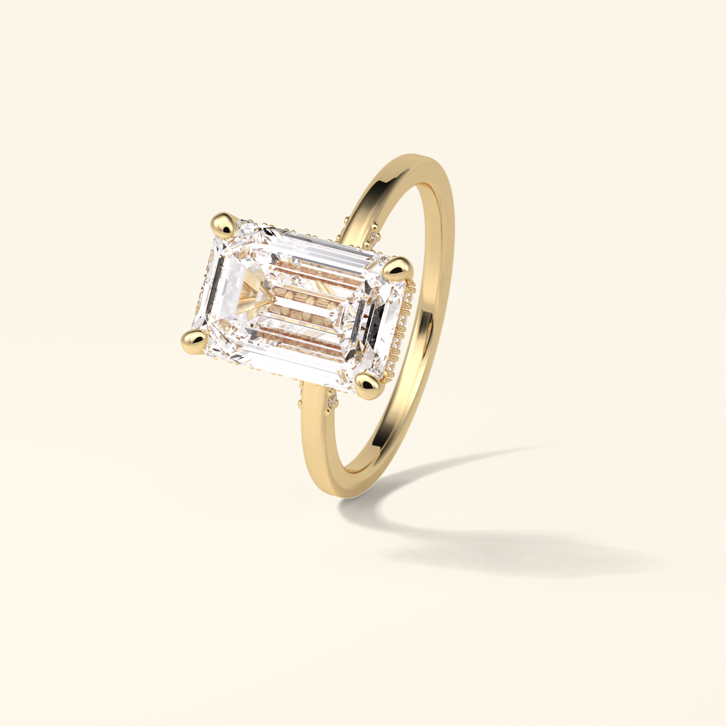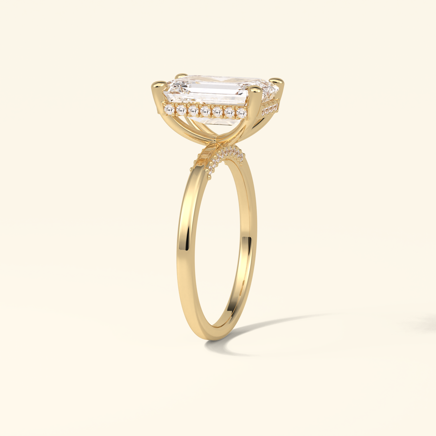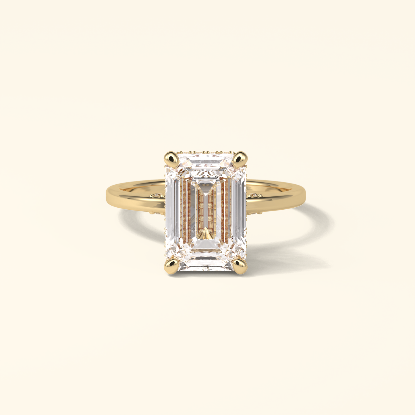 Emerald Moissanite Hidden Halo Engagement Ring – 4.15 CT Center Stone in Solid Gold