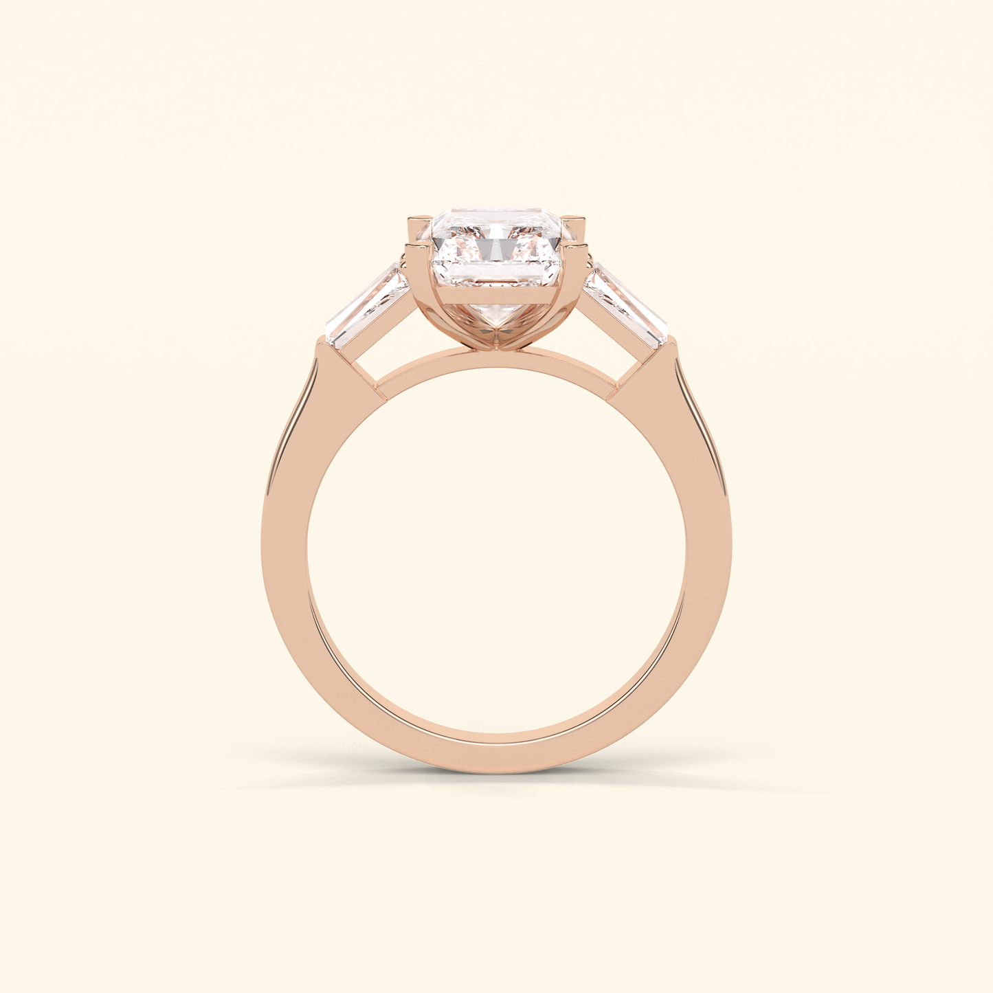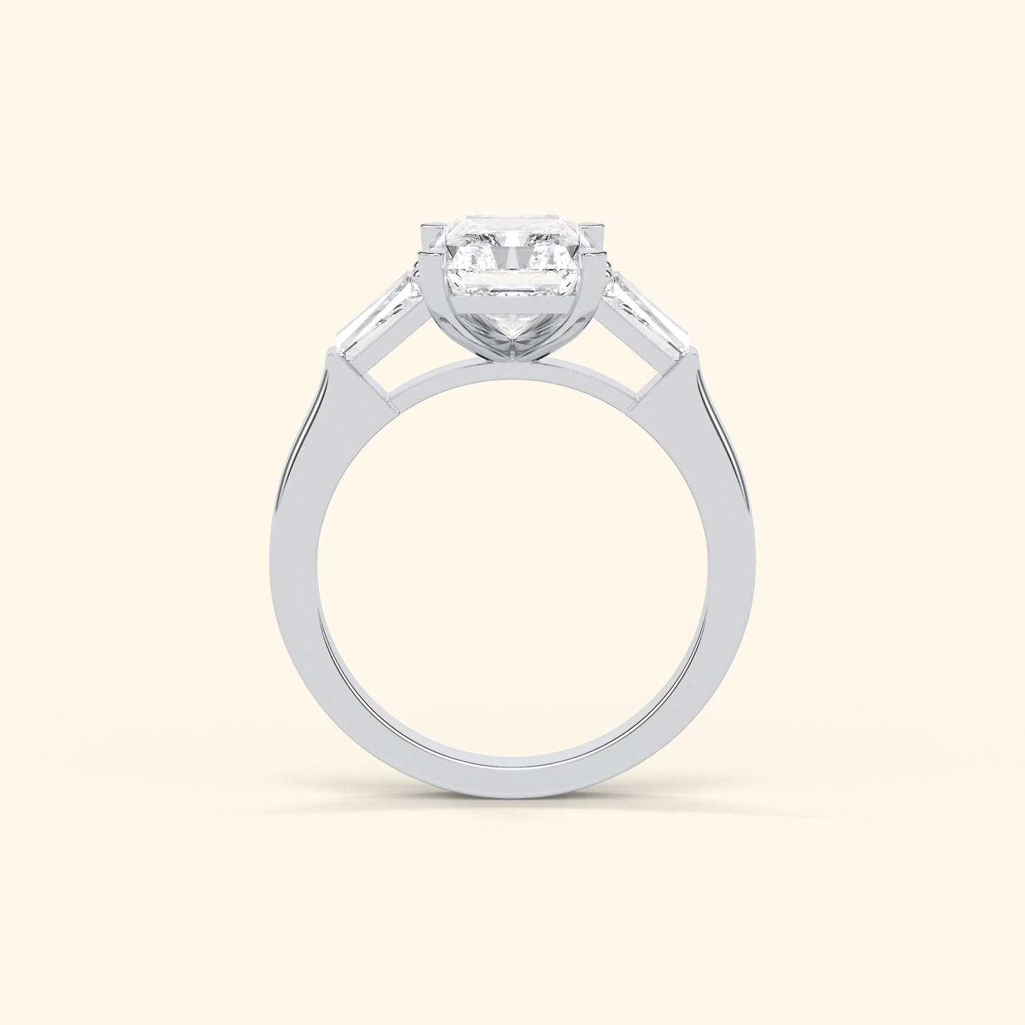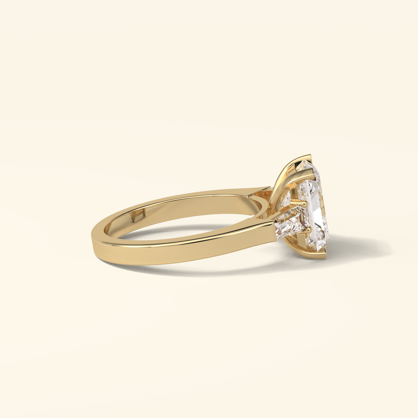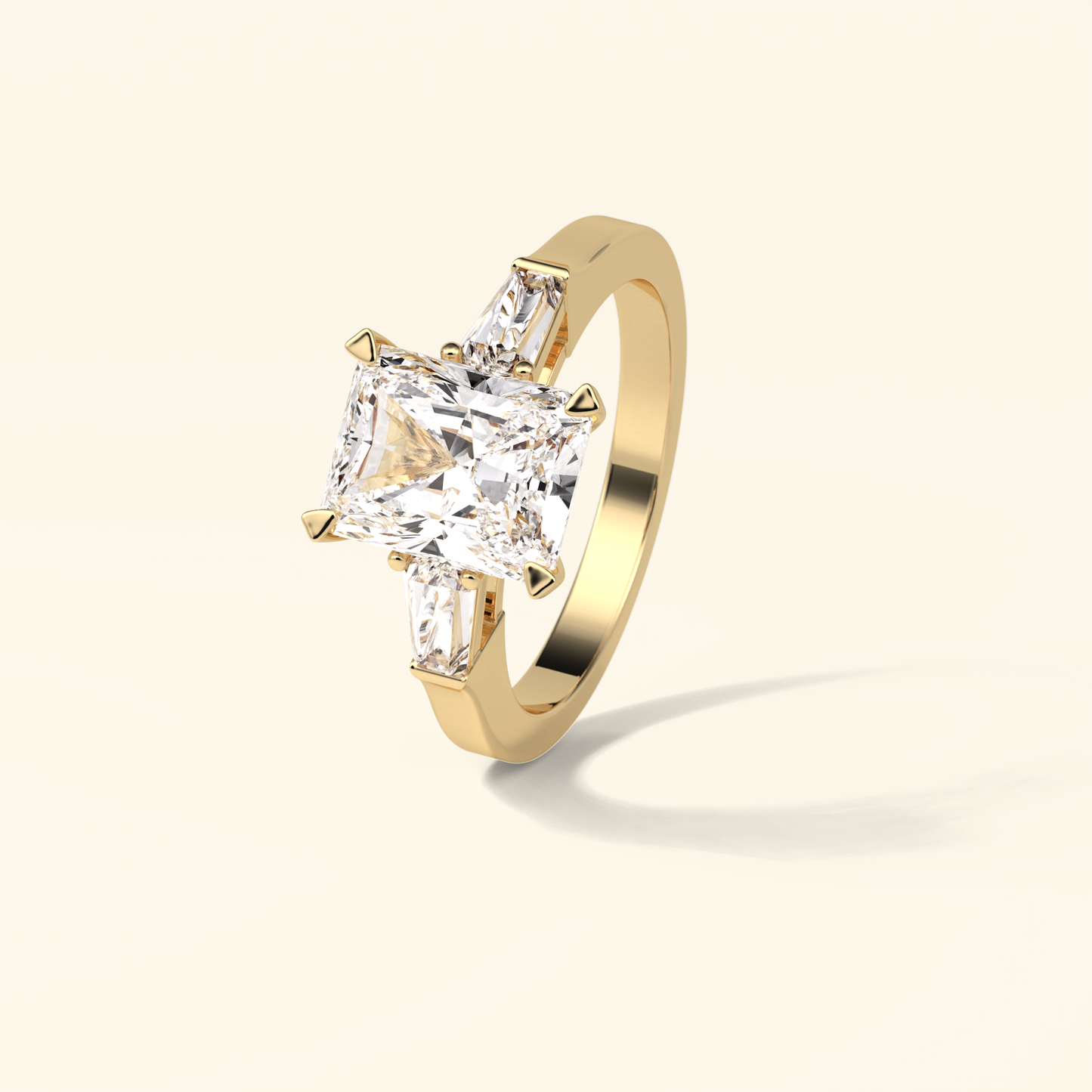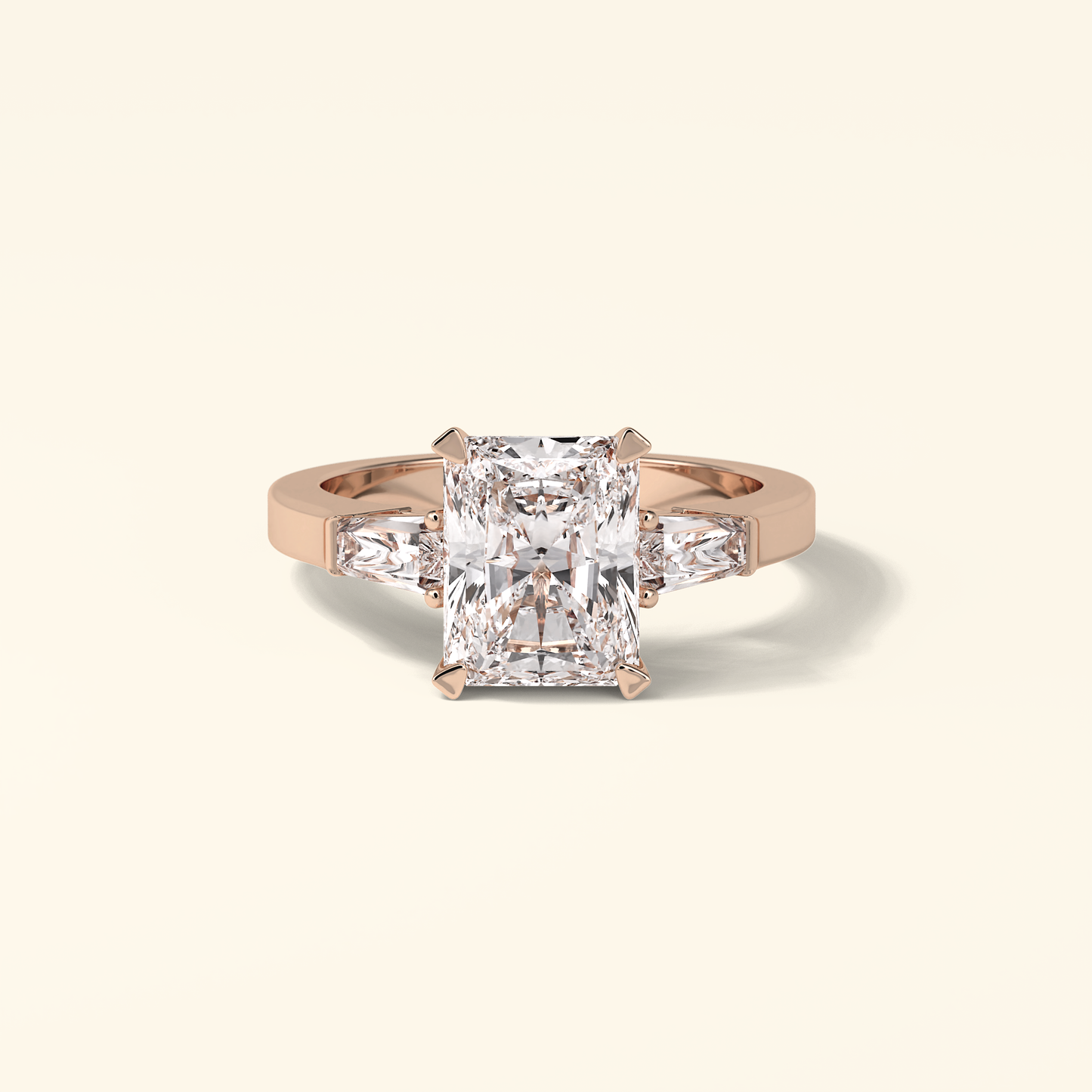 Radiant Moissanite Three Stones Engagement Ring – 2.3 CT Center Stone in Solid Gold