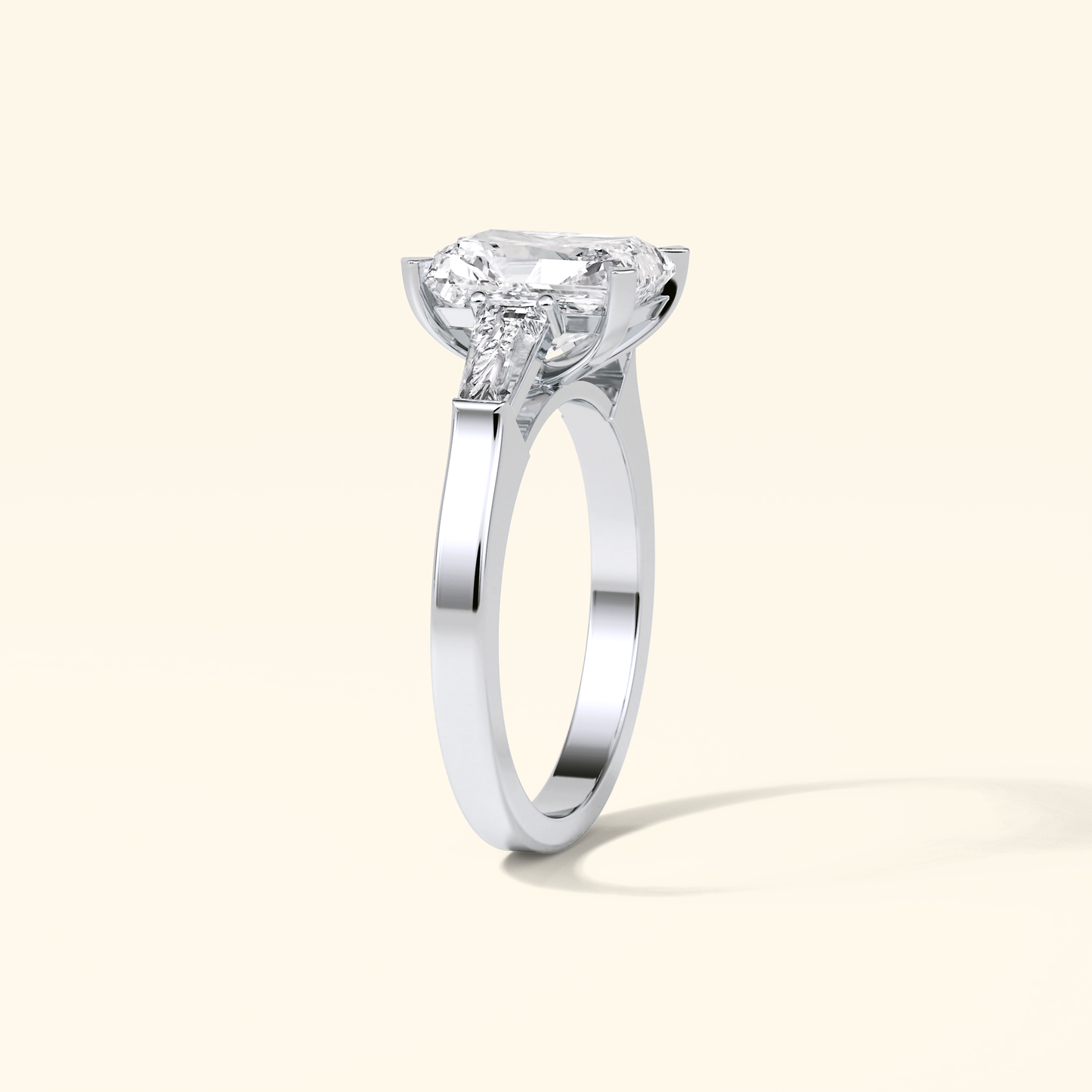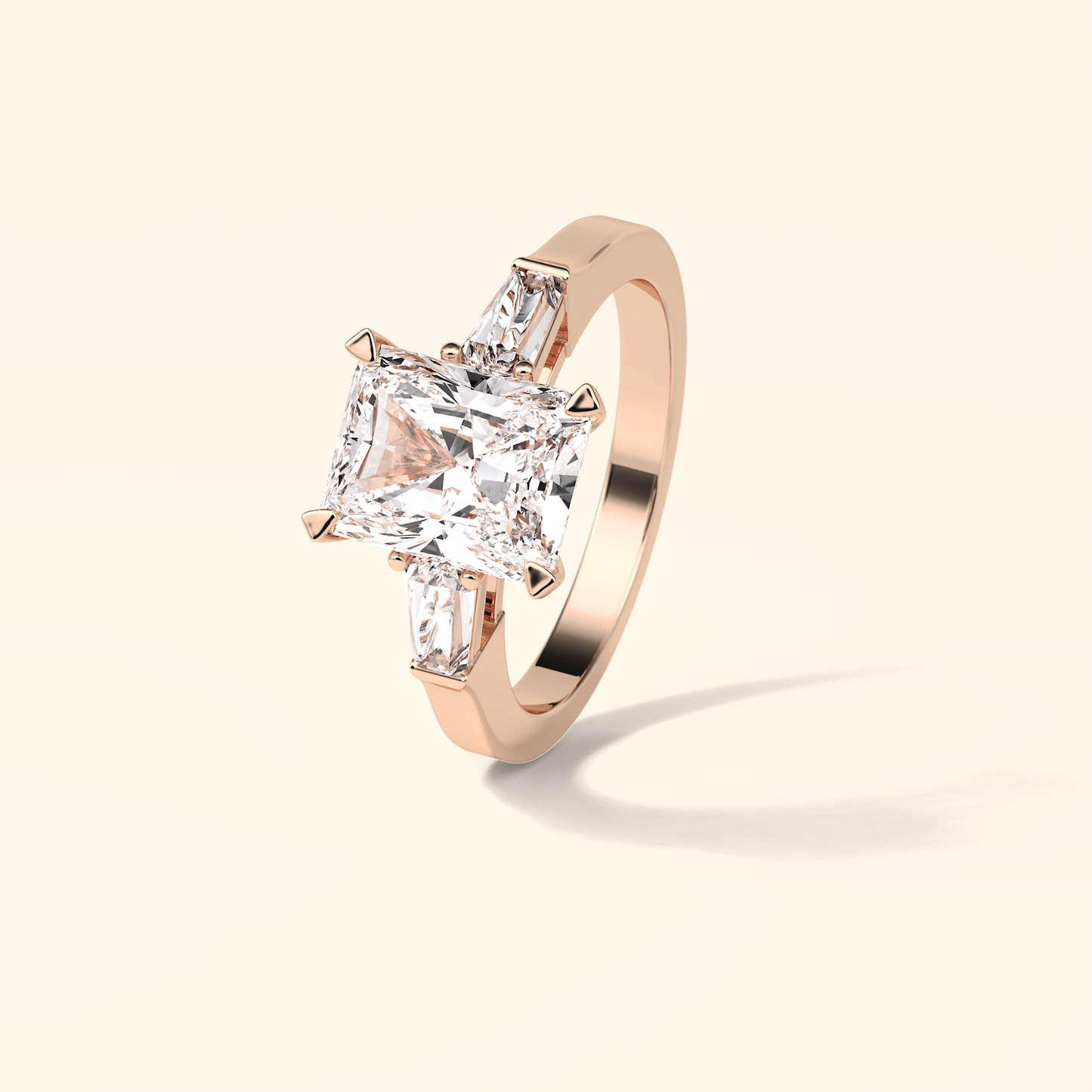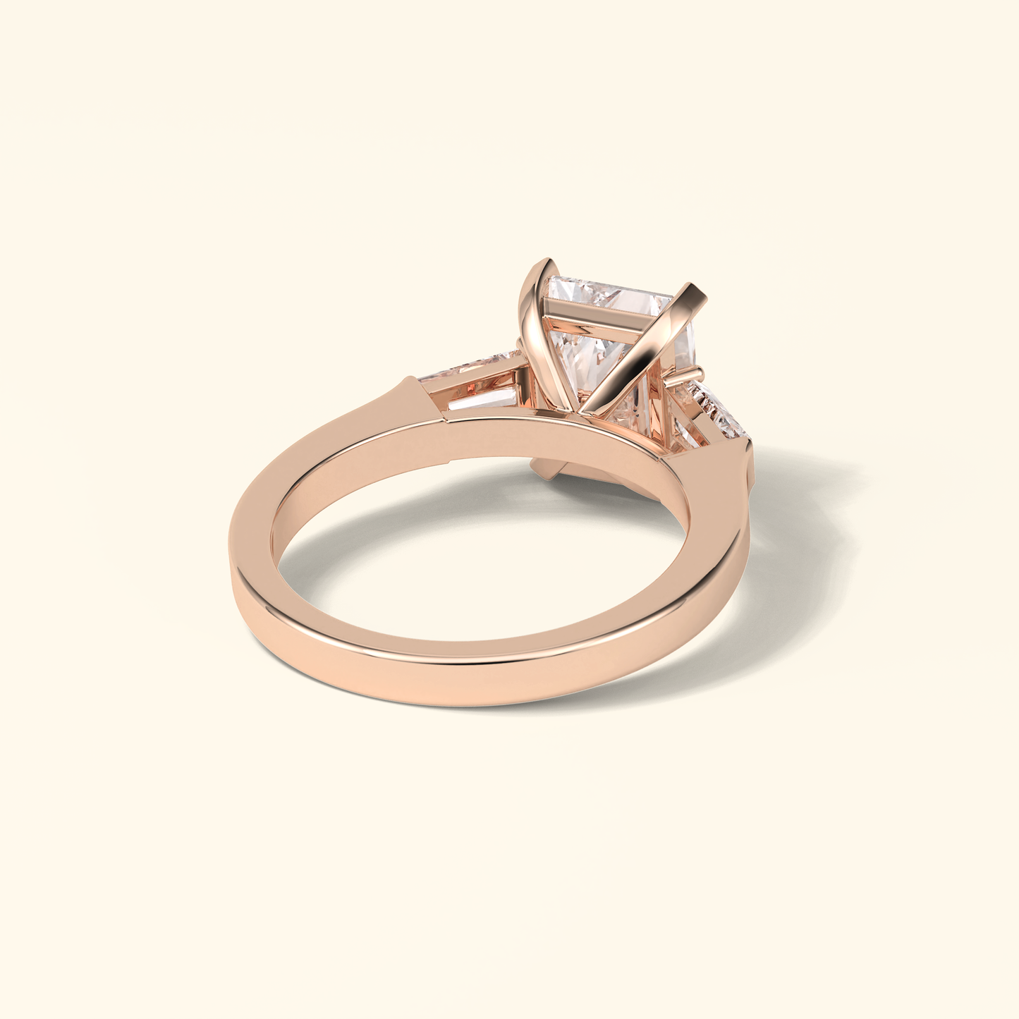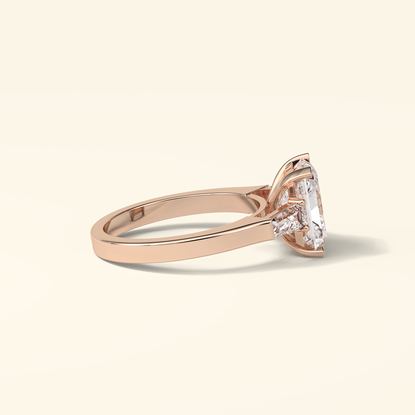 Radiant Moissanite Three Stones Engagement Ring – 2.3 CT Center Stone in Solid Gold