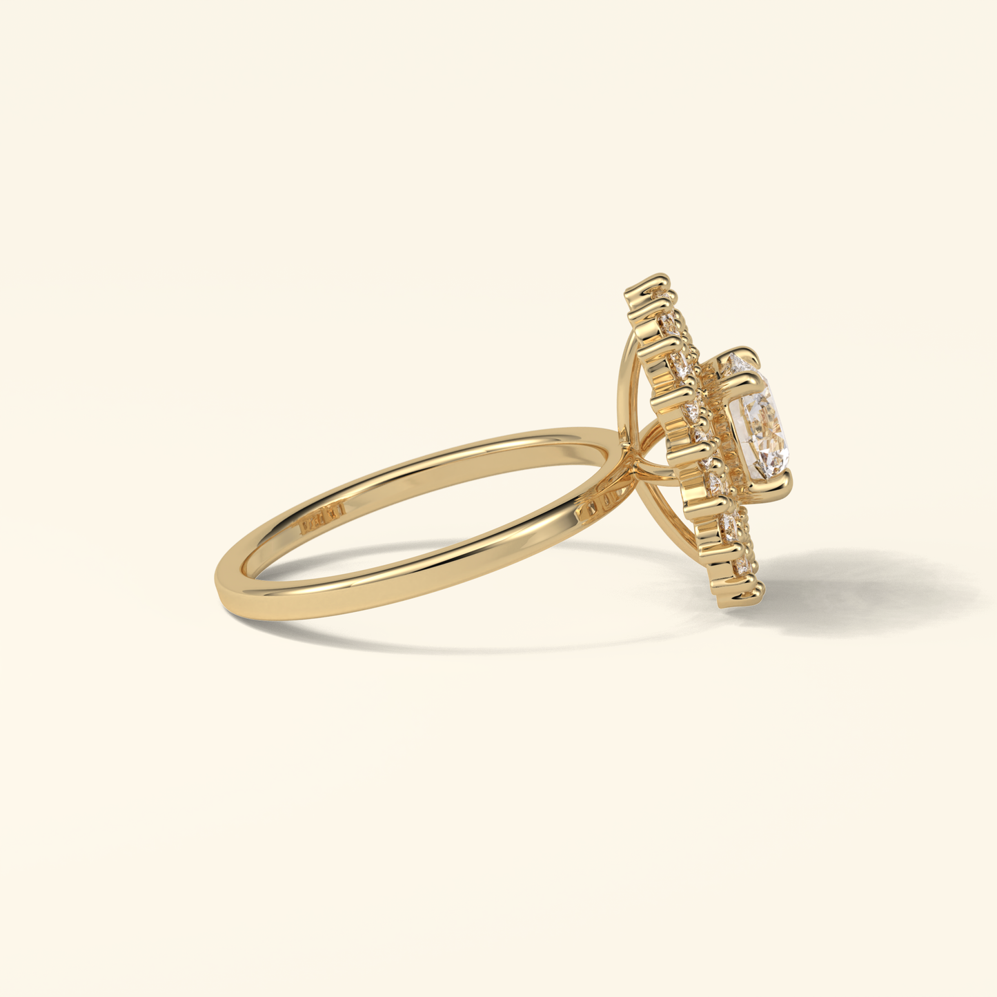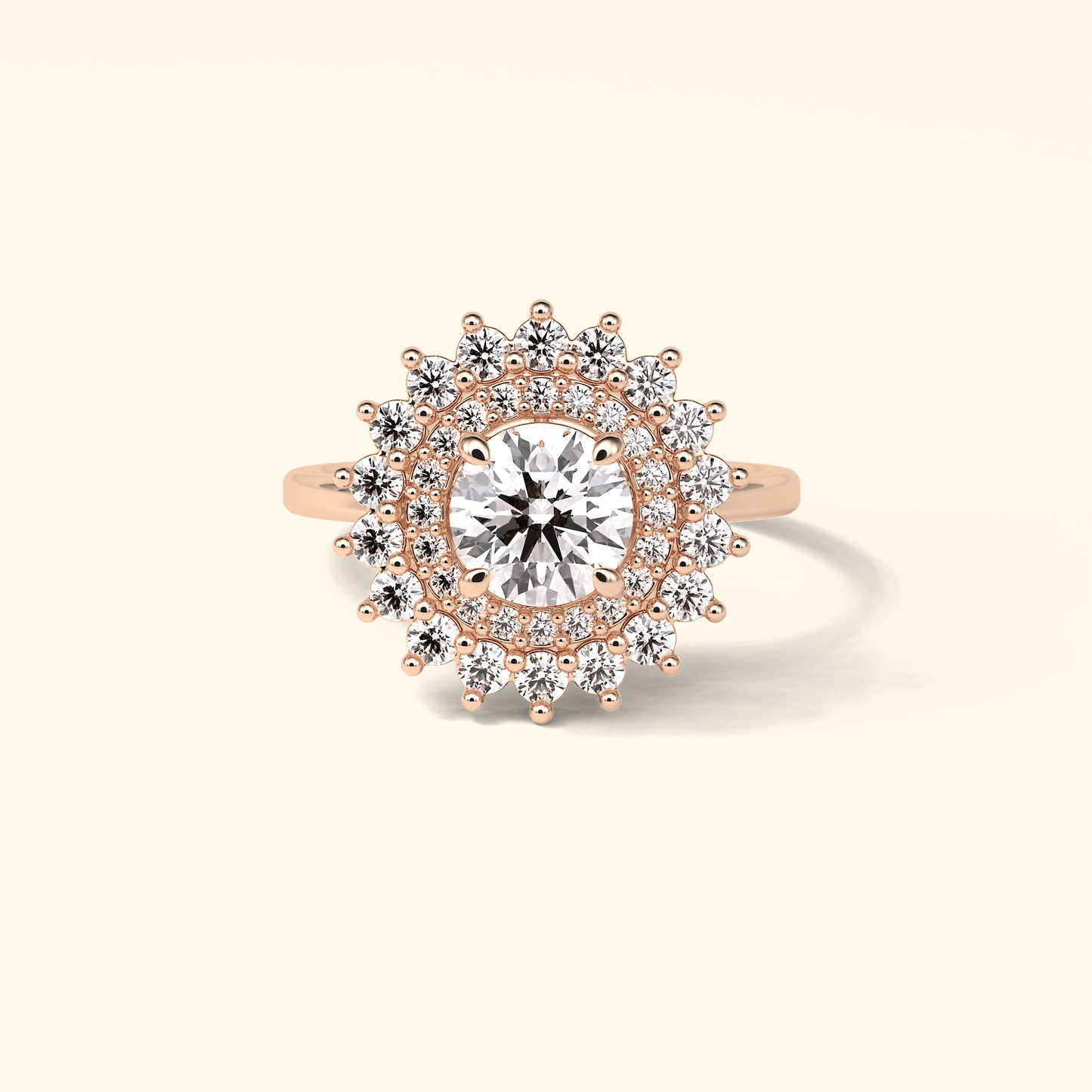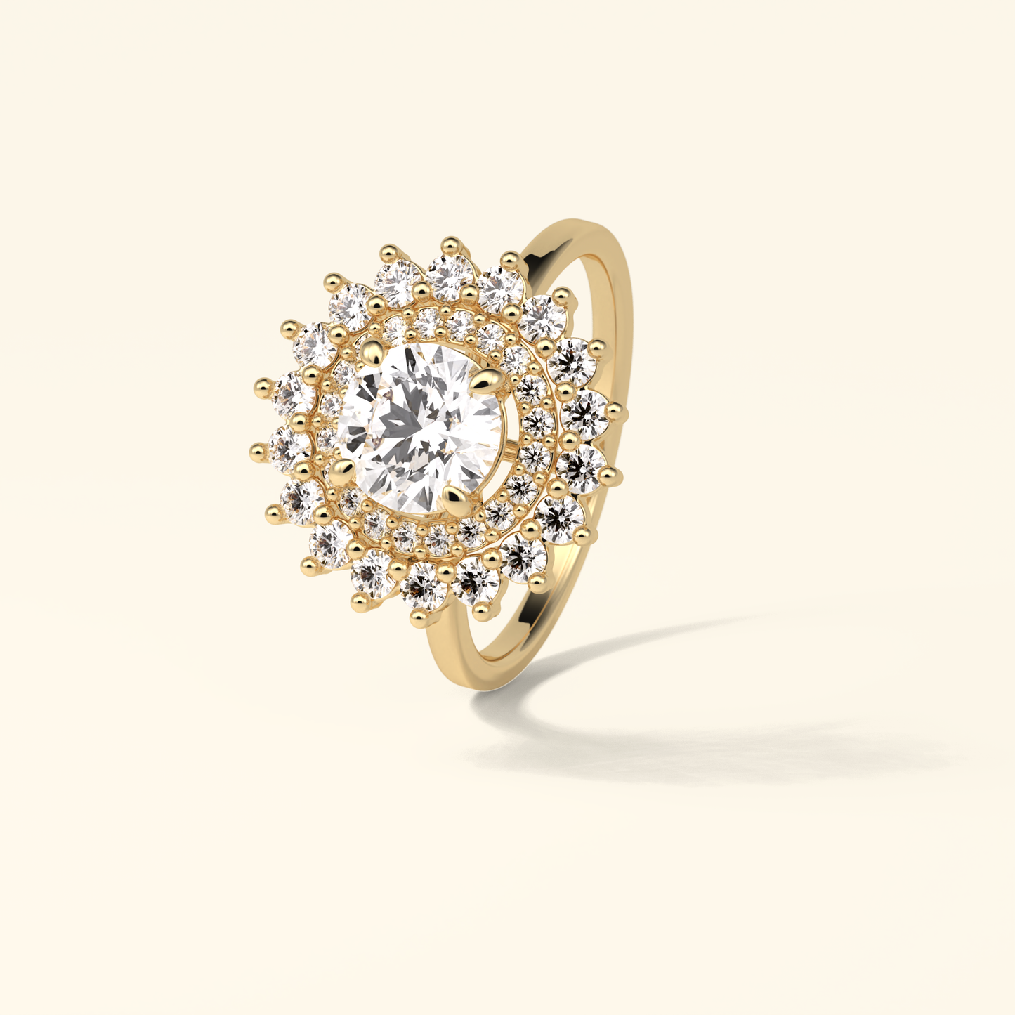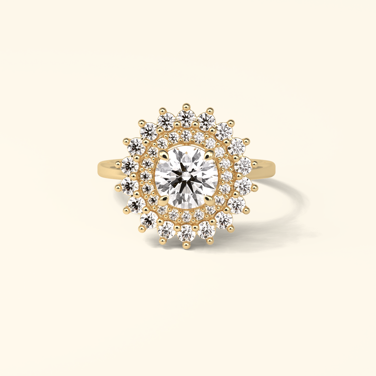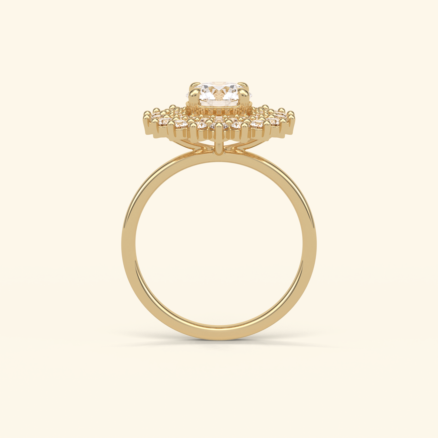 Round Moissanite Cluster Engagement Ring – 1 CT Center Stone in Solid Gold