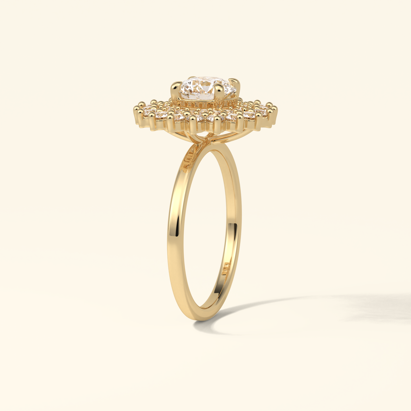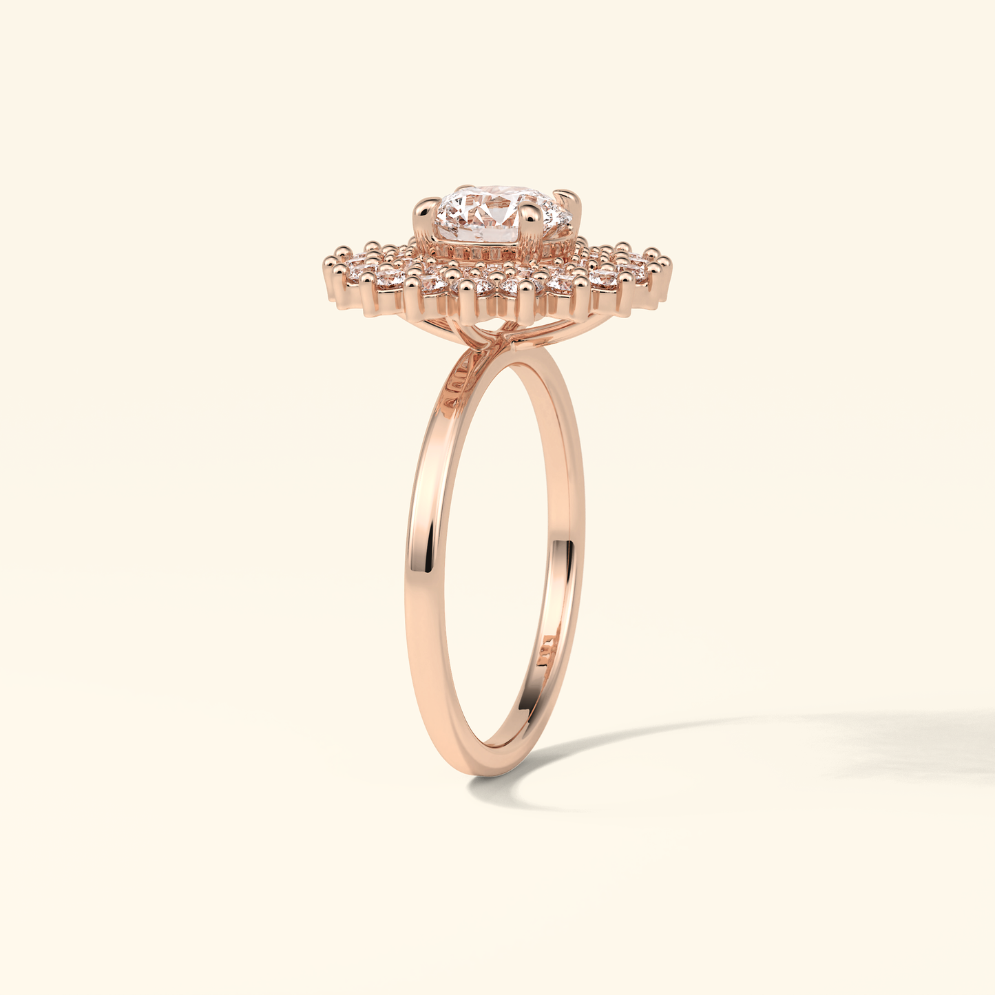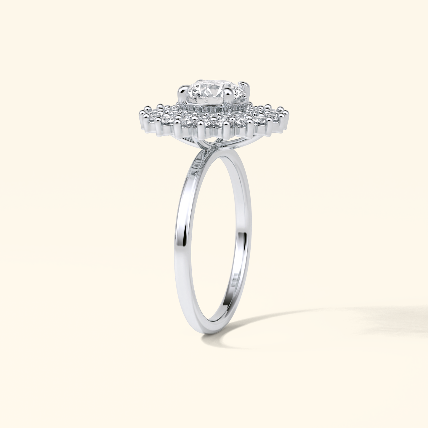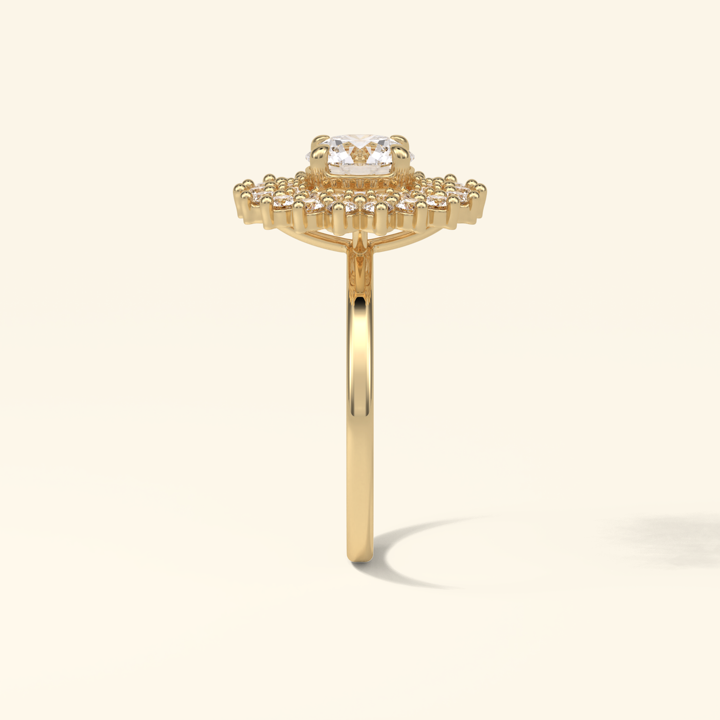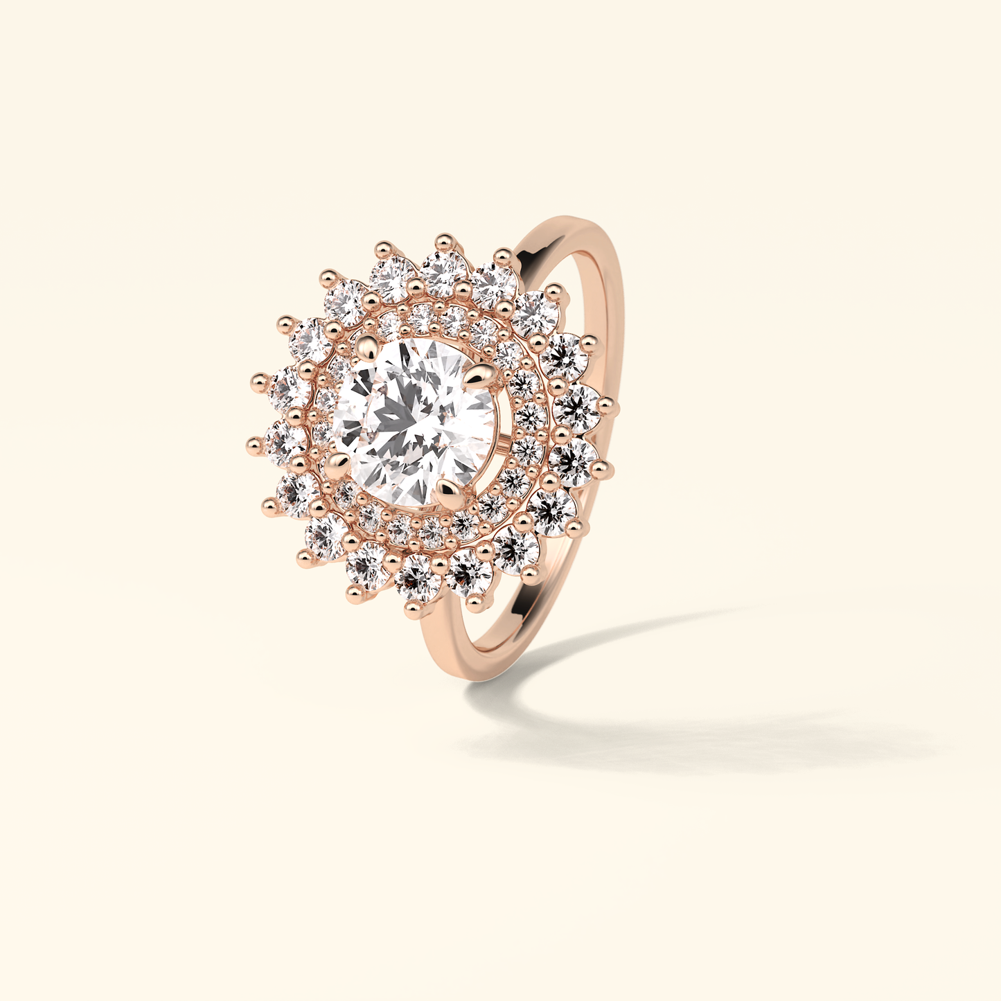 Round Moissanite Cluster Engagement Ring – 1 CT Center Stone in Solid Gold
